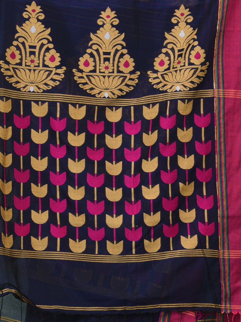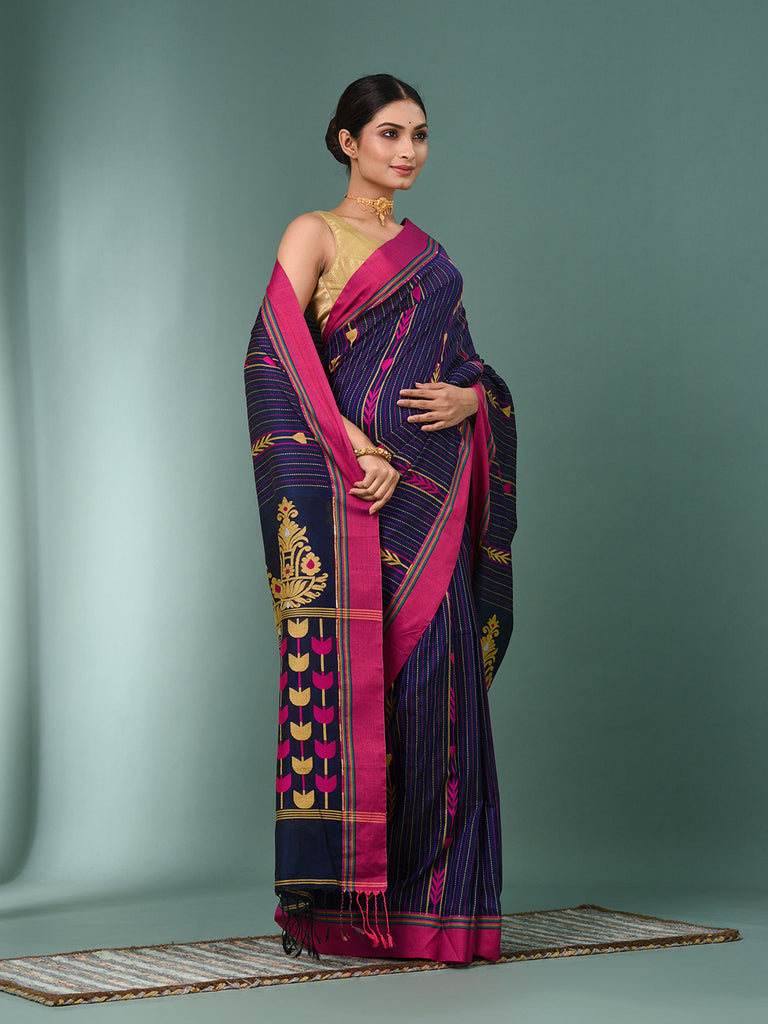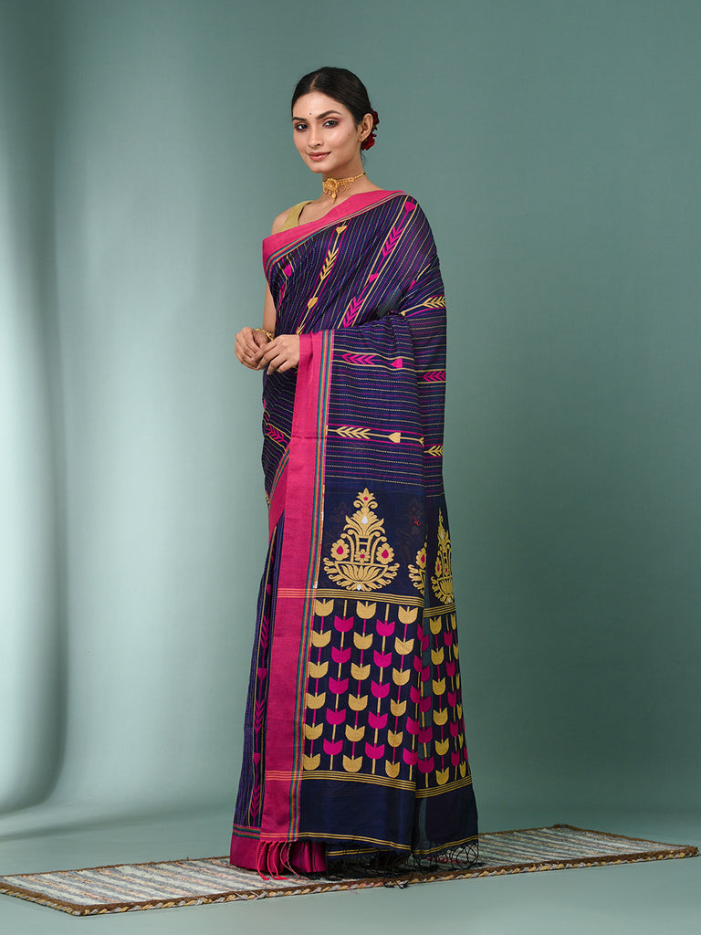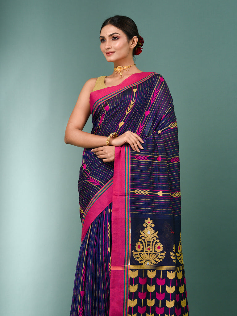 Blue Geometric Pattern Cotton Soft Saree
