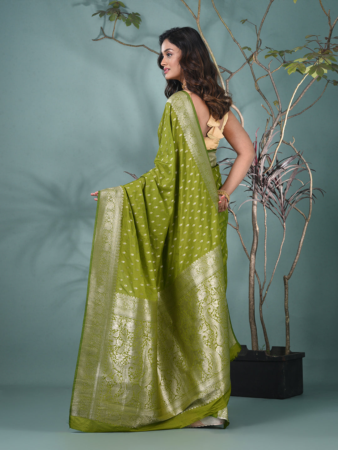 Elegant Green Georgette Saree with Intricate Silver Zari Work