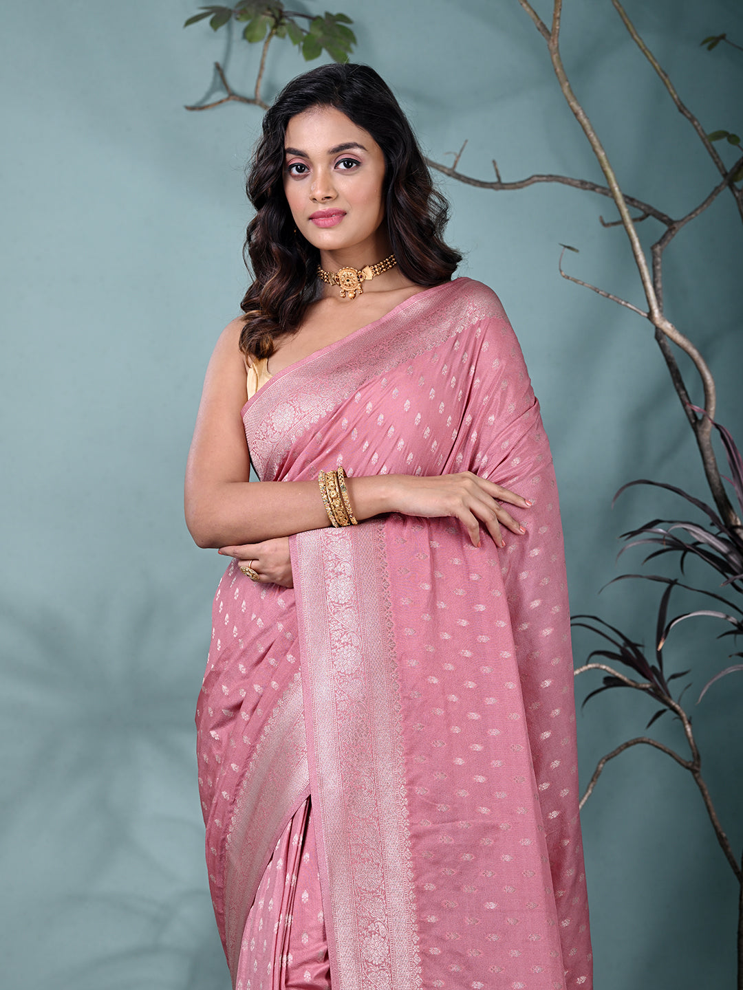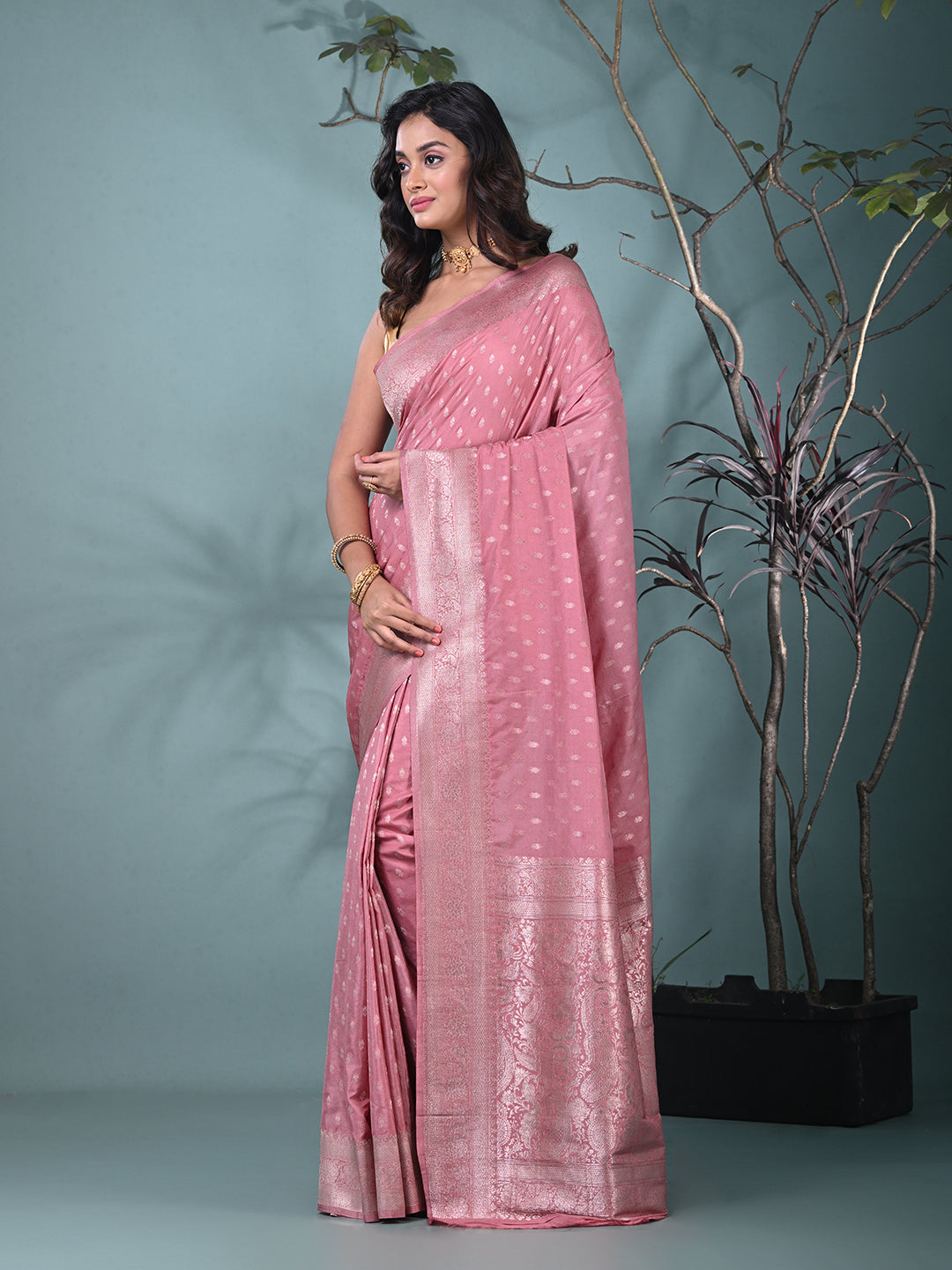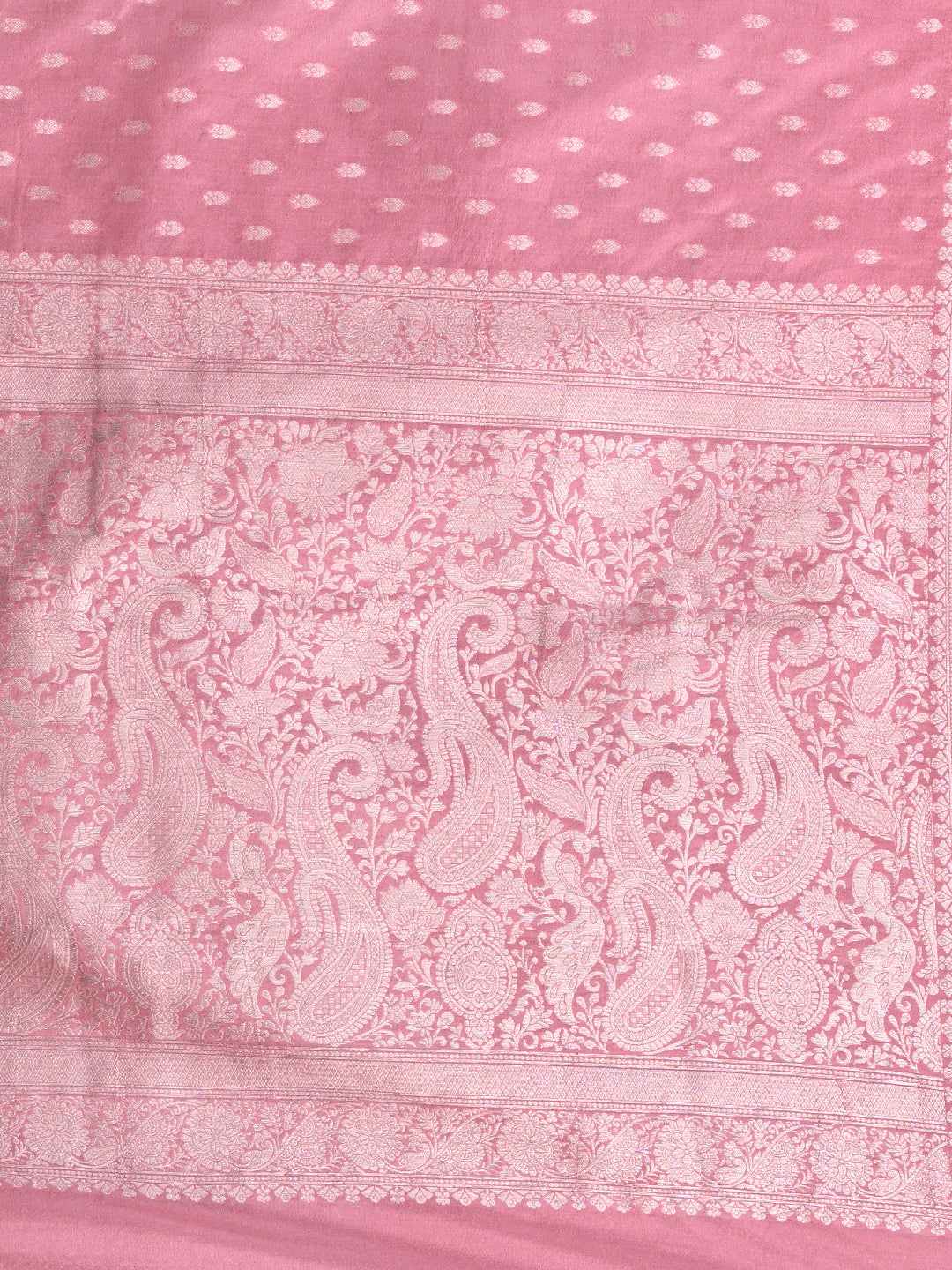 Elegant Nude Pink Georgette Saree with Intricate Silver Zari Work
