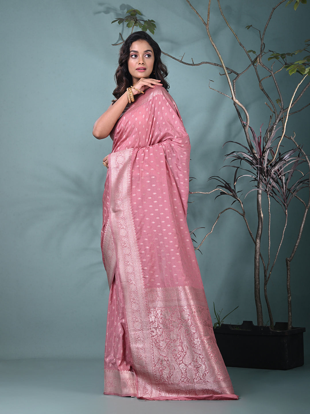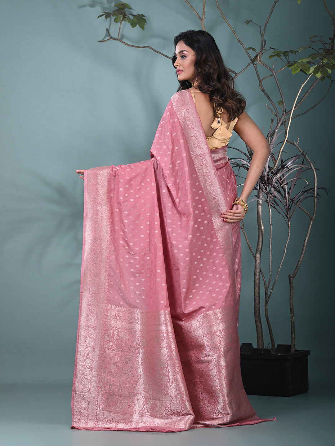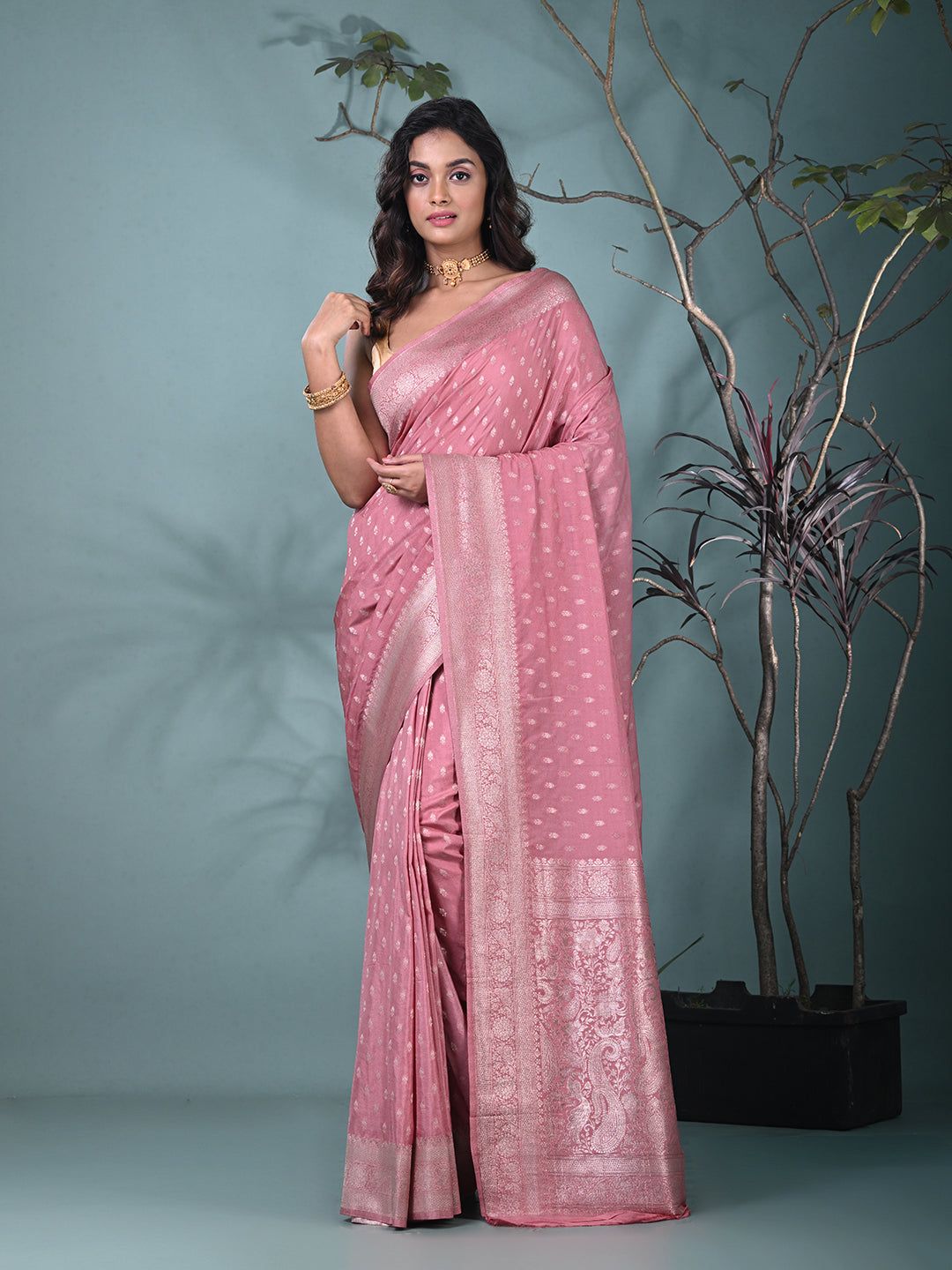 Elegant Nude Pink Georgette Saree with Intricate Silver Zari Work