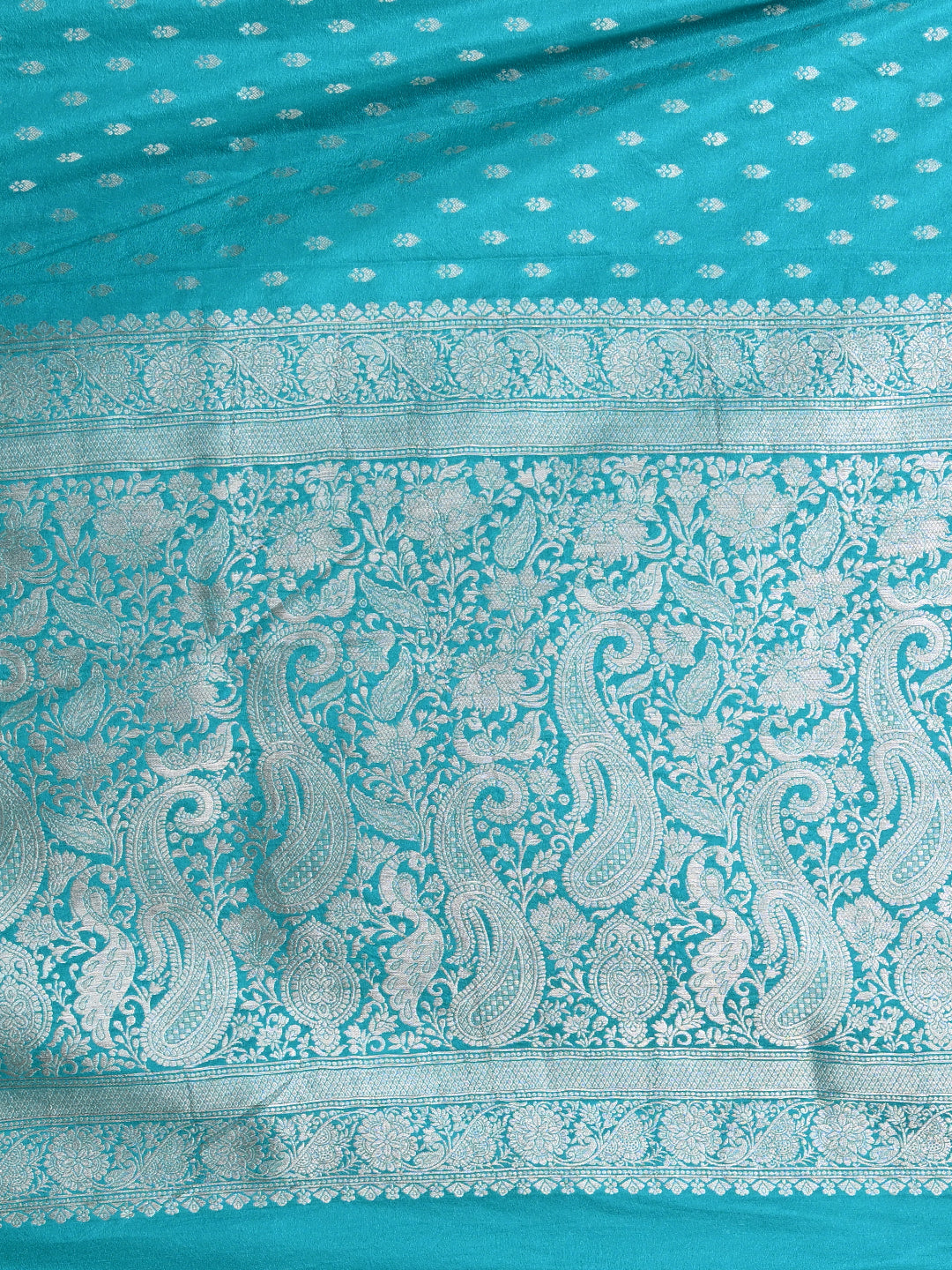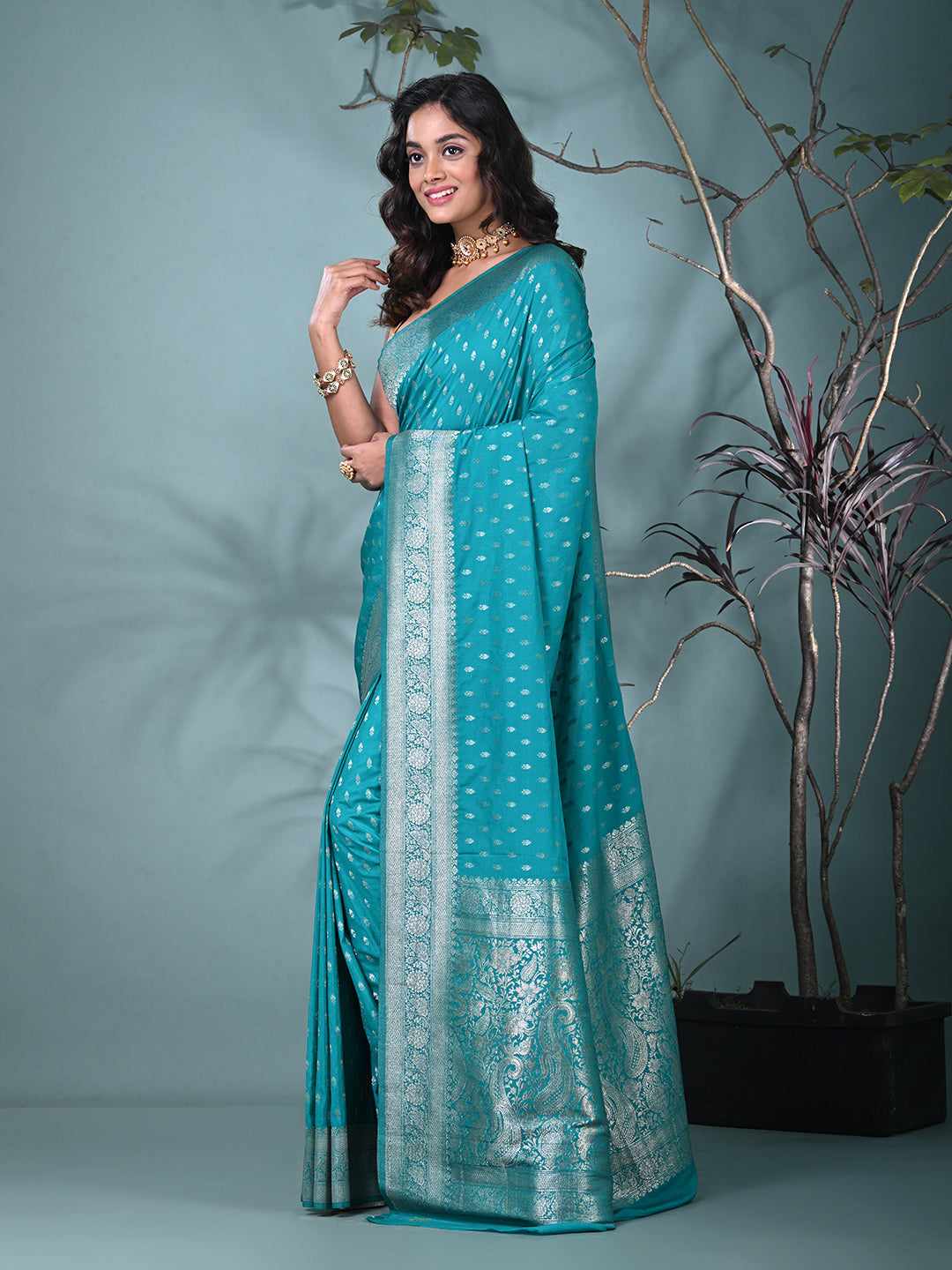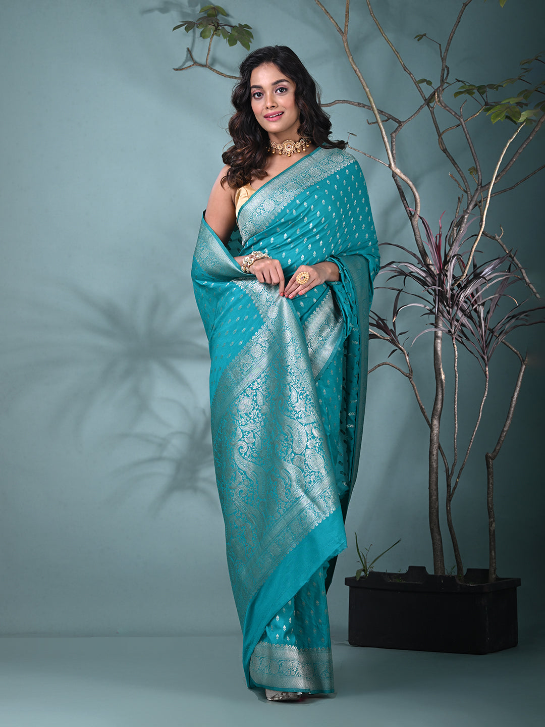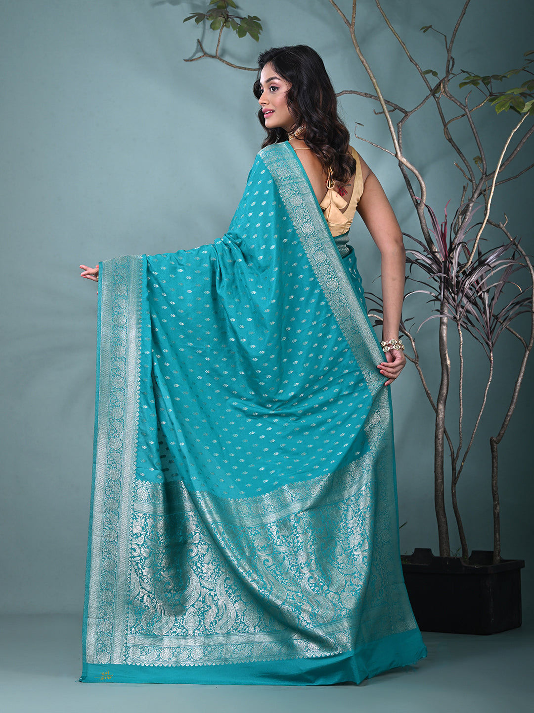 Elegant Turquoise Blue Georgette Saree with Intricate Silver Zari Work