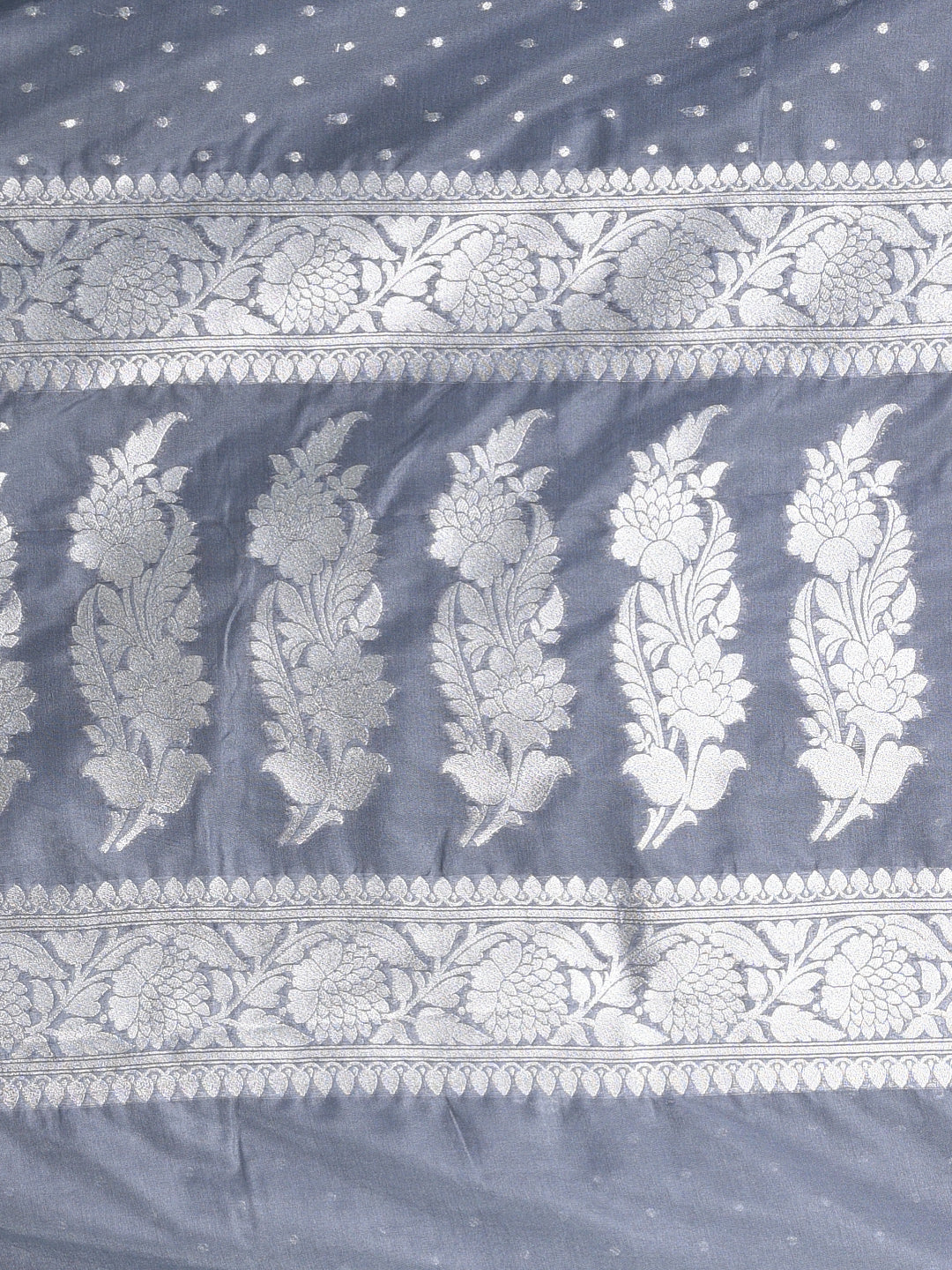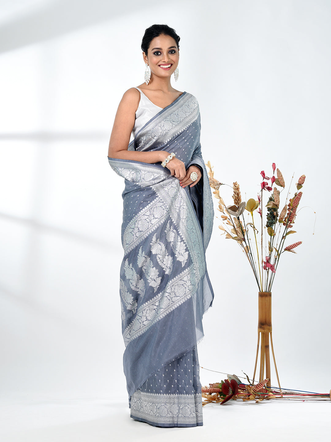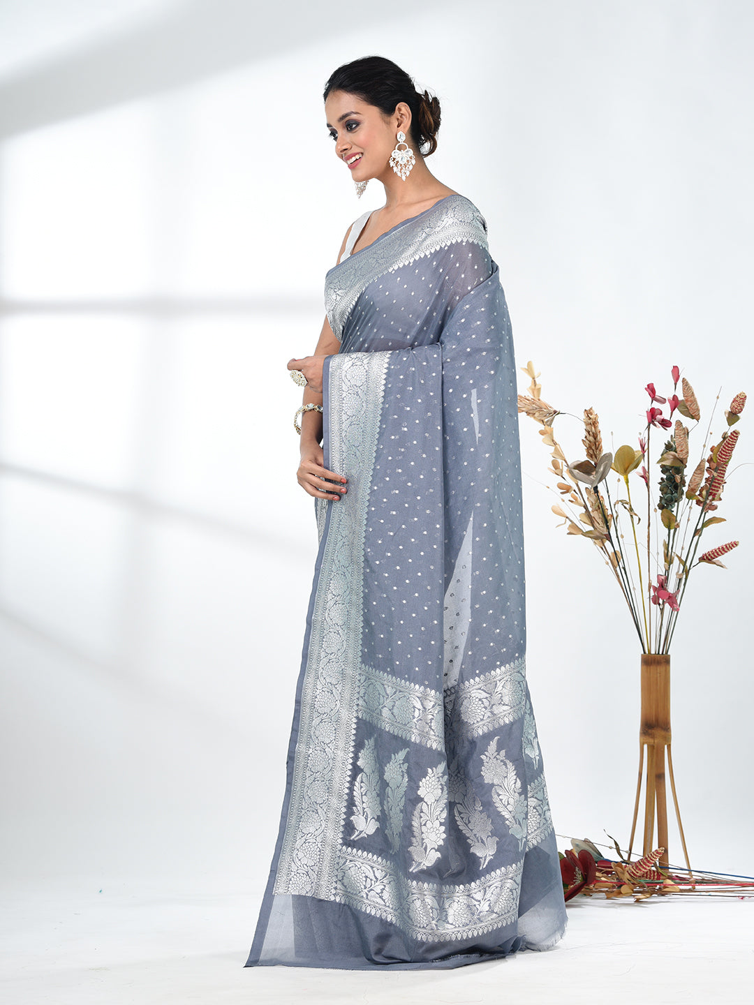This elegant Grey Georgette Blend Saree is a perfect blend of tradition and modern sophistication. Crafted from high-quality georgette fabric, it drapes beautifully, ensuring both comfort and style. The saree features a rich, vibrant grey color, complemented by intricate silver embroidery along the borders and a delicate pattern throughout, adding a touch of glamour. The shimmering details elevate the overall look, making it ideal for weddings, parties, and festive occasions. Pair it with statement jewelry and heels for a standout ensemble that exudes grace and charm.