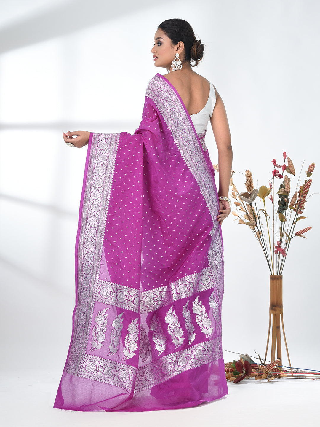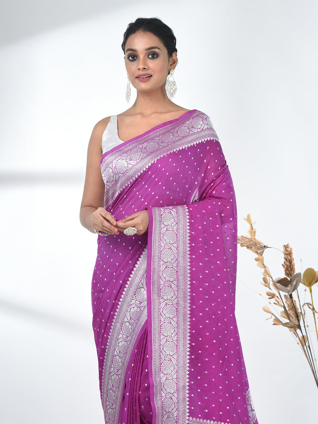 Purple Georgette Saree with Silver Border and Detailing
