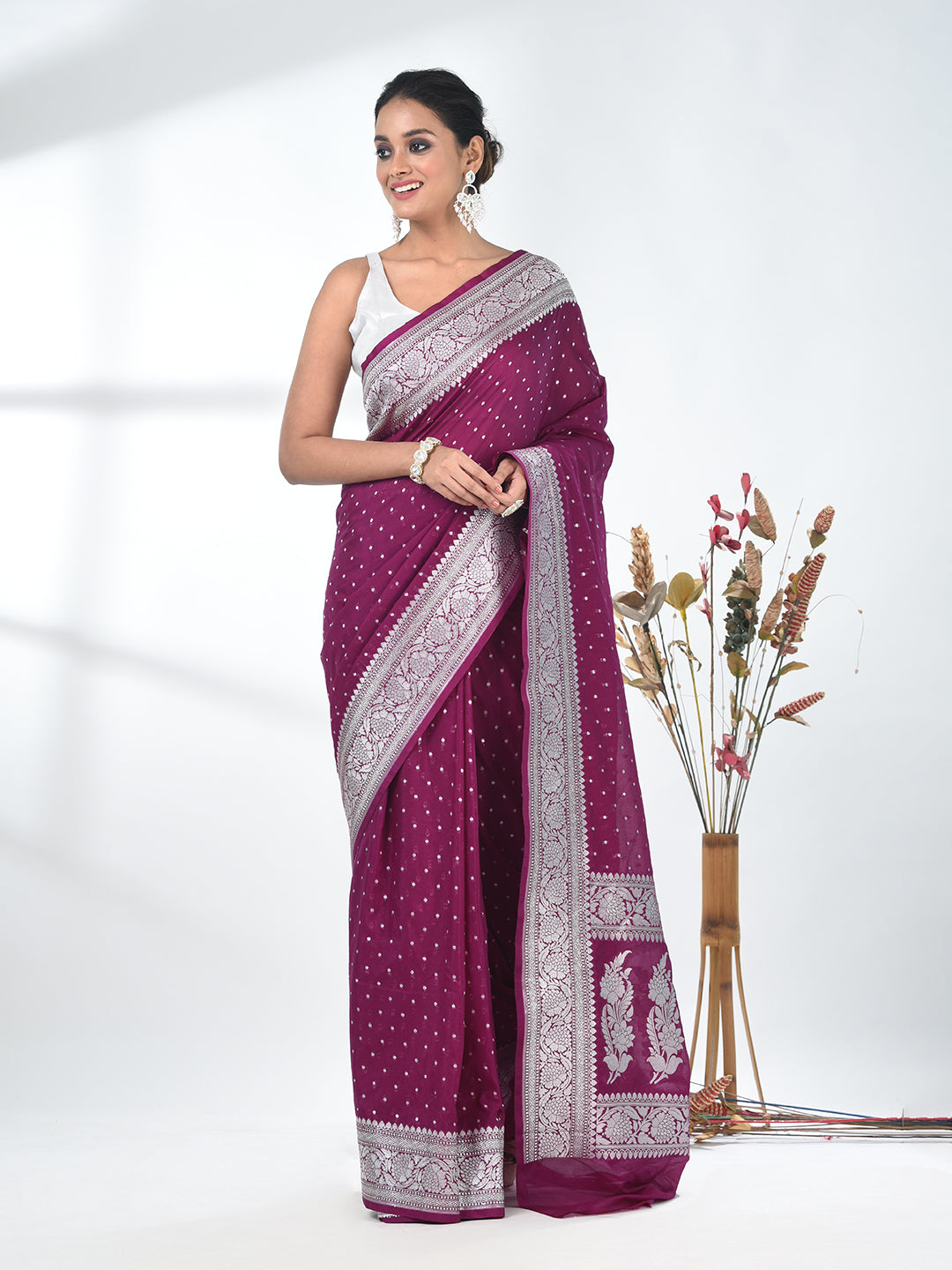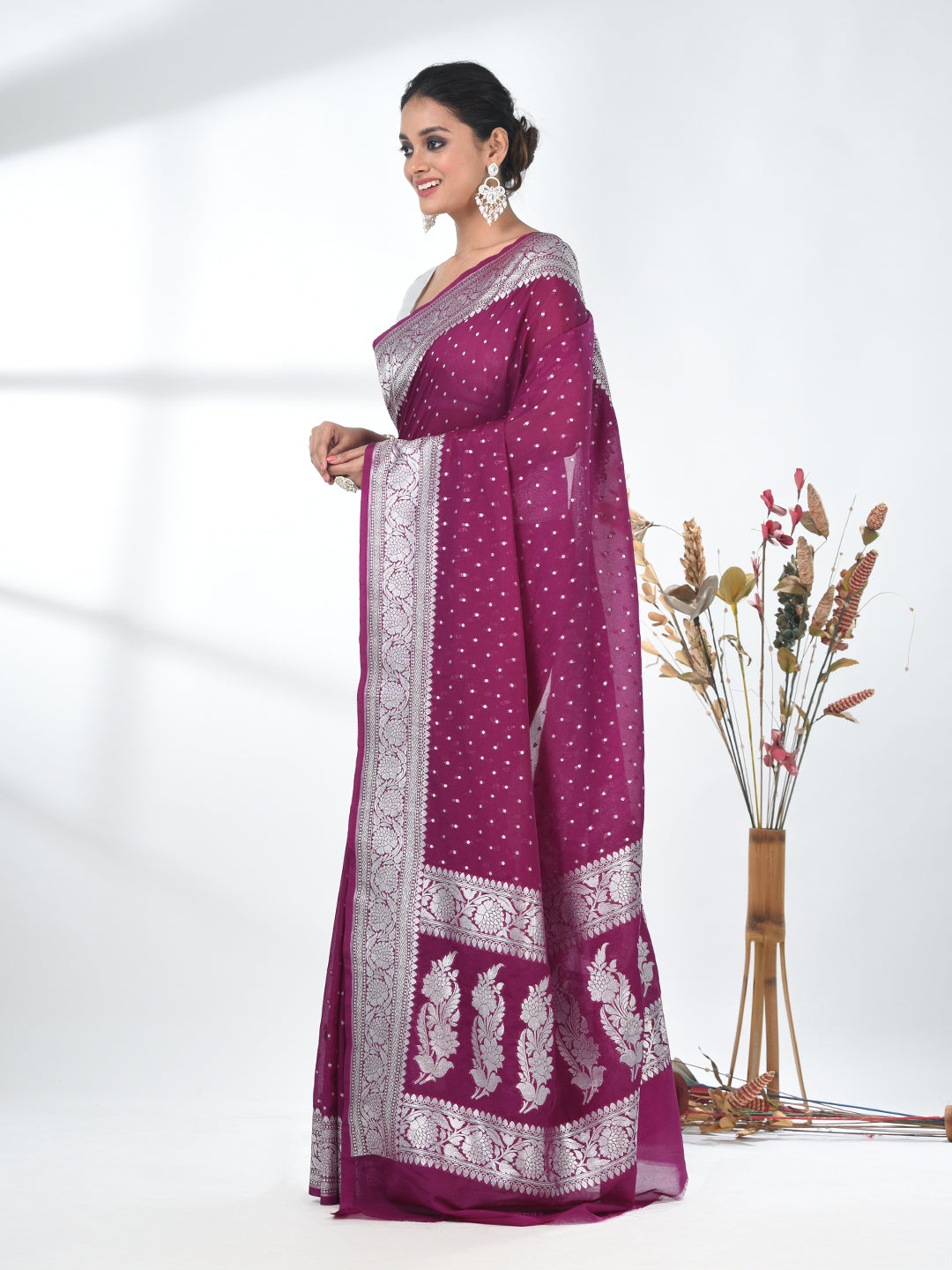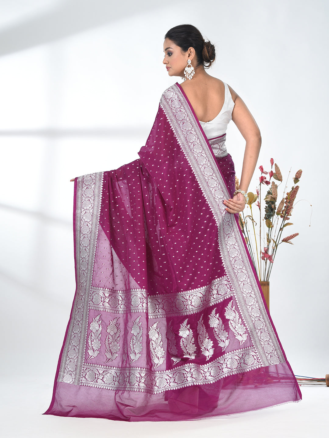 Purple Georgette Saree with Silver Border and Detailing