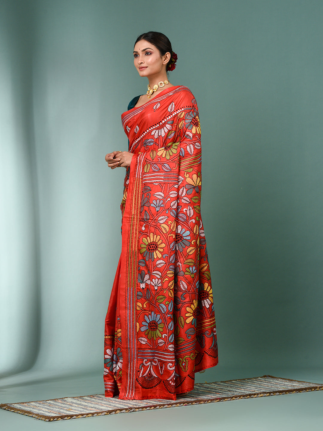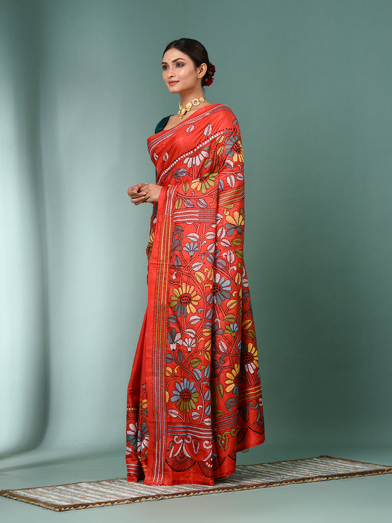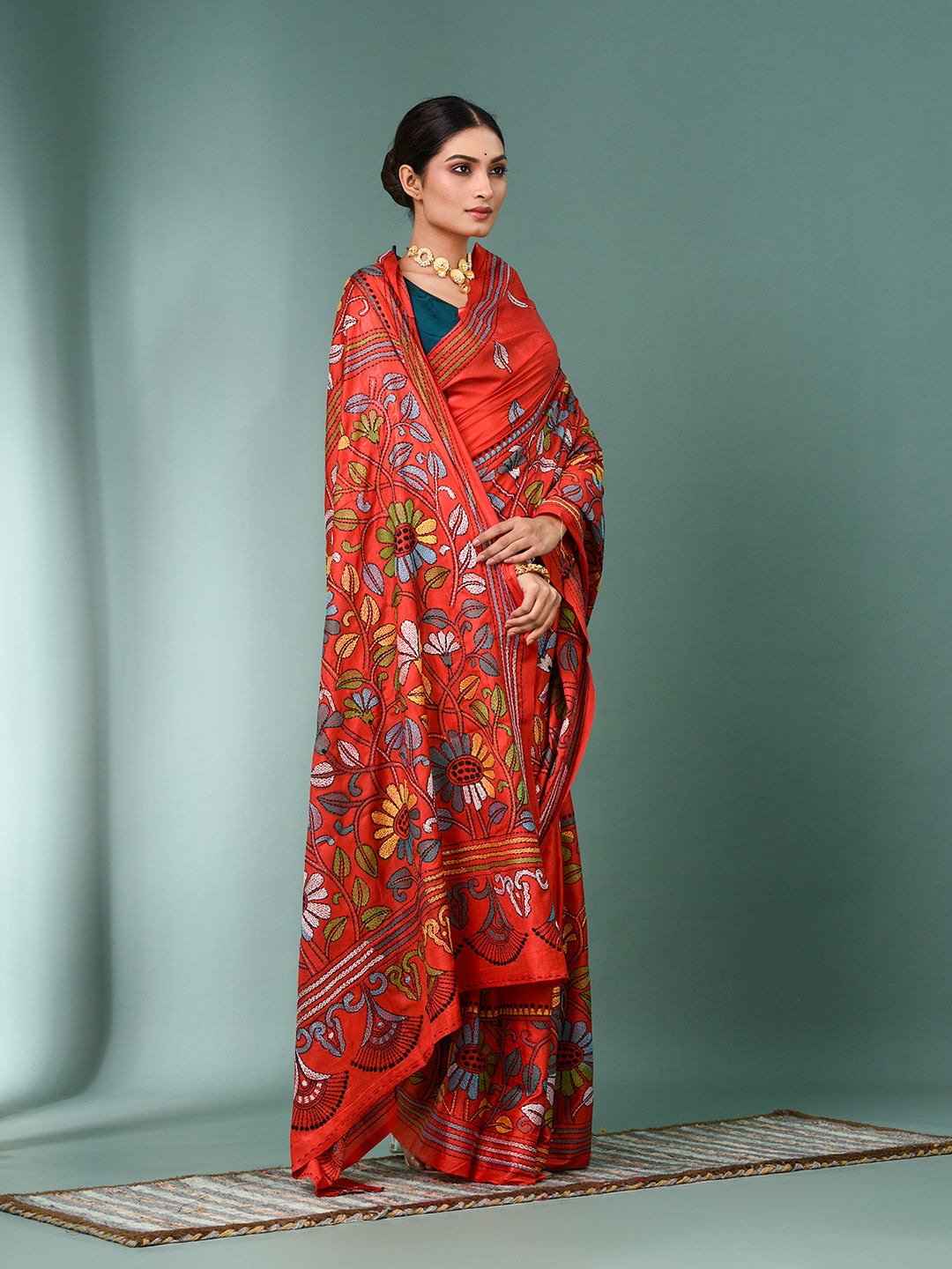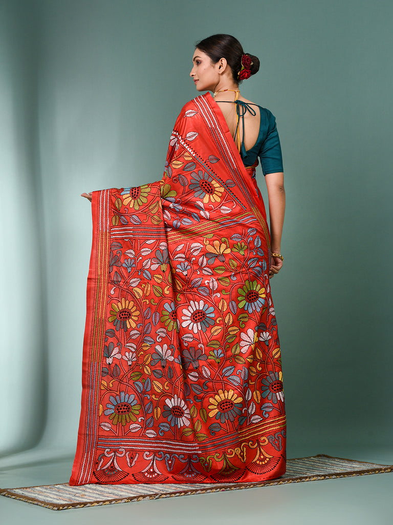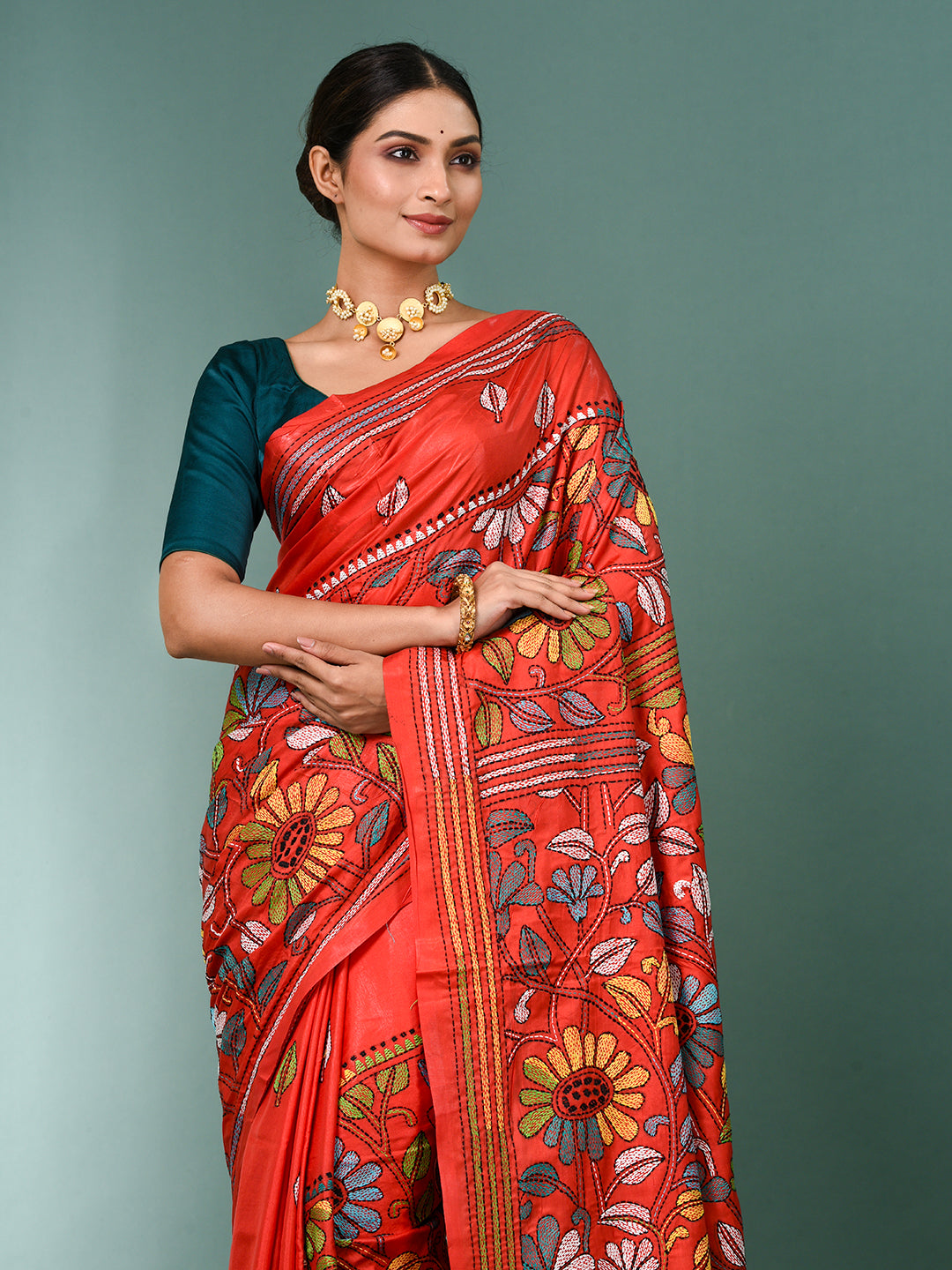 Embrace timeless craftsmanship with our Kantha Stitch sarees. Handcrafted with intricate, traditional embroidery, each piece showcases delicate motifs and vibrant patterns, bringing a touch of heritage to your wardrobe. Made from soft, comfortable fabric, these sarees are perfect for casual gatherings, festive occasions, and even daily wear. The unique Kantha stitch adds texture and depth, making every saree a work of art. Available in a variety of colors and designs, they offer a blend of tradition and modern elegance. Perfect for those who appreciate artisan craftsmanship and cultural artistry.