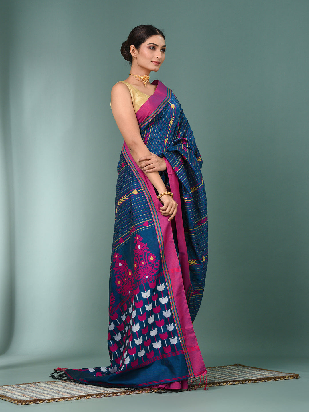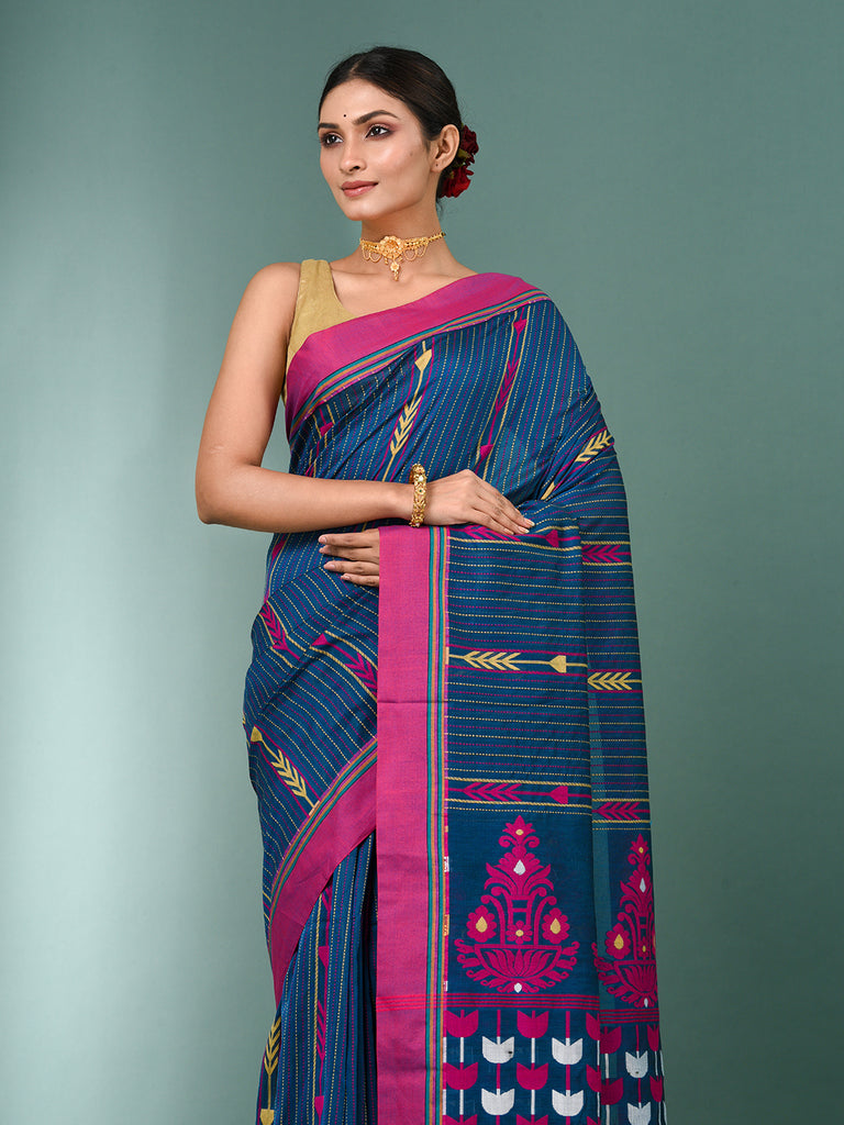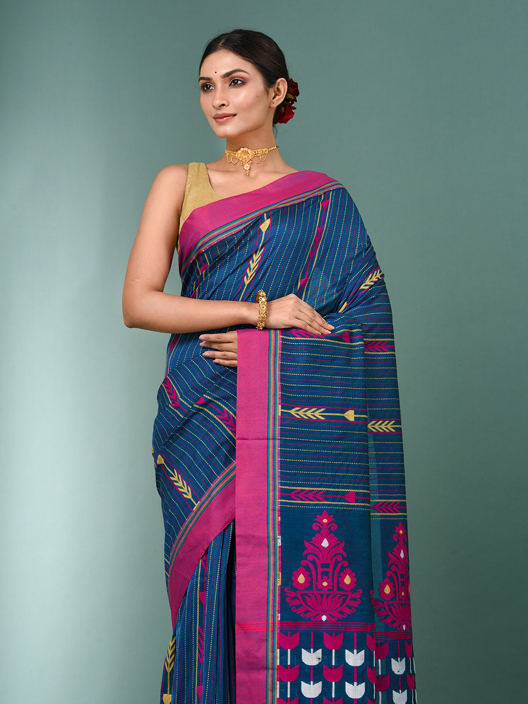 Sapphire Blue Geometric Pattern Cotton Soft Saree