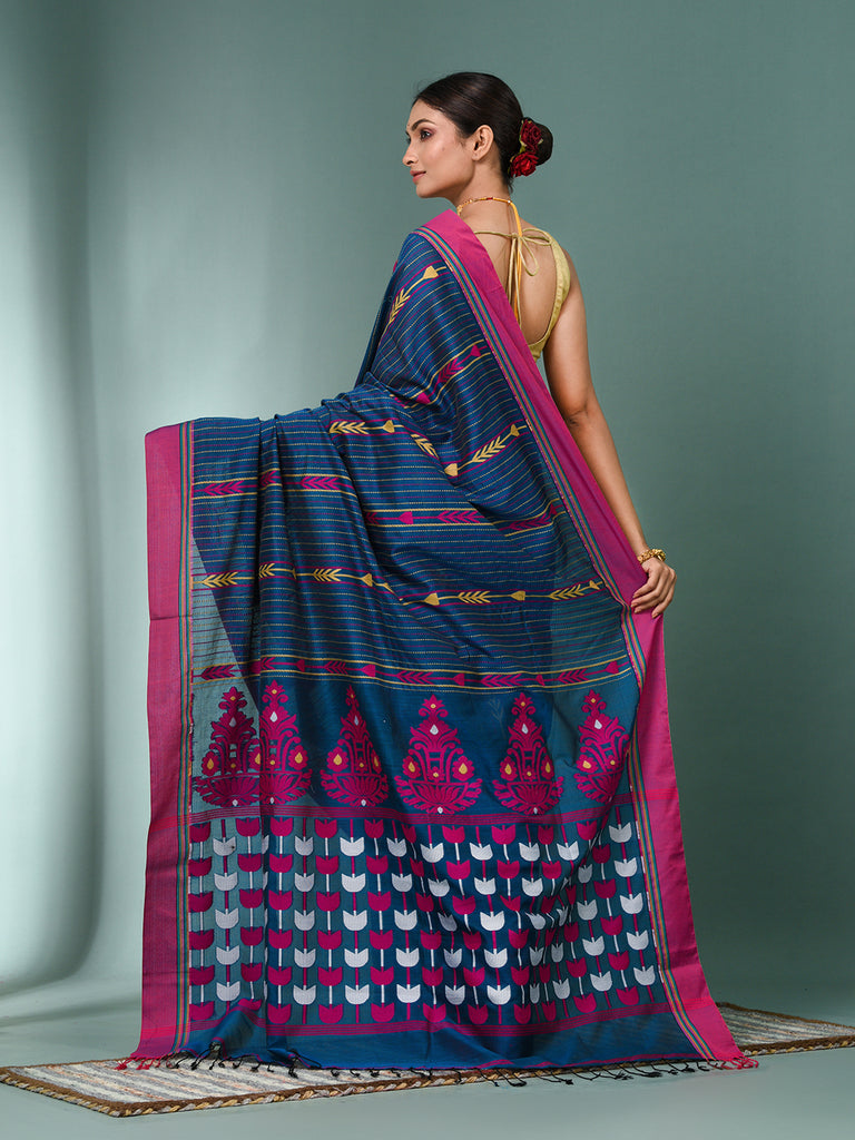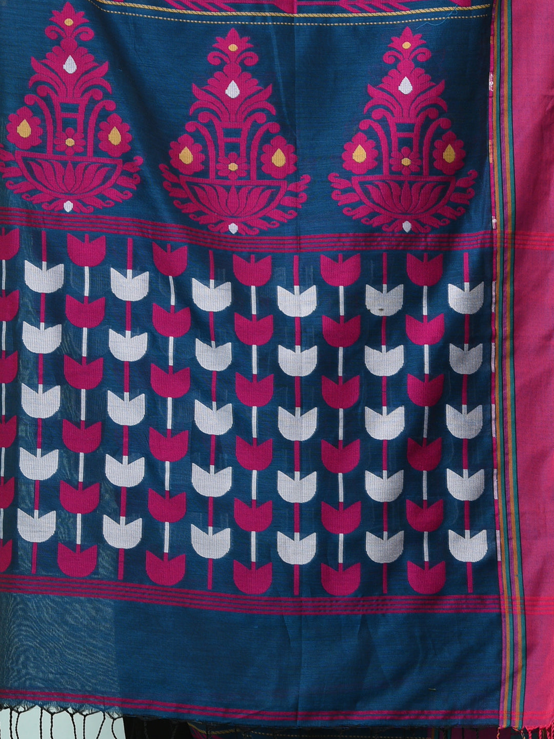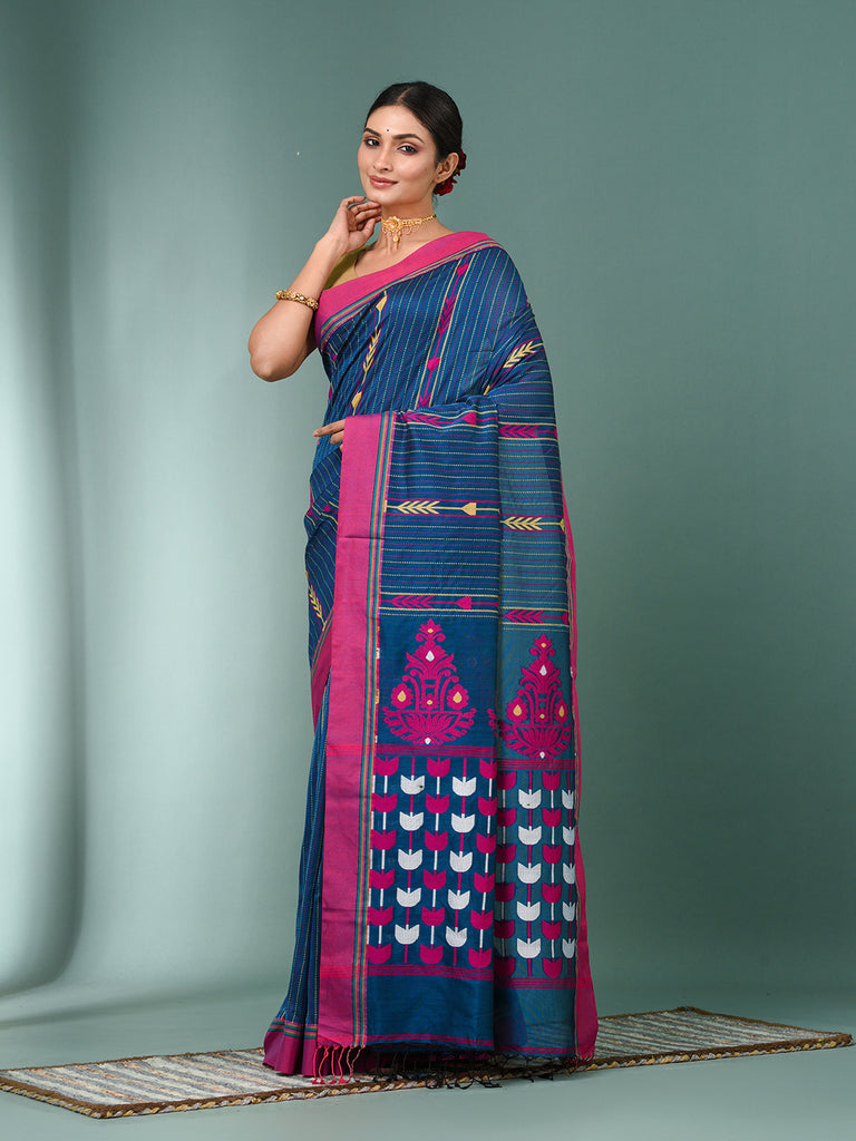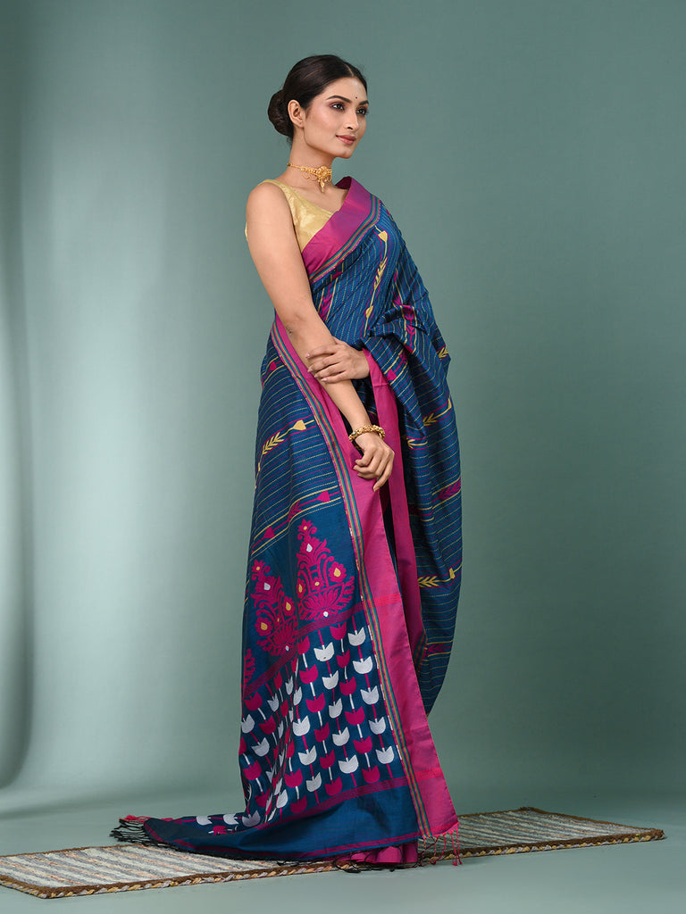 Sapphire Blue Geometric Pattern Cotton Soft Saree