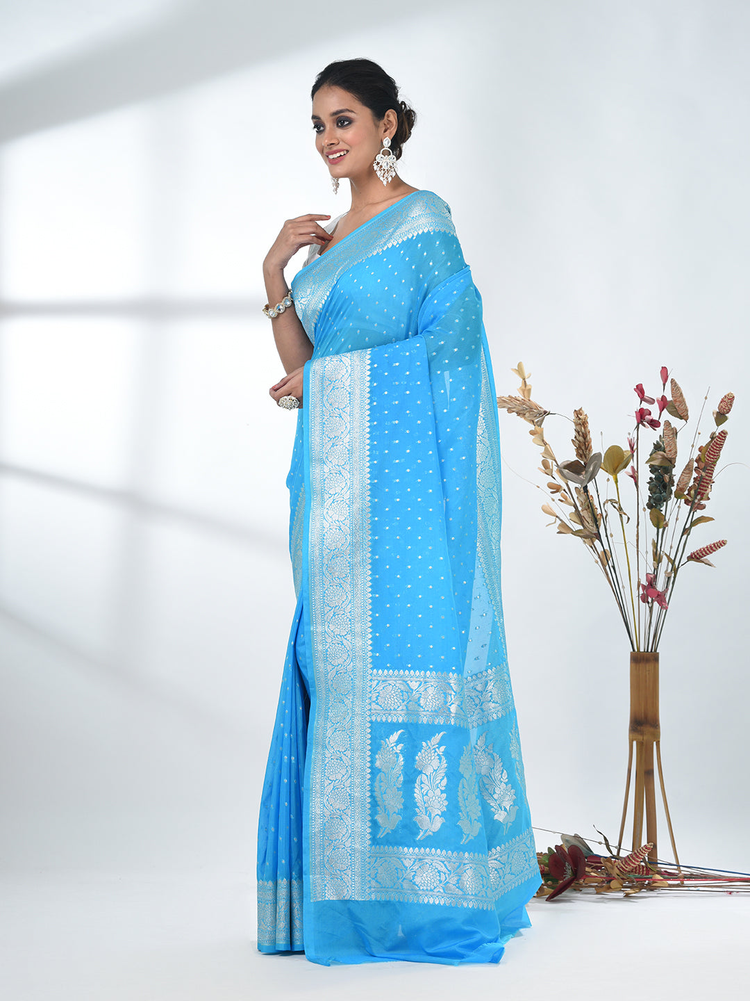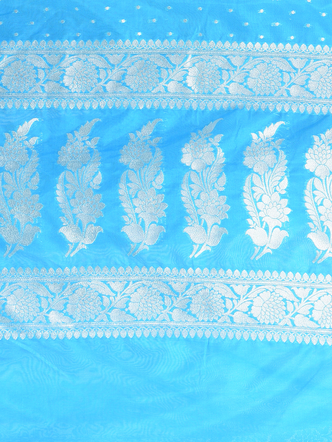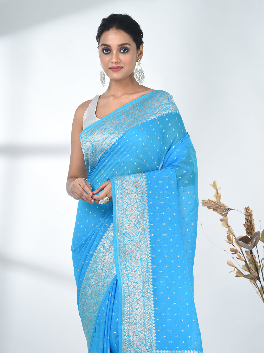 Sky Blue Georgette Saree with Silver Border and Detailing