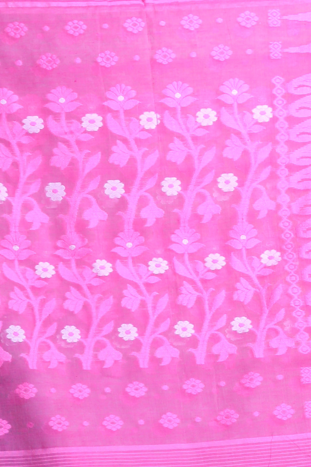 White & Pink Silk Cotton Jamdani Saree
