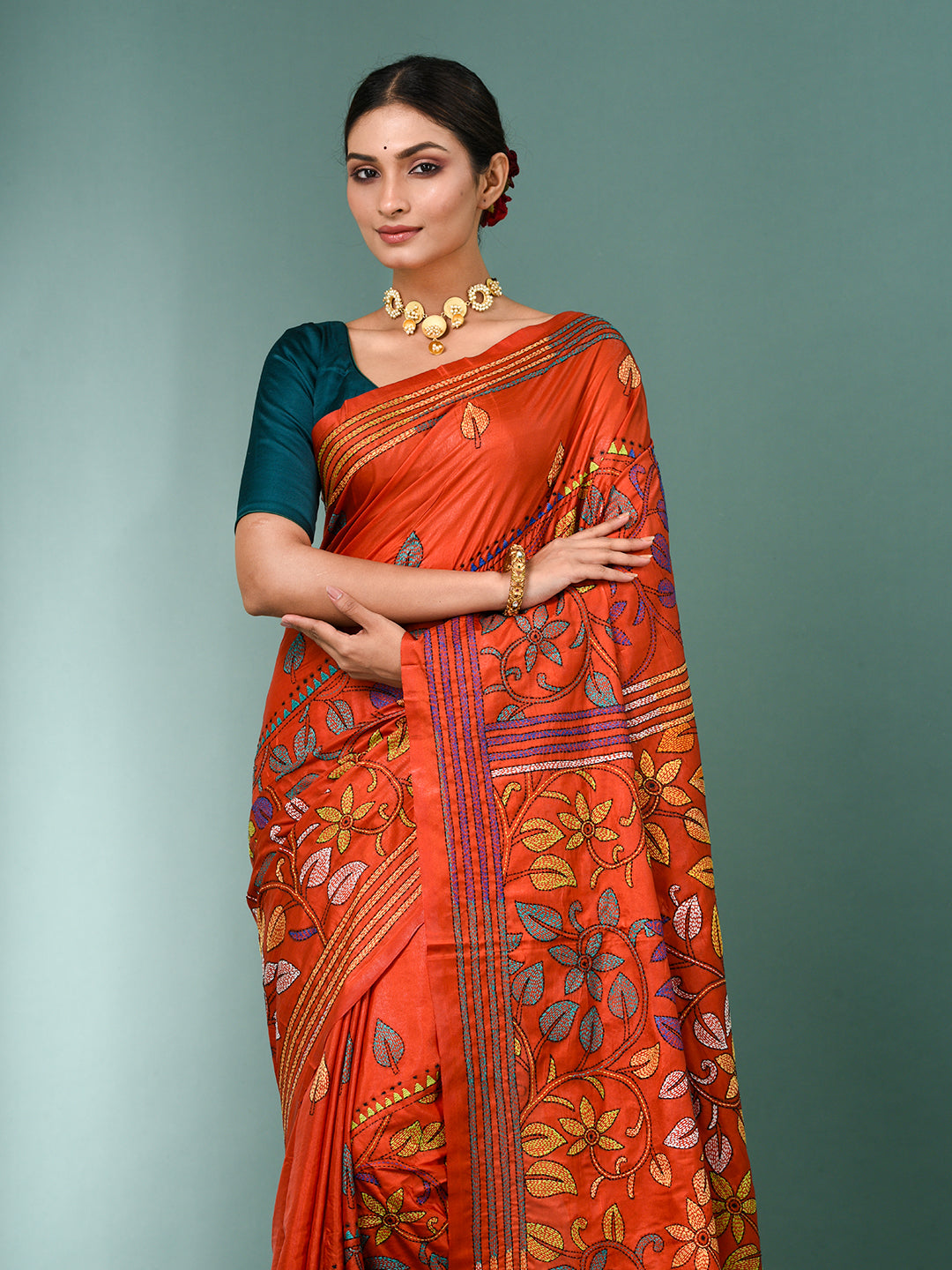 Embrace timeless craftsmanship with our Kantha Stitch sarees. Handcrafted with intricate, traditional embroidery, each piece showcases delicate motifs and vibrant patterns, bringing a touch of heritage to your wardrobe. Made from soft, comfortable fabric, these sarees are perfect for casual gatherings, festive occasions, and even daily wear. The unique Kantha stitch adds texture and depth, making every saree a work of art. Available in a variety of colors and designs, they offer a blend of tradition and modern elegance. Perfect for those who appreciate artisan craftsmanship and cultural artistry.