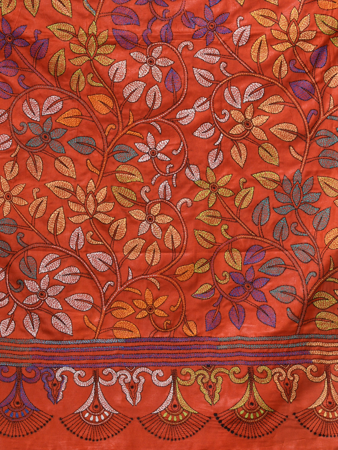 Red Kantha Stitch Silk Soft Saree