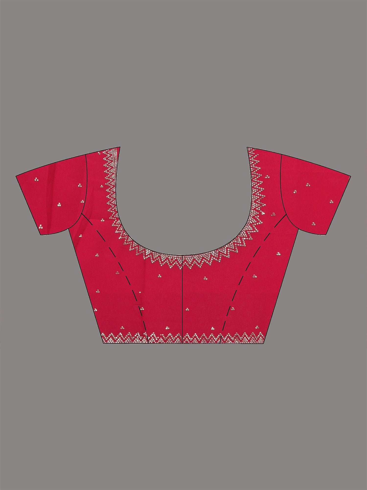 Add a dash of elegance to your wardrobe with this stunning Fuchsia Chiffon Saree. The soft and flowy chiffon fabric drapes beautifully, ensuring comfort and style at every occasion. The rich fuchsia color is complemented by a delicate stone work border, which enhances the overall grace of the saree, making it perfect for weddings, parties, and other special events. This saree features intricate stone work along the borders, giving it a luxurious and festive appeal. The lightweight chiffon fabric ensures ease of wear while offering an elegant and sophisticated look. A matching blouse piece is included to complete the ensemble, allowing you to create a personalized outfit.