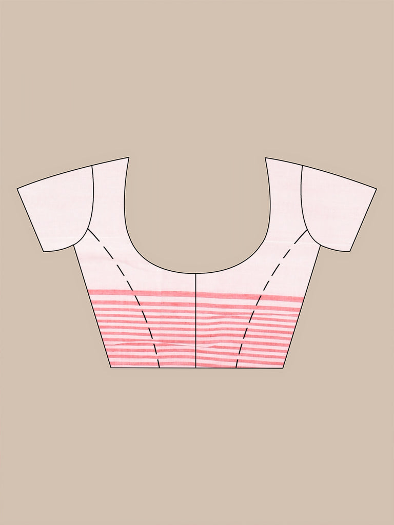 Step into effortless charm with this woven white cotton saree featuring bold red vertical stripes that create a striking yet graceful look. The contrast pallu is detailed with traditional woven textures and delicate motifs, adding a refined twist to the contemporary striped body. Made from soft, breathable cotton, this saree is a stylish choice for casual outings, summer events, and workdays that demand comfort with flair.