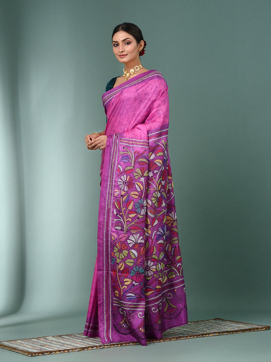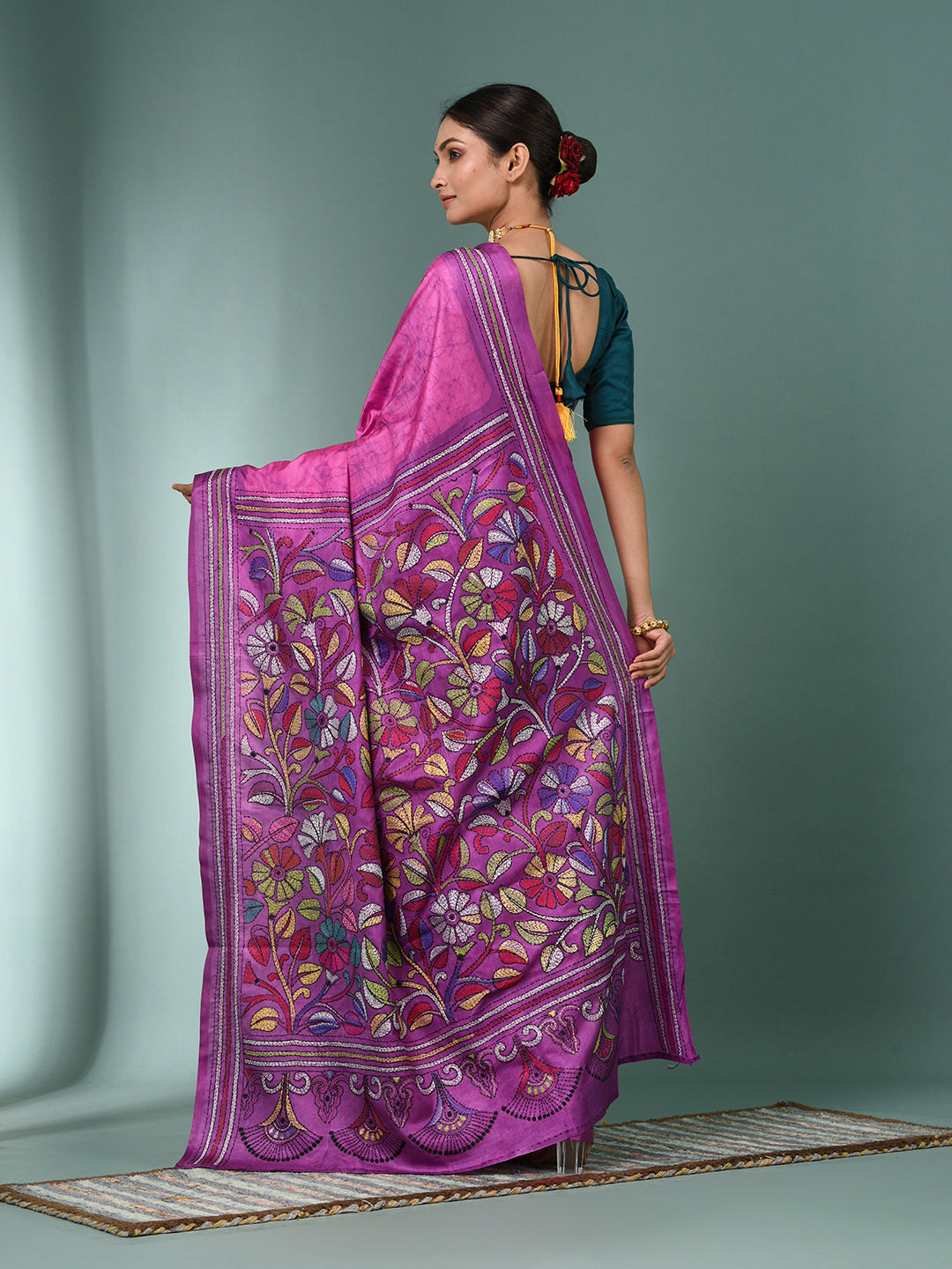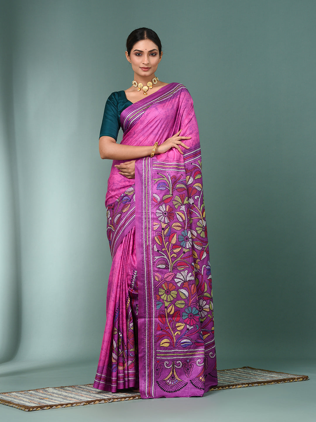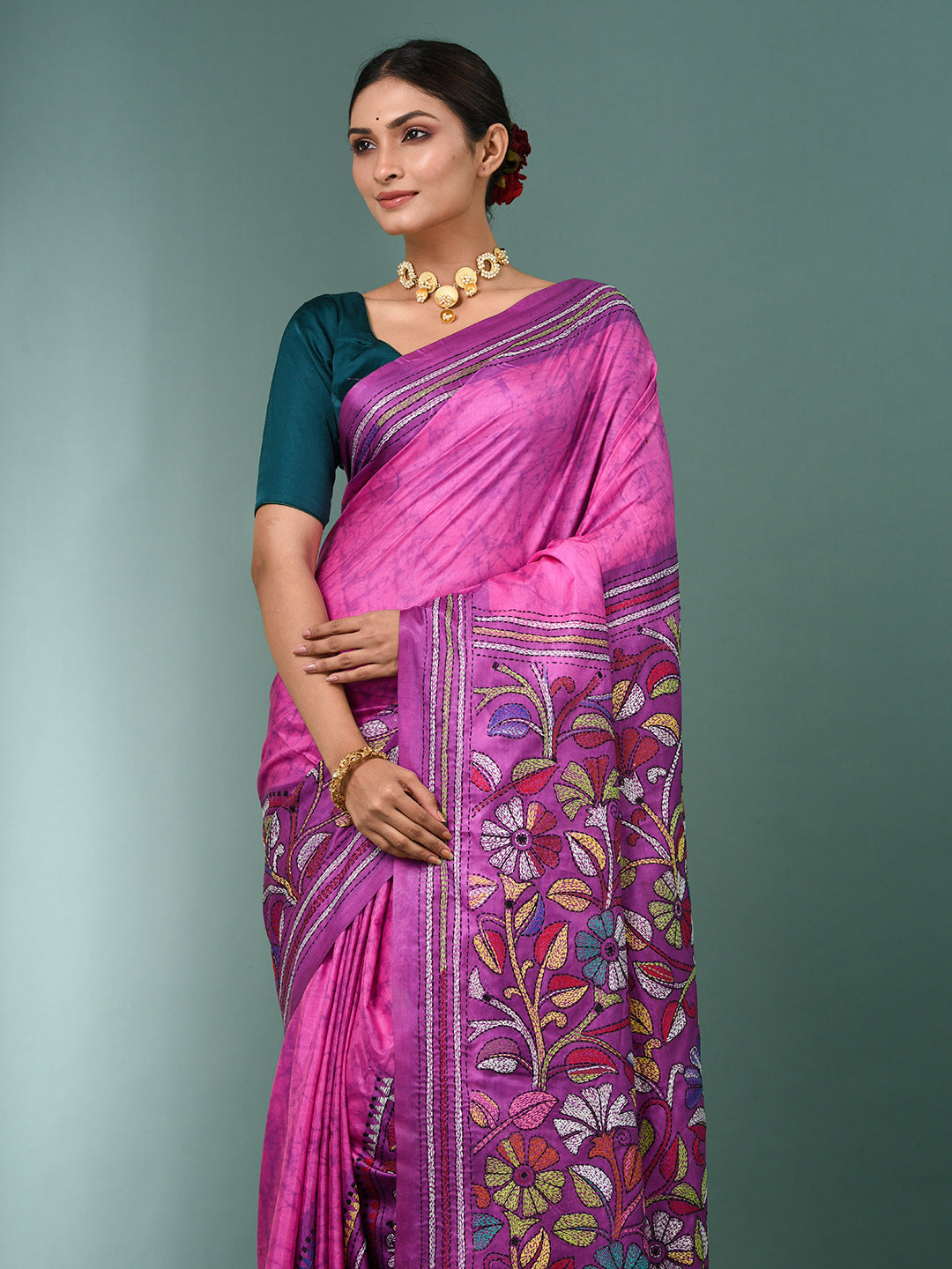 Embrace timeless craftsmanship with our Kantha Stitch sarees. Handcrafted with intricate, traditional embroidery, each piece showcases delicate motifs and vibrant patterns, bringing a touch of heritage to your wardrobe. Made from soft, comfortable fabric, these sarees are perfect for casual gatherings, festive occasions, and even daily wear. The unique Kantha stitch adds texture and depth, making every saree a work of art. Available in a variety of colors and designs, they offer a blend of tradition and modern elegance. Perfect for those who appreciate artisan craftsmanship and cultural artistry.