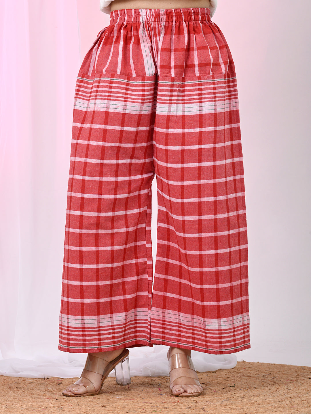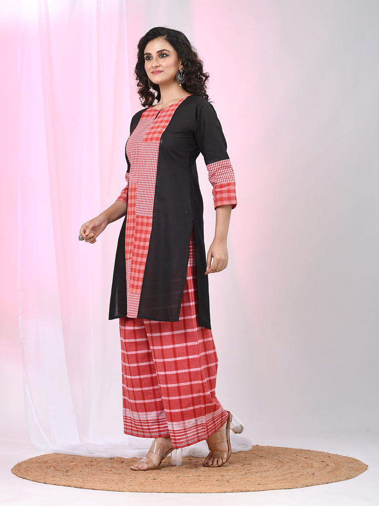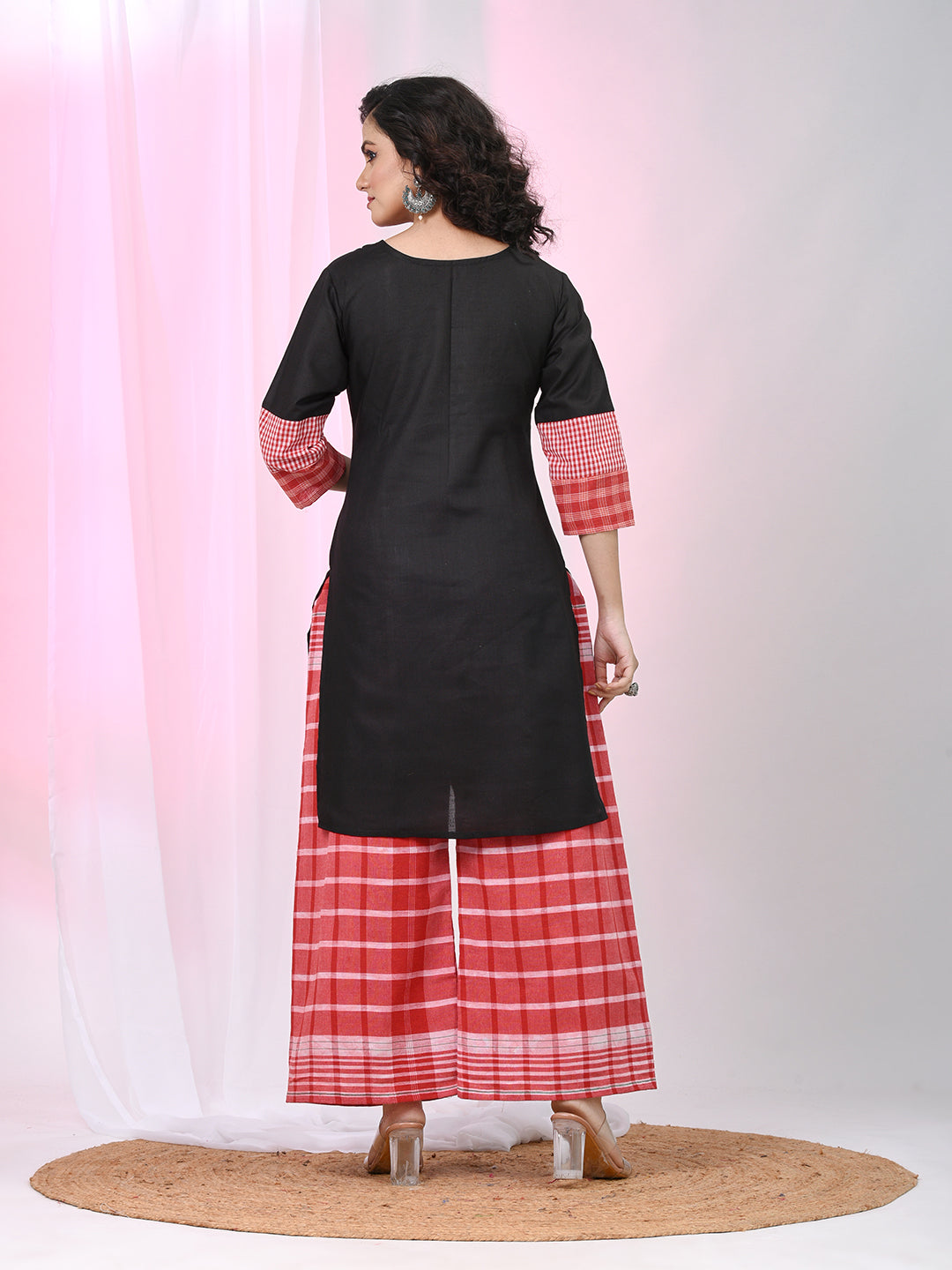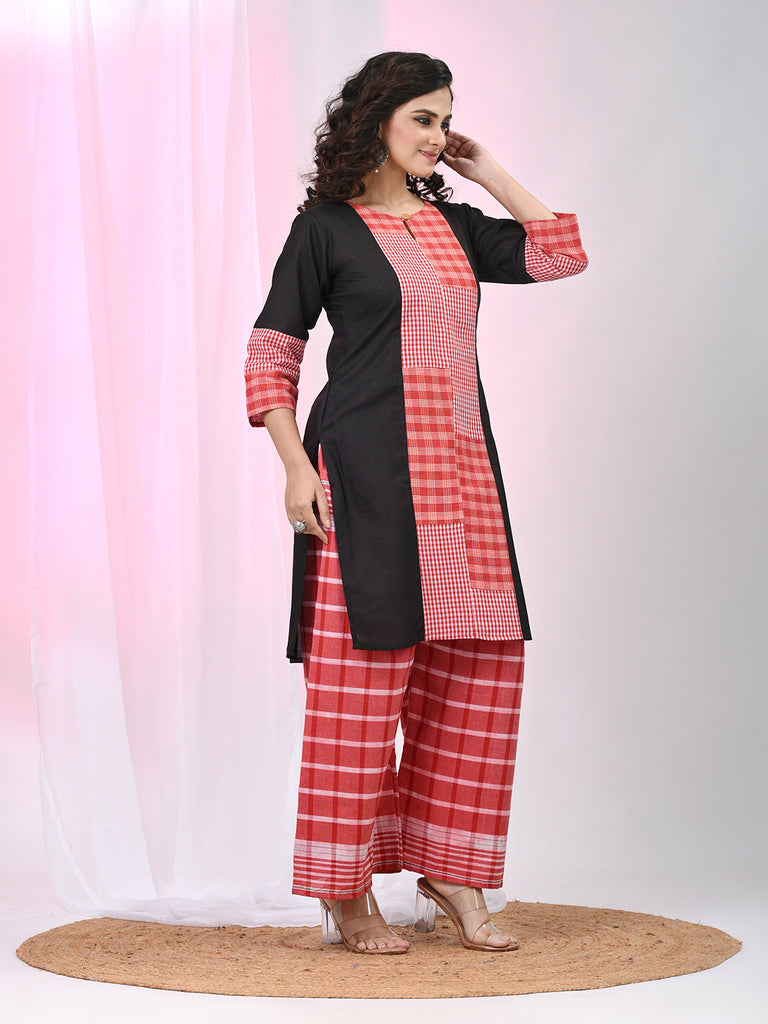 Women's Black & Red Cotton Checkered Kurta Set with Palazzos