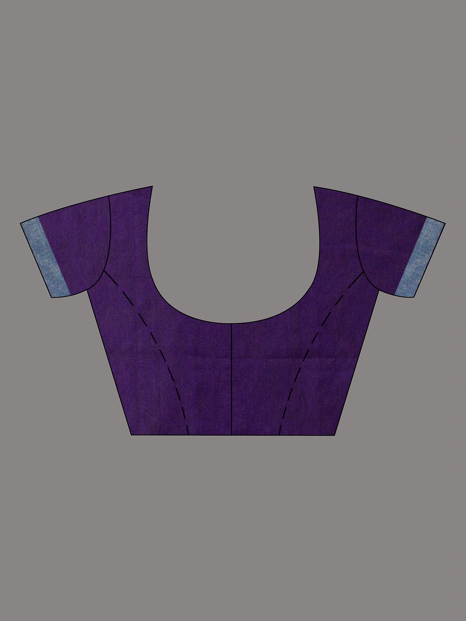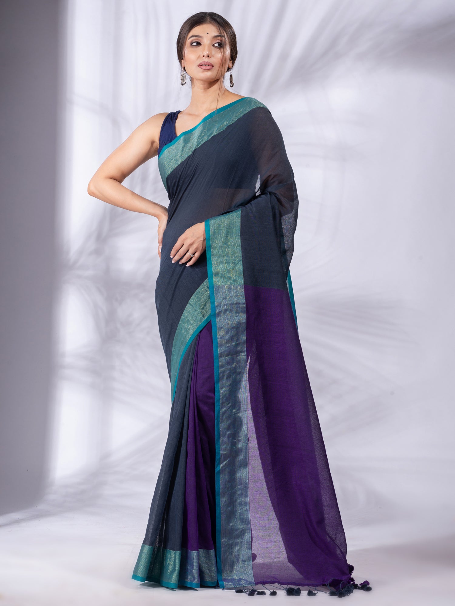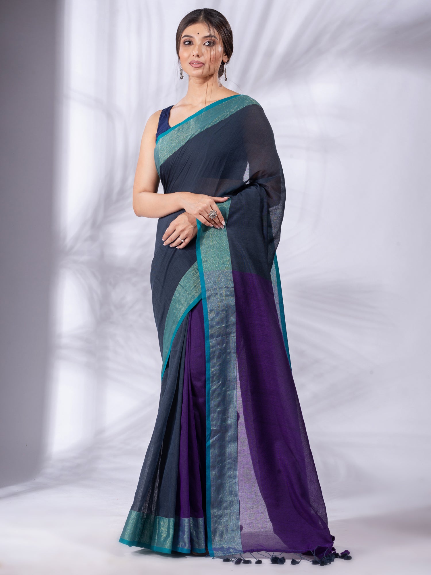 Grey And Purple Half & Half Cotton Handwoven Soft Saree With Zari Border