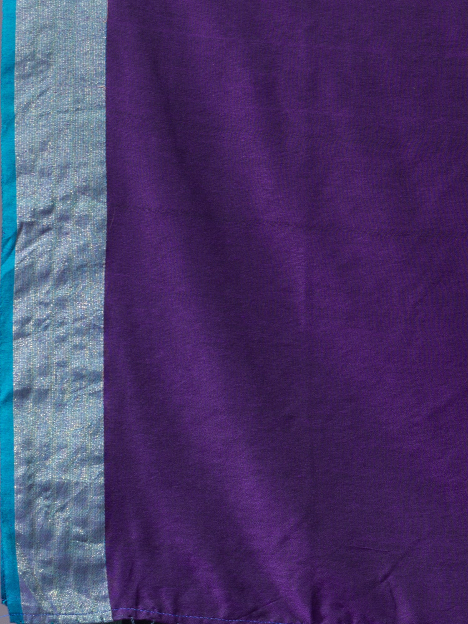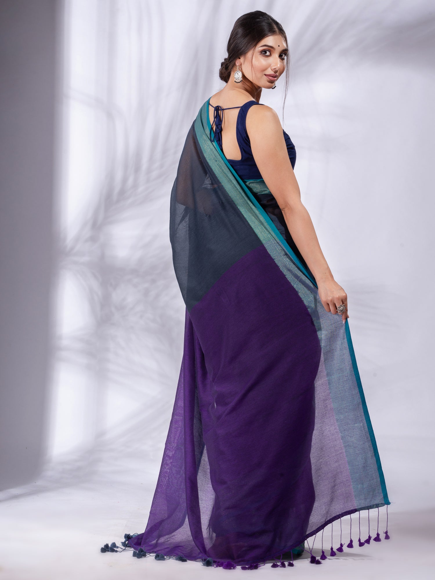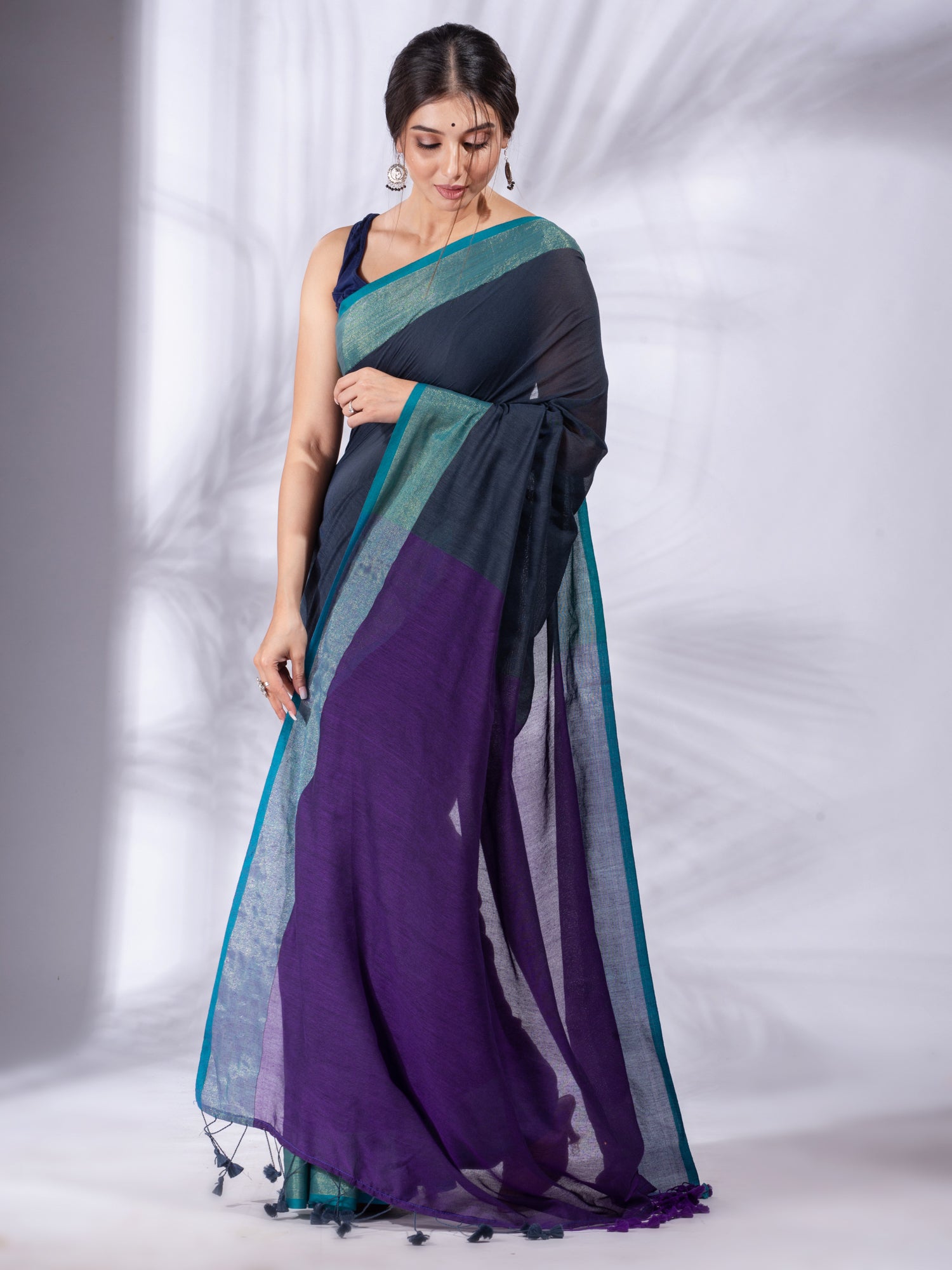 Grey And Purple Half & Half Cotton Handwoven Soft Saree With Zari Border