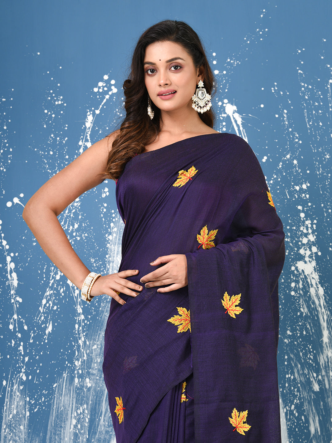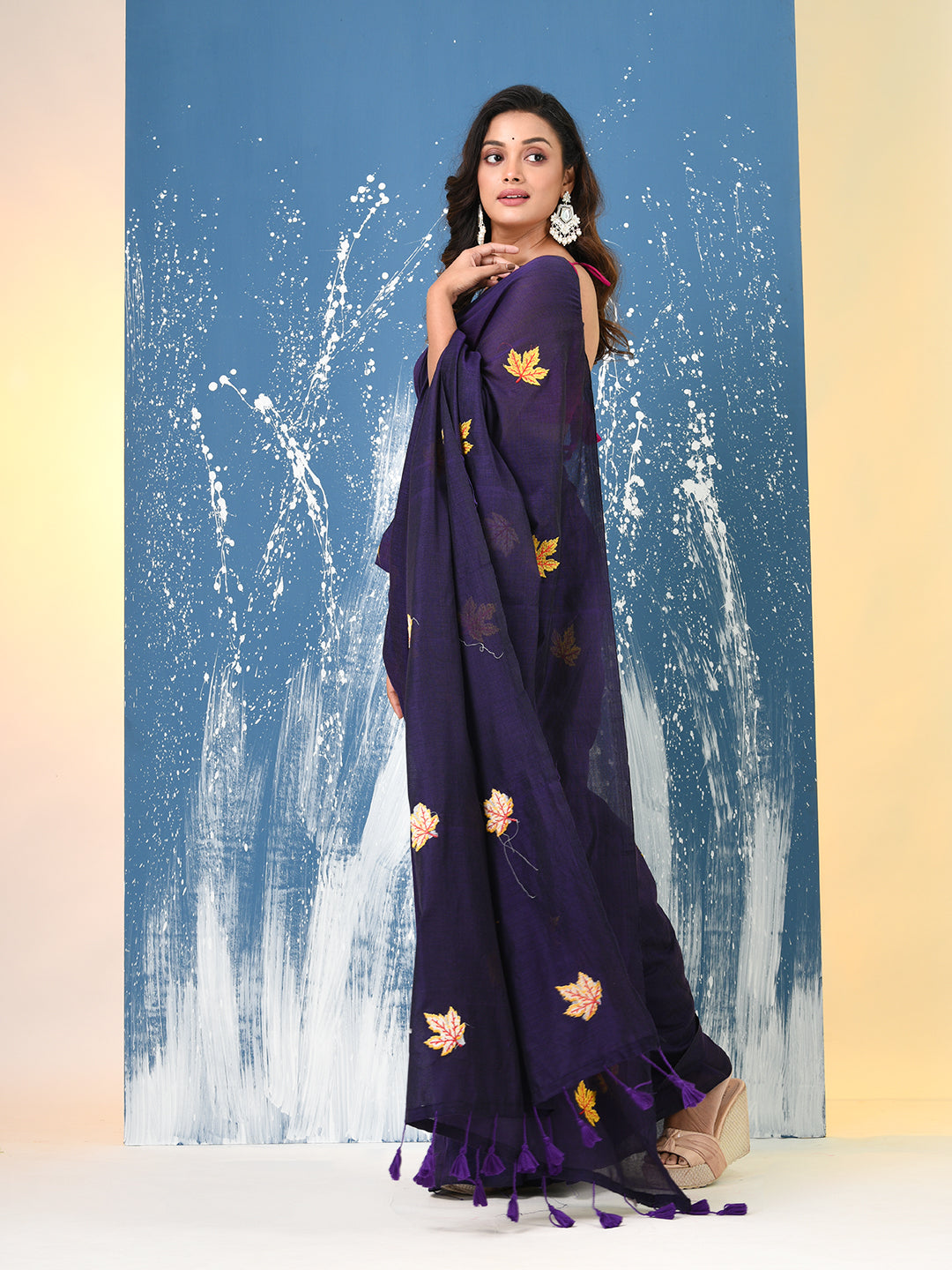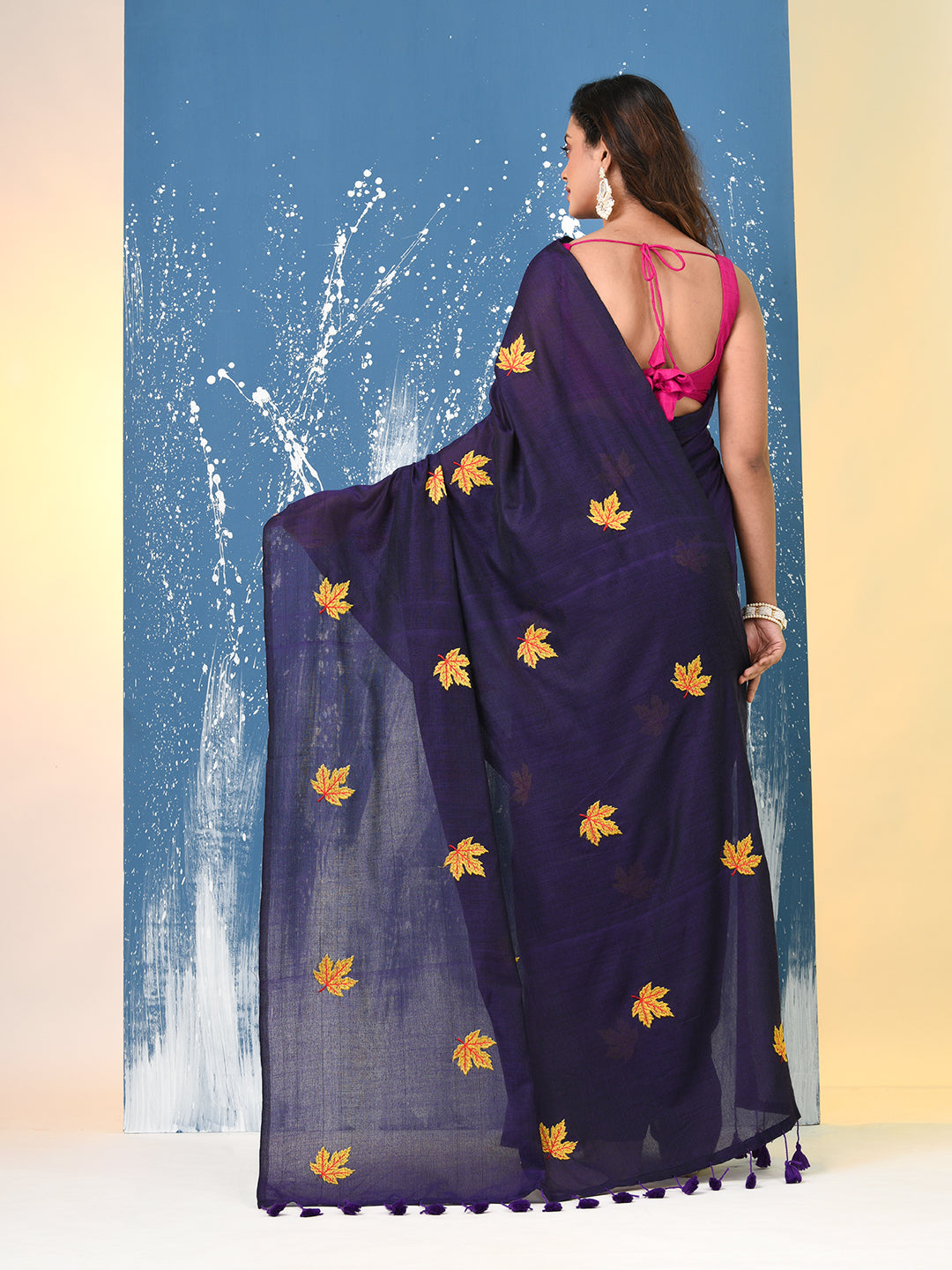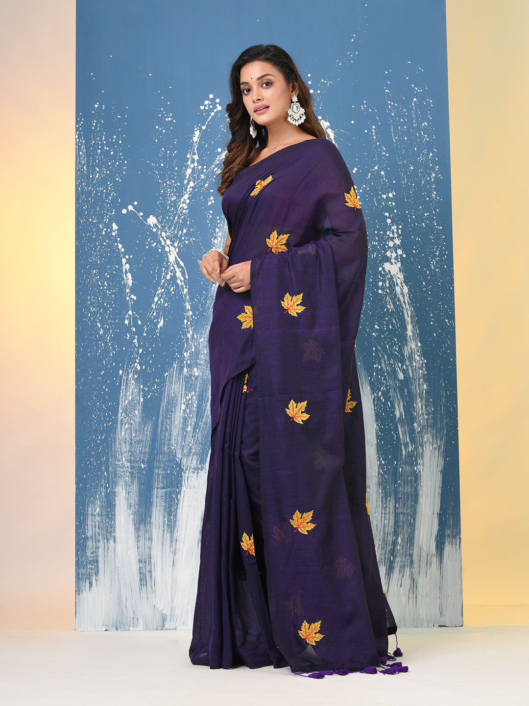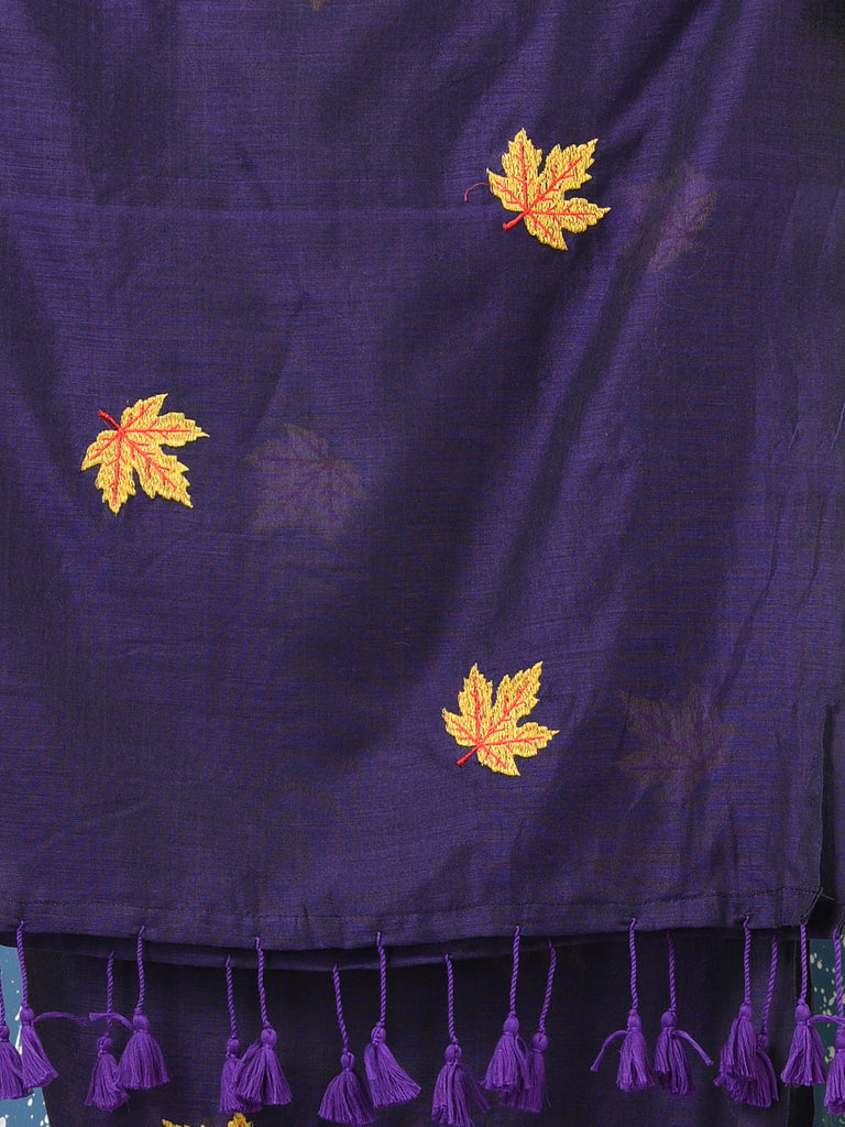 Purple Leaf Motifs Cotton Soft Saree