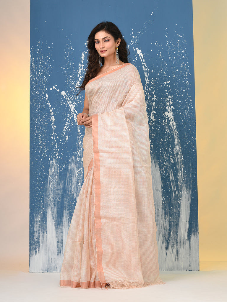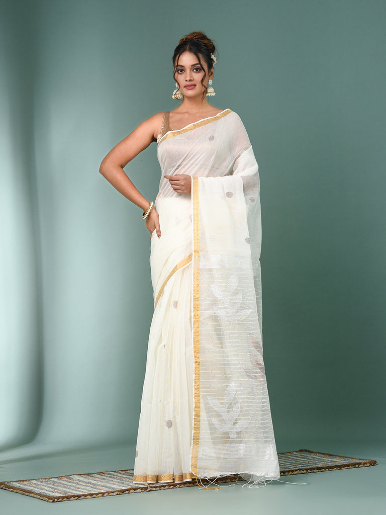 Ecru Floral Motifs Tussar Silk Soft Handloom Saree