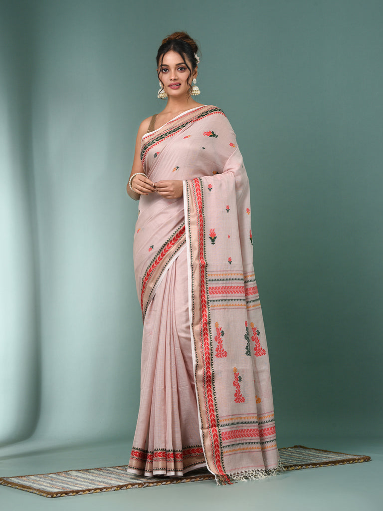 Beige Kantha Stitch Bangalore Silk Soft Saree