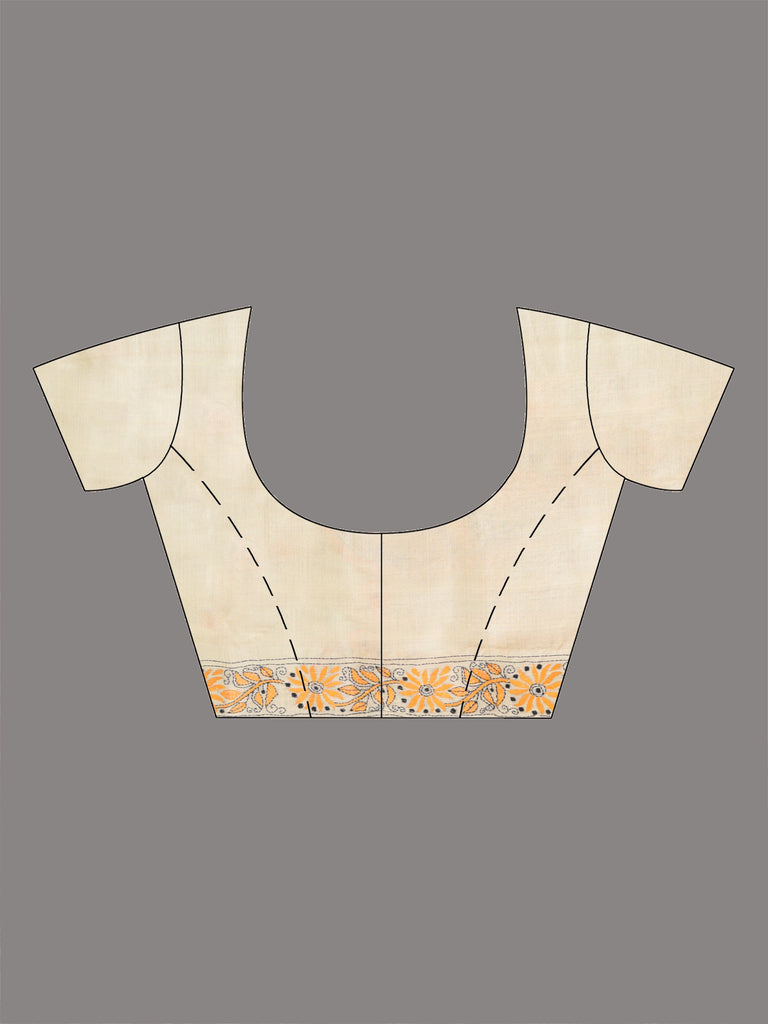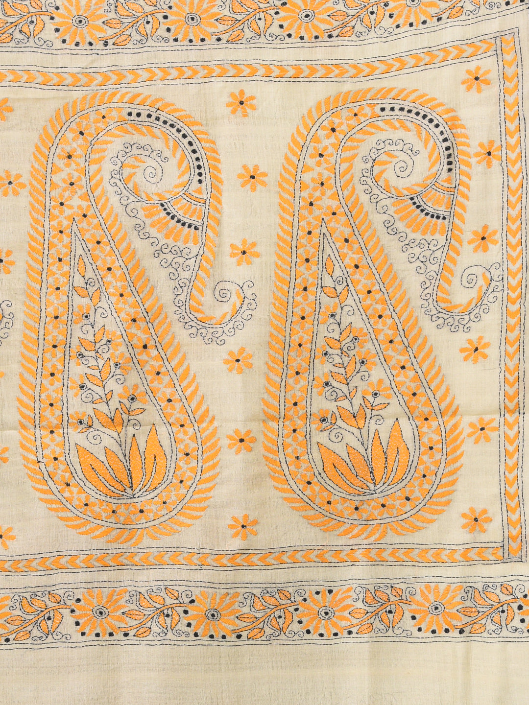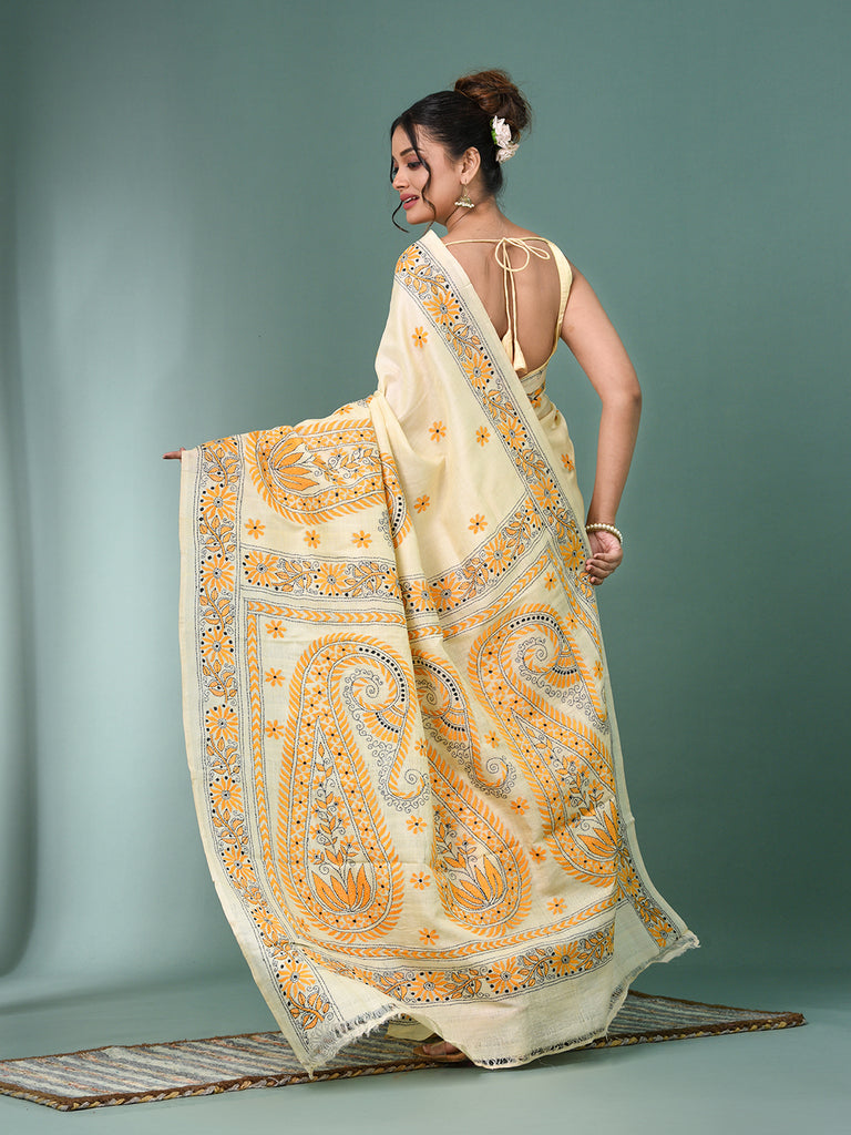 Beige Kantha Stitch Bangalore Silk Soft Saree