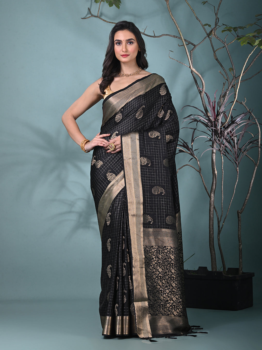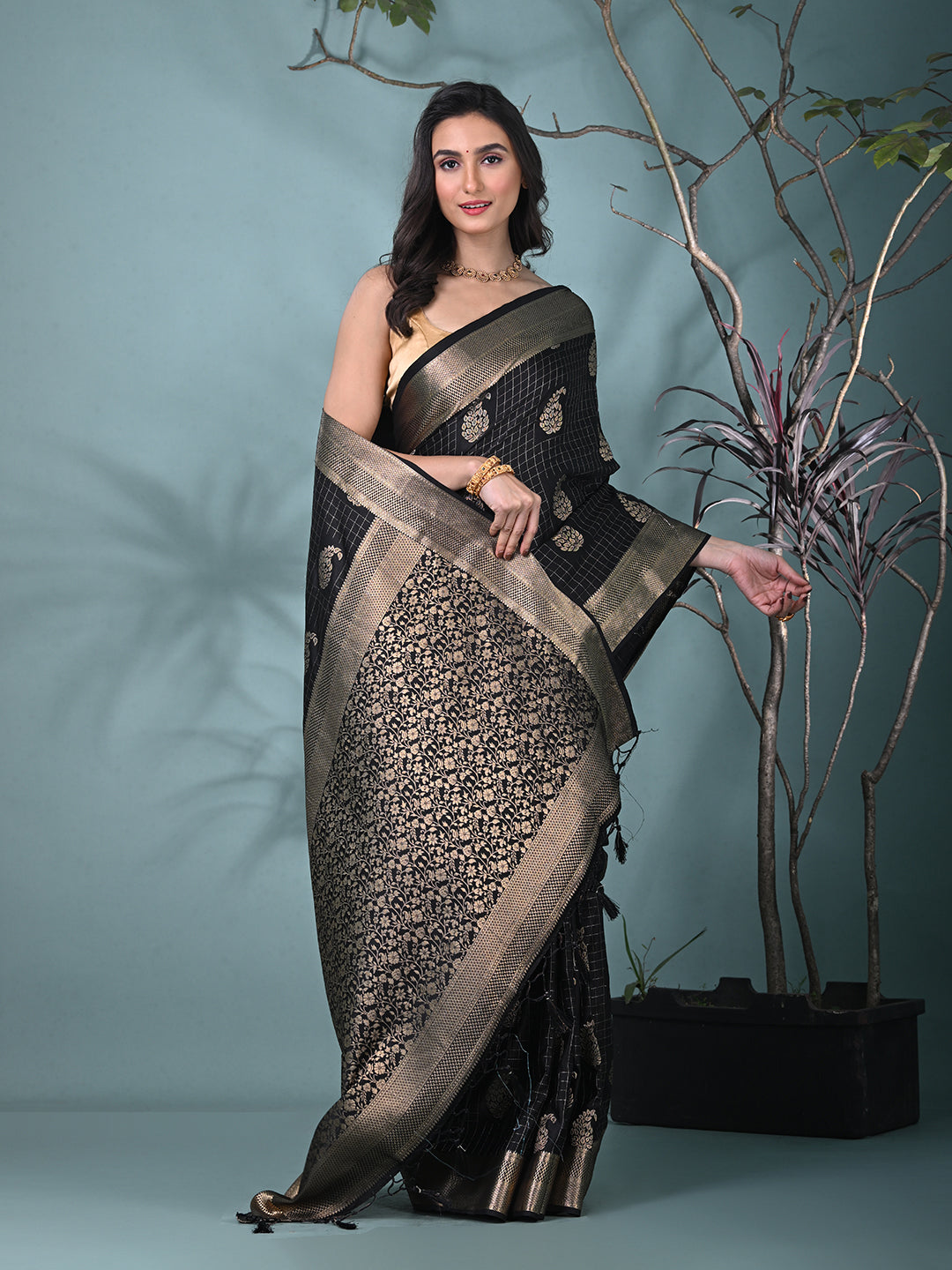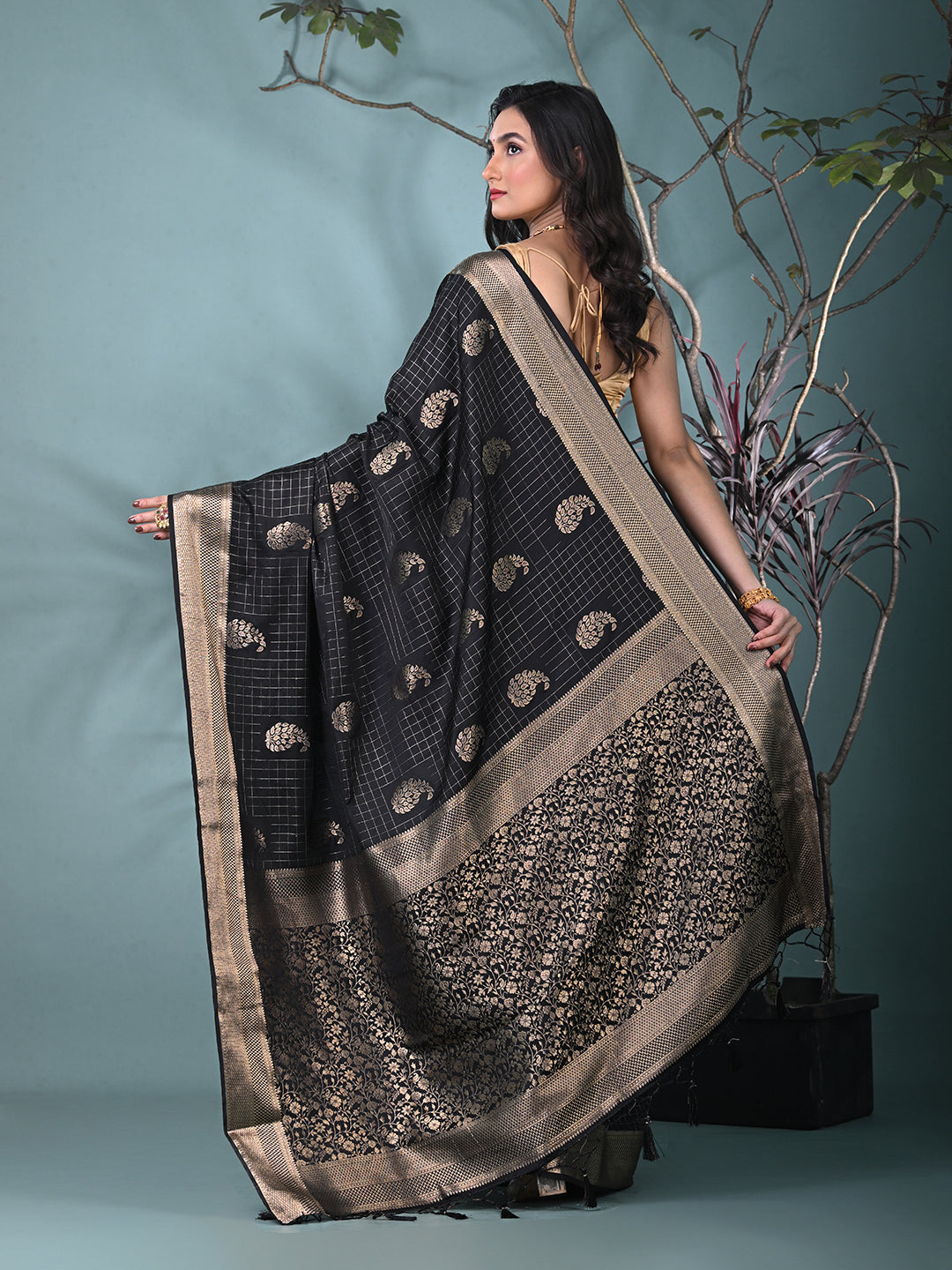 Elegant Black Silk Saree with Intricate Brocade Work