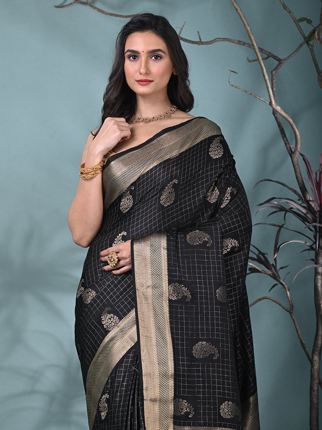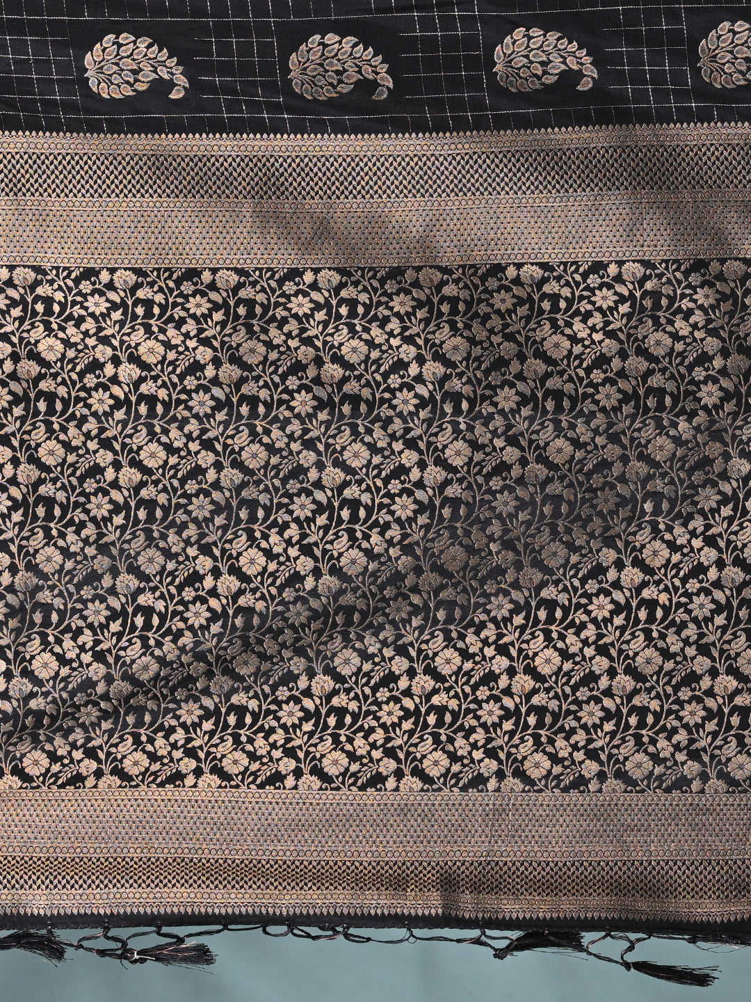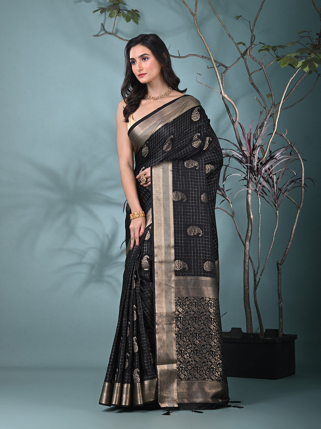 Elegant Black Silk Saree with Intricate Brocade Work