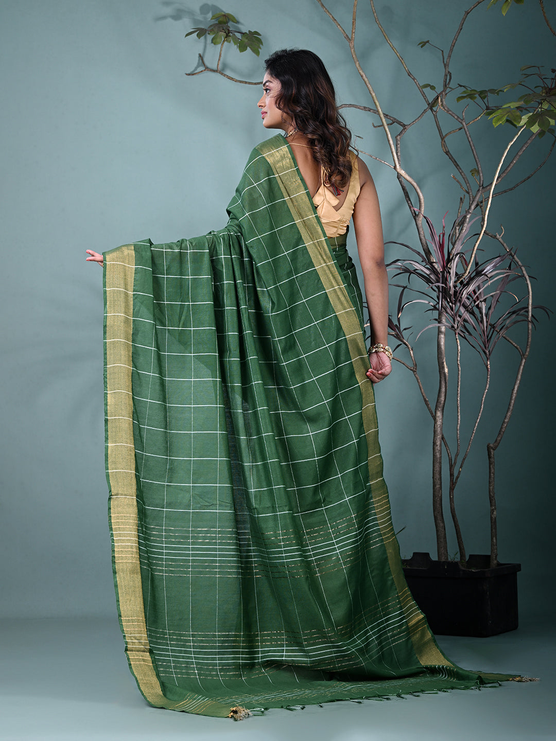 Add a touch of traditional elegance to your wardrobe with this stunning green art silk saree. Featuring a subtle checkered pattern with a beautiful golden border, this saree is perfect for festive occasions or special events. Crafted from high-quality art silk, it offers a smooth, luxurious feel while ensuring comfort throughout the day. Pair it with statement jewelry for a truly regal look.
