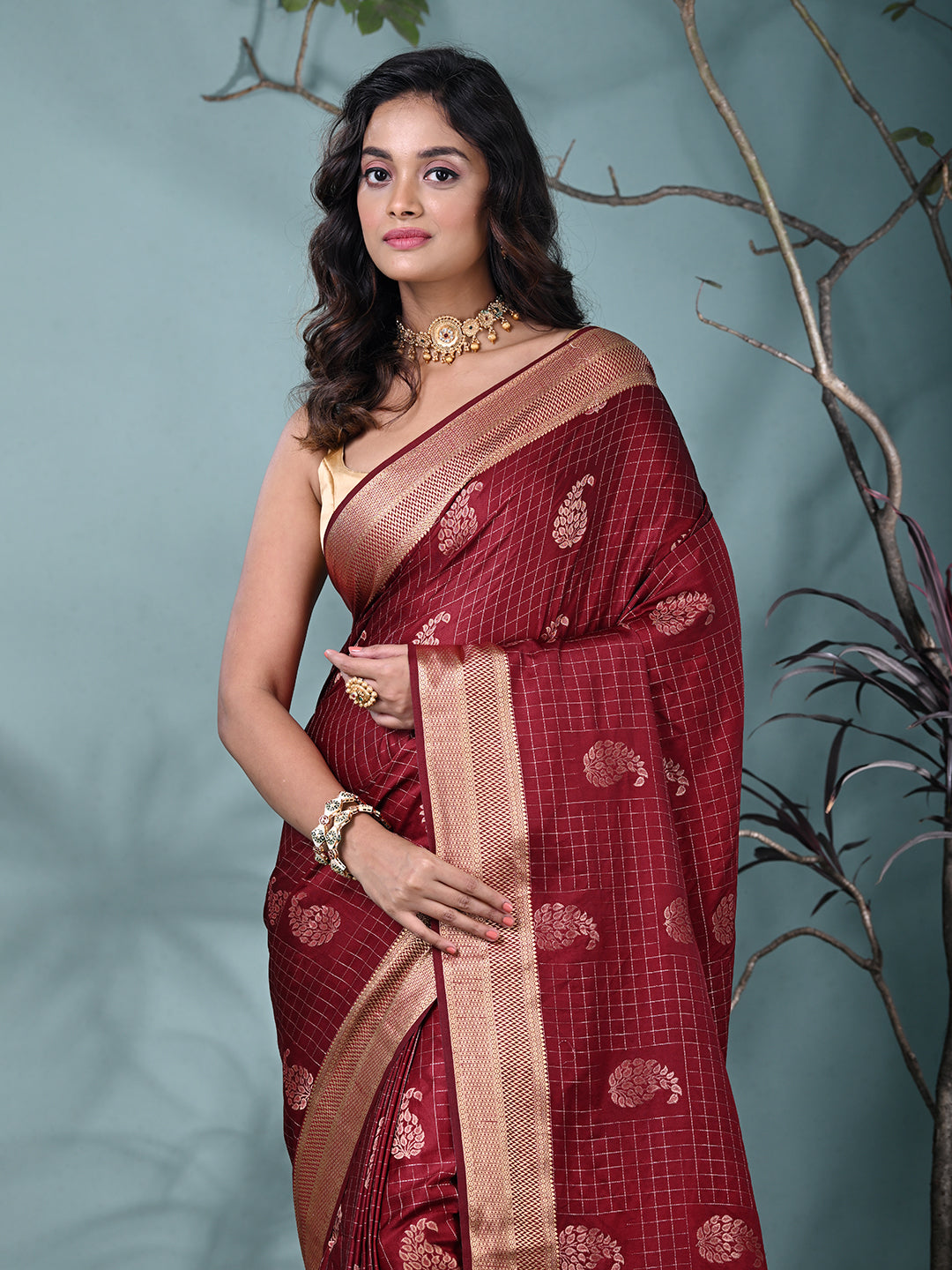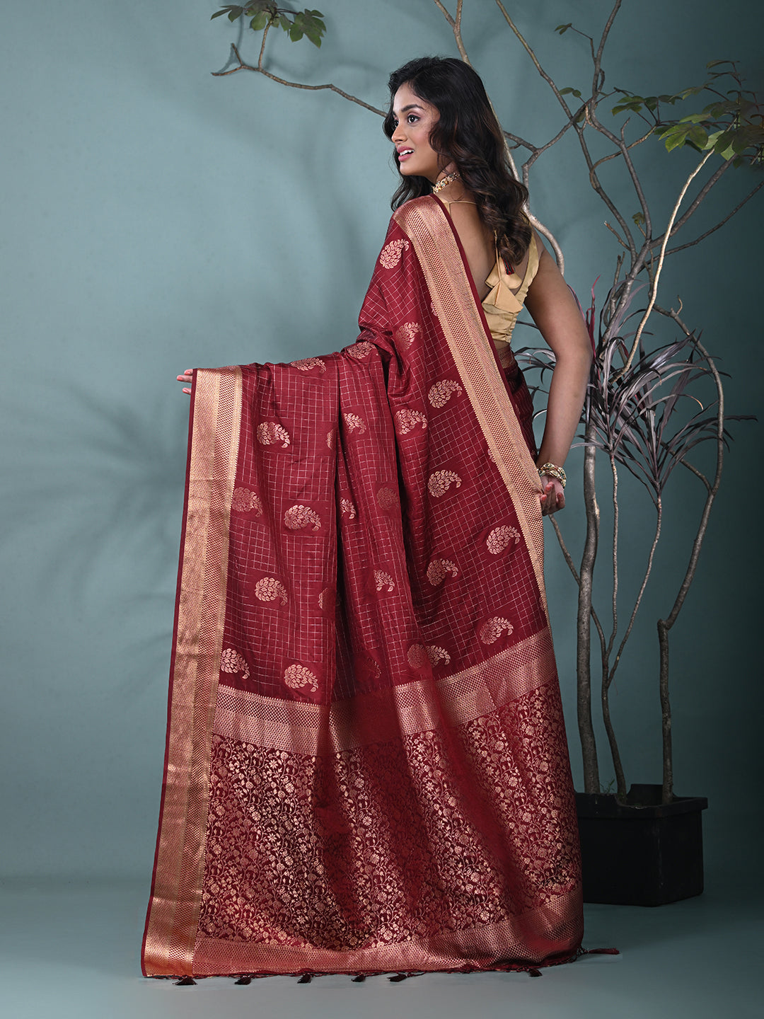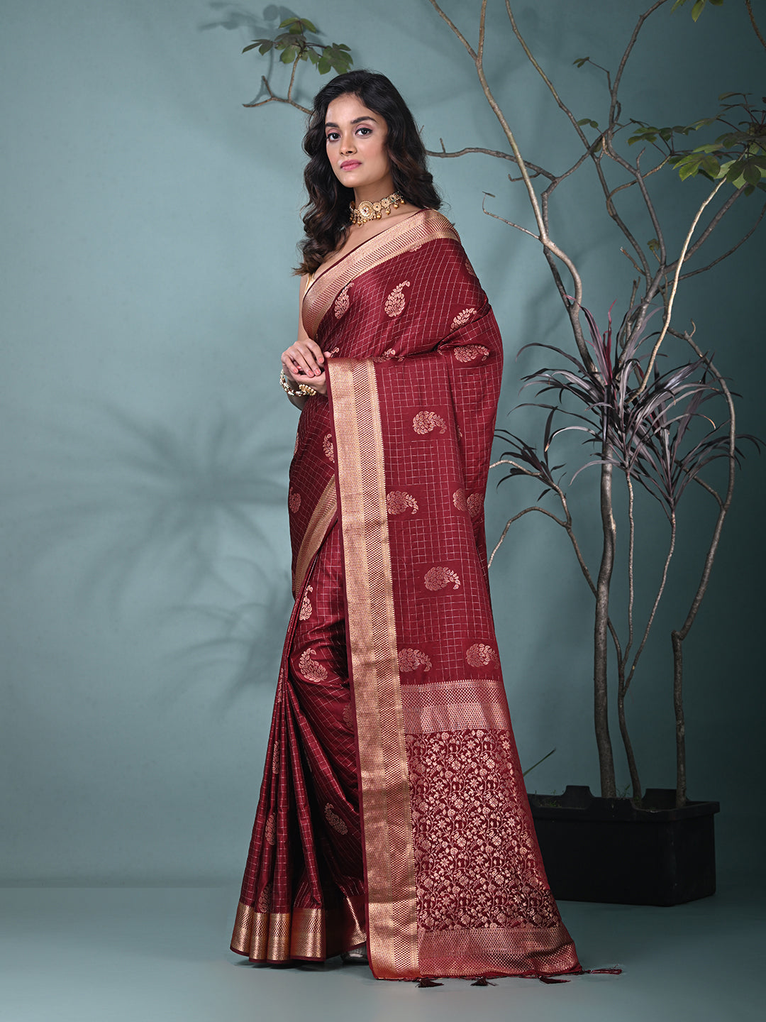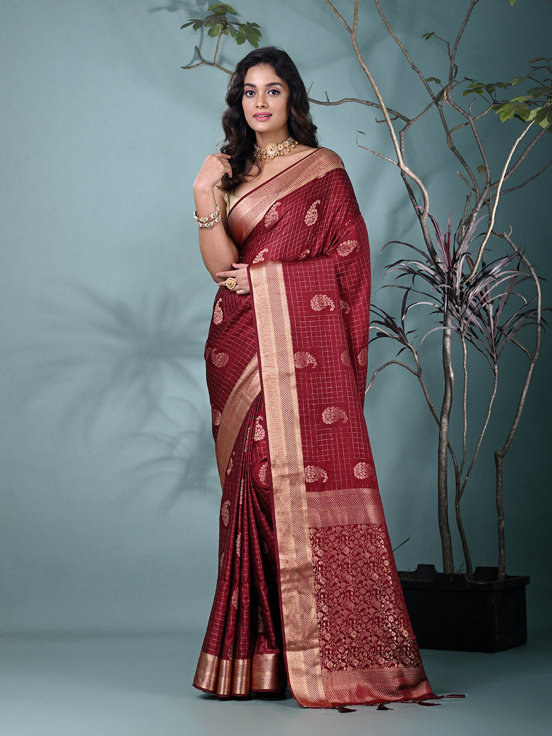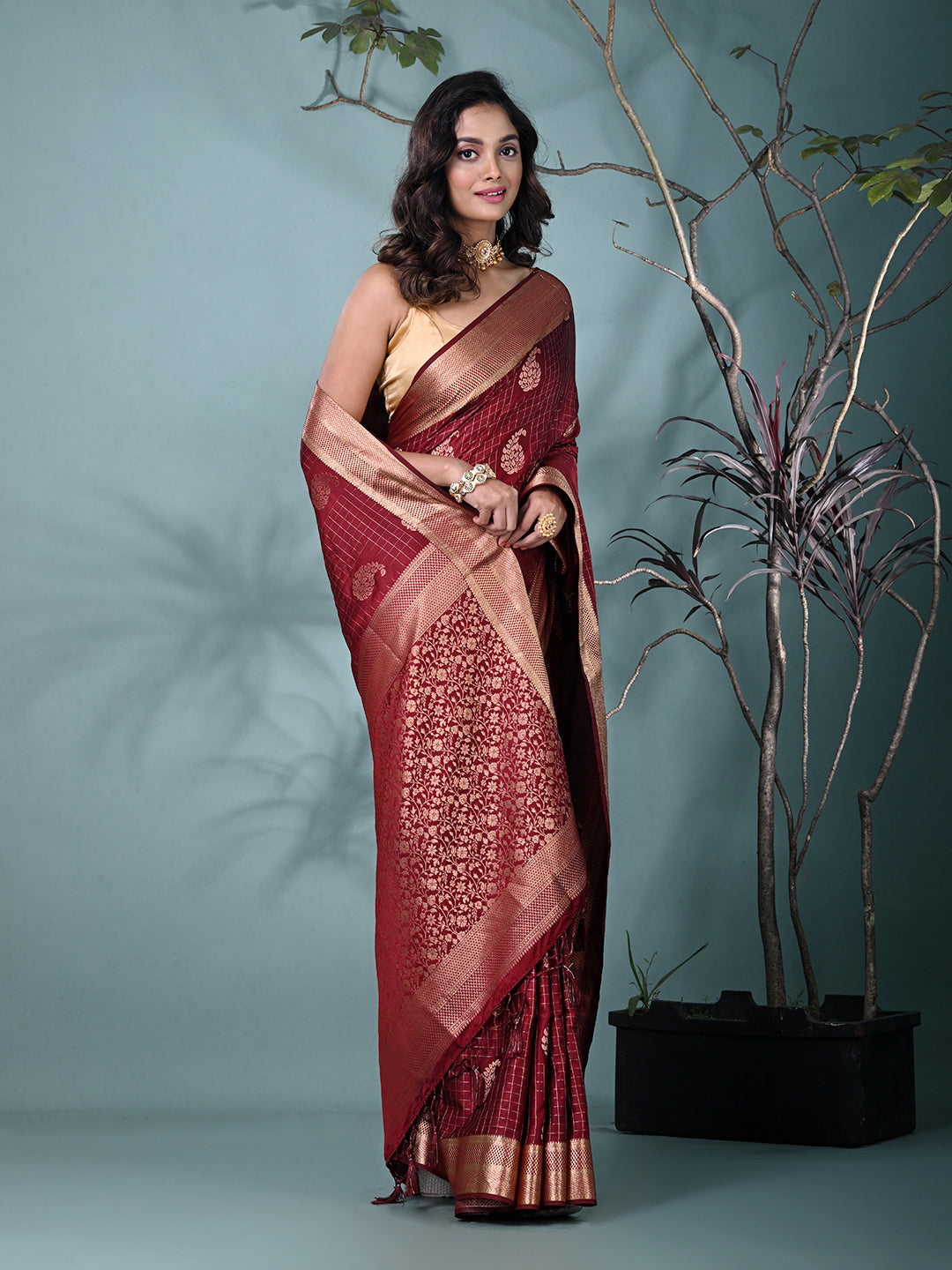 Elegant Maroon Silk Saree with Intricate Brocade Work