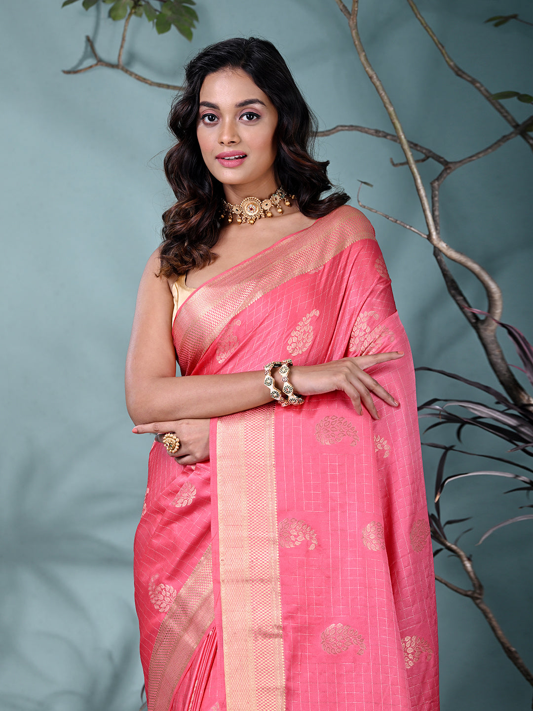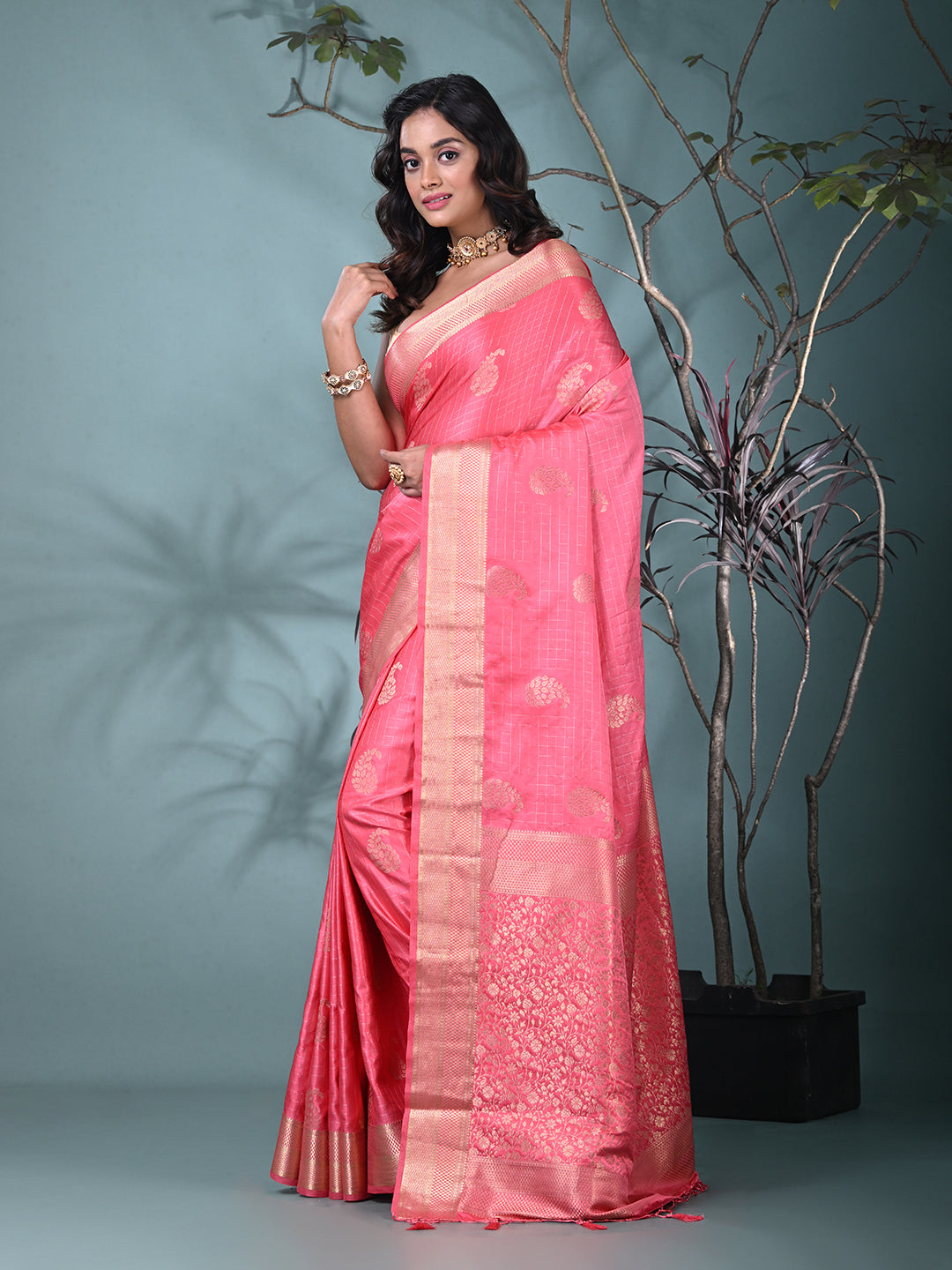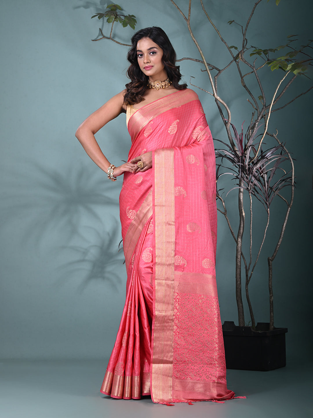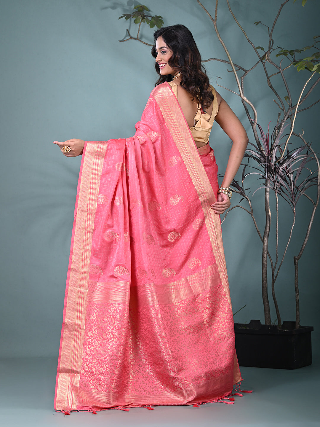 Elegant Pink Silk Saree with Intricate Brocade Work