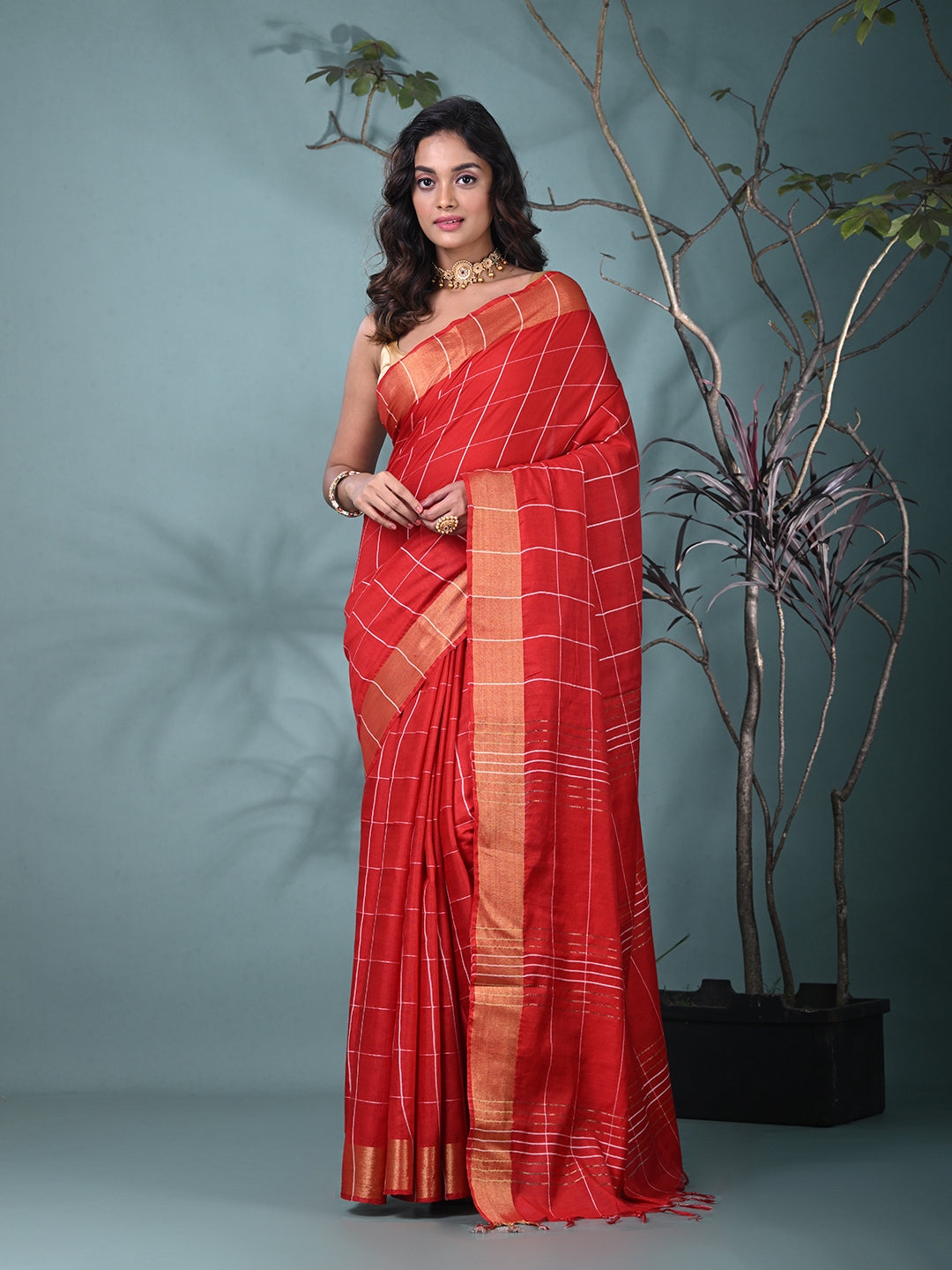 Add a touch of traditional elegance to your wardrobe with this stunning red art silk saree. Featuring a subtle checkered pattern with a beautiful golden border, this saree is perfect for festive occasions or special events. Crafted from high-quality art silk, it offers a smooth, luxurious feel while ensuring comfort throughout the day. Pair it with statement jewelry for a truly regal look.