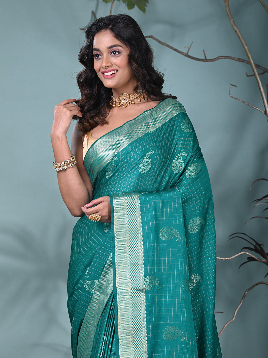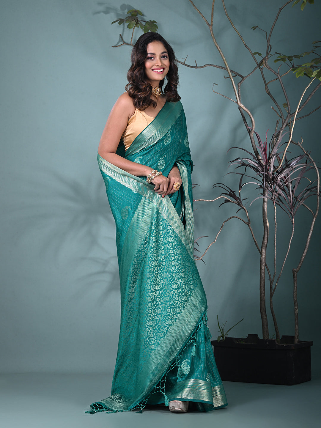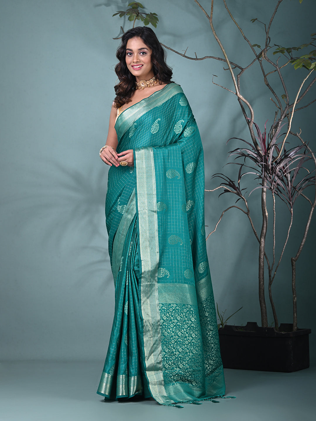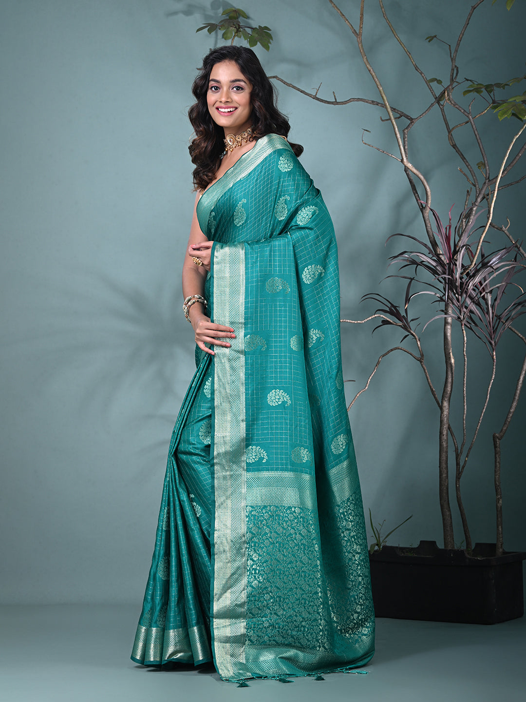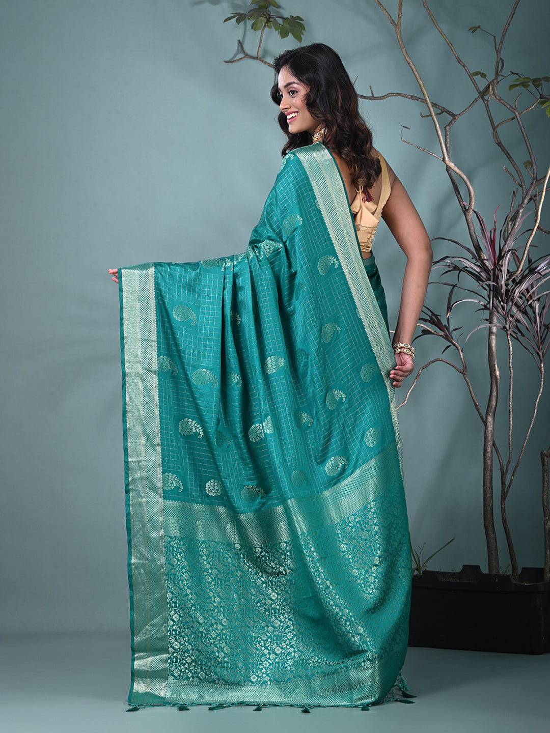 Elegant Teal Silk Saree with Intricate Brocade Work