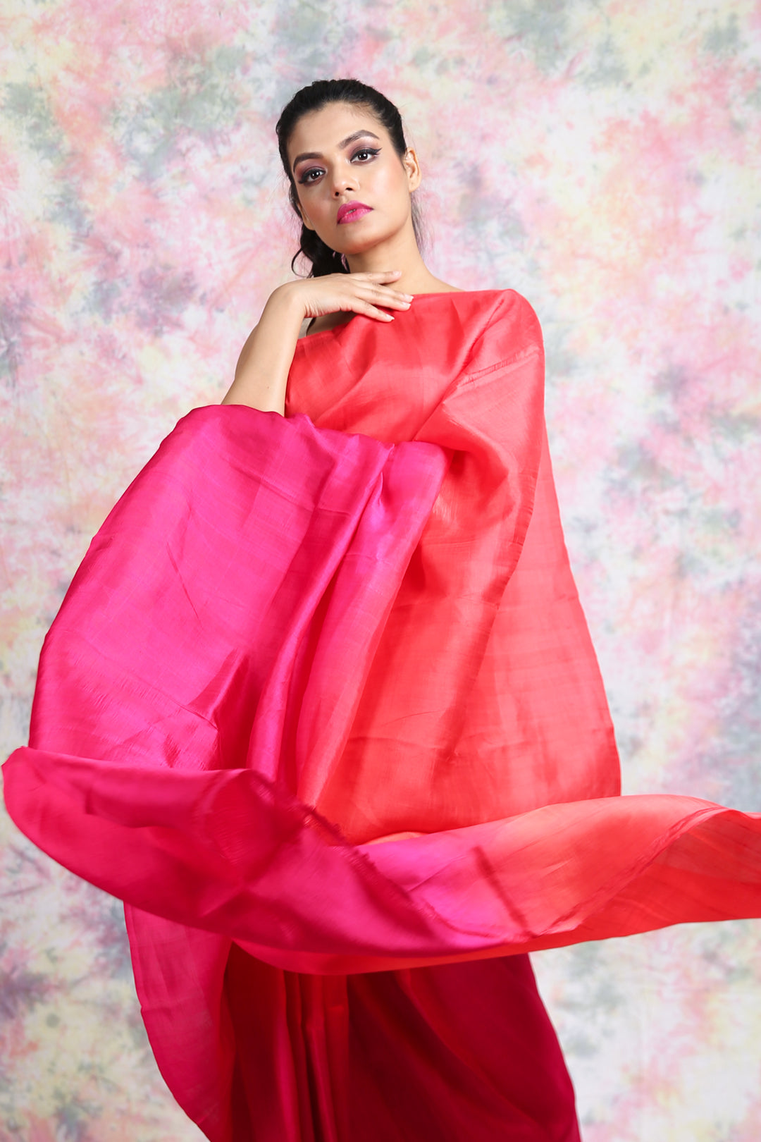 Graceful Dual-Tone Pure Silk Saree in Red & Pink
