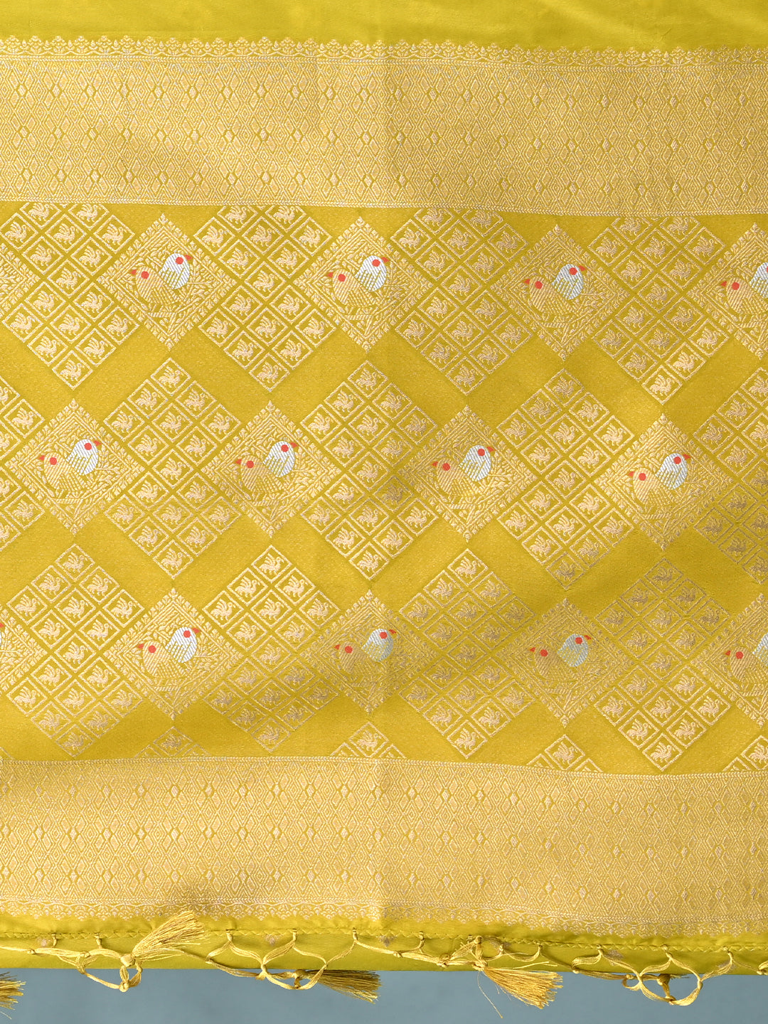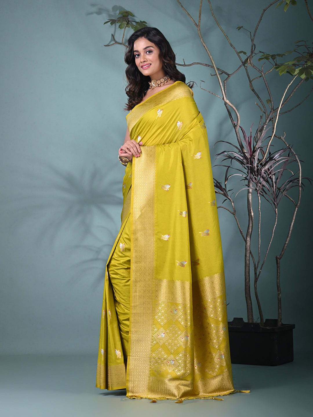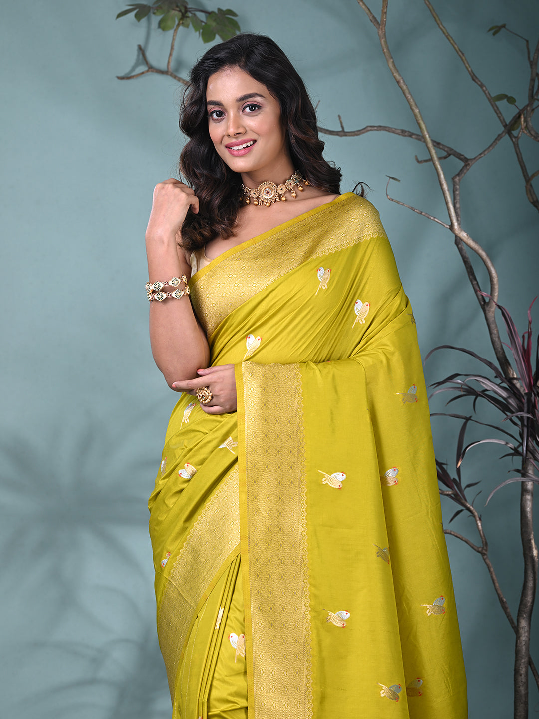 Graceful Lime Green Silk Blend Saree with Intricate Zari Work