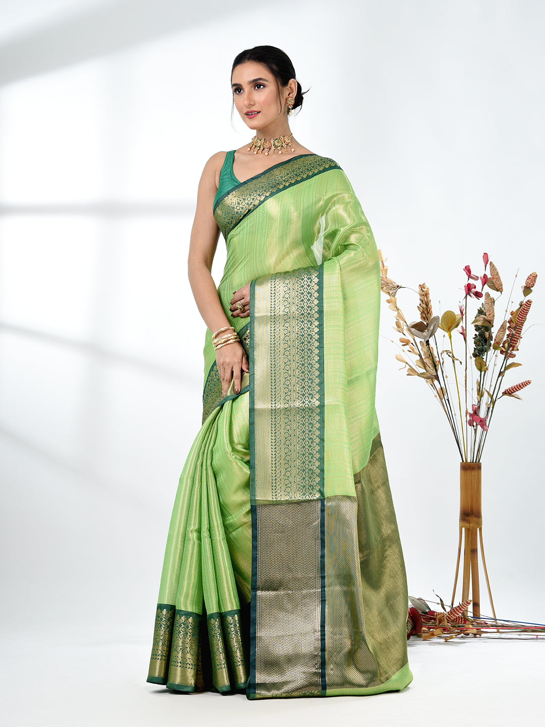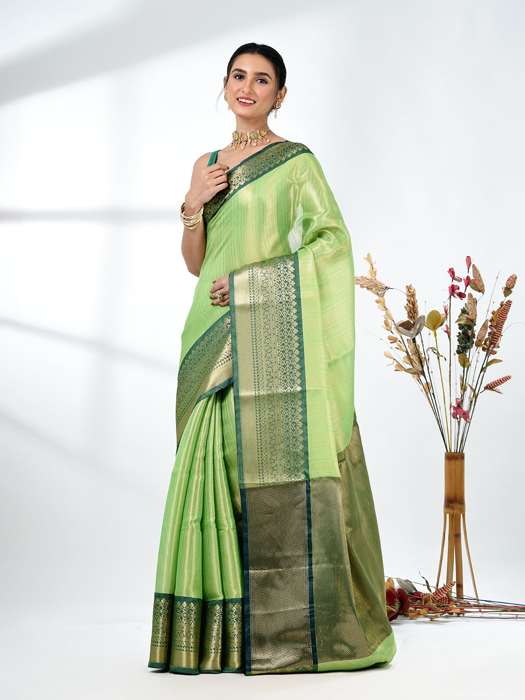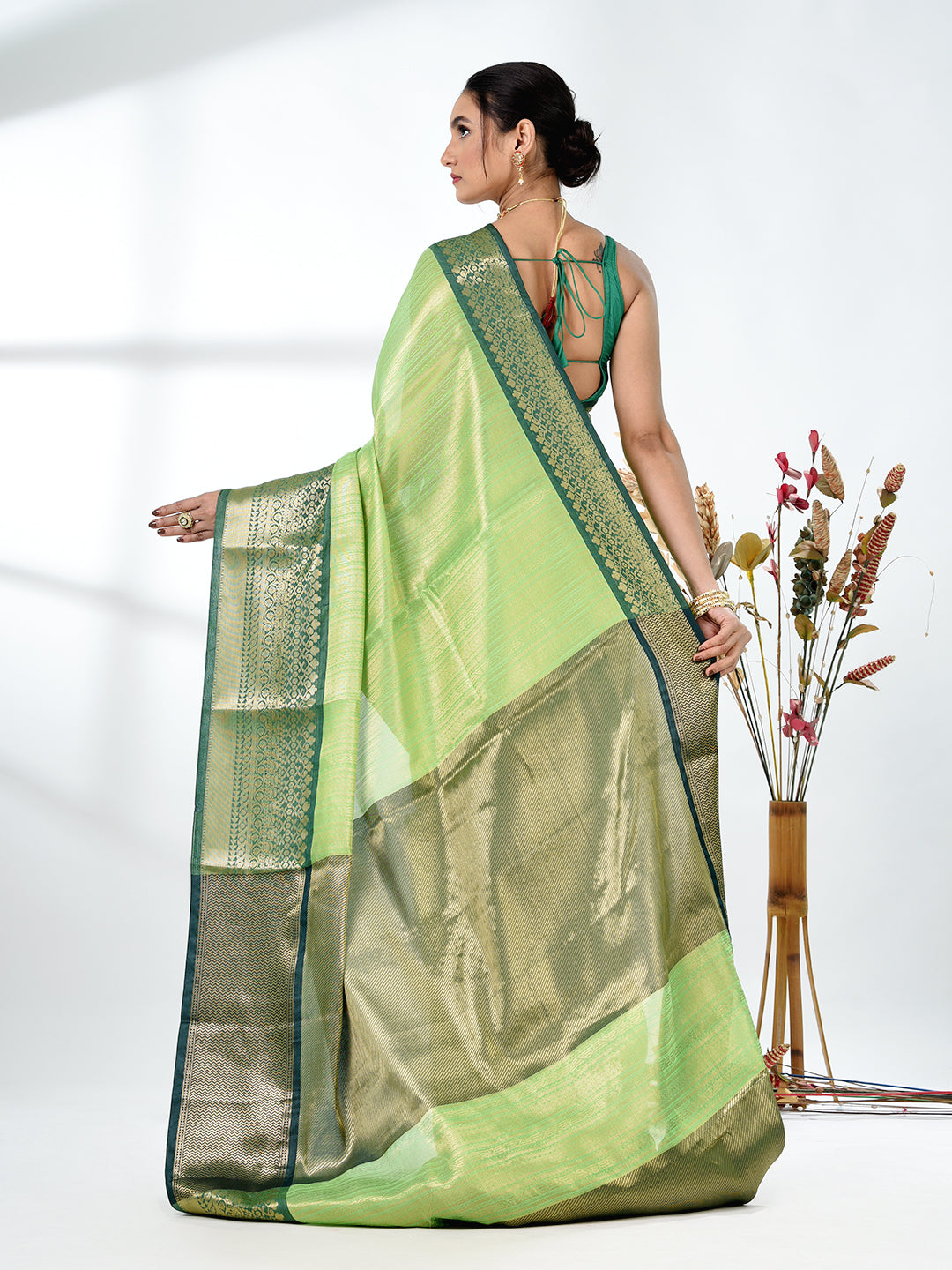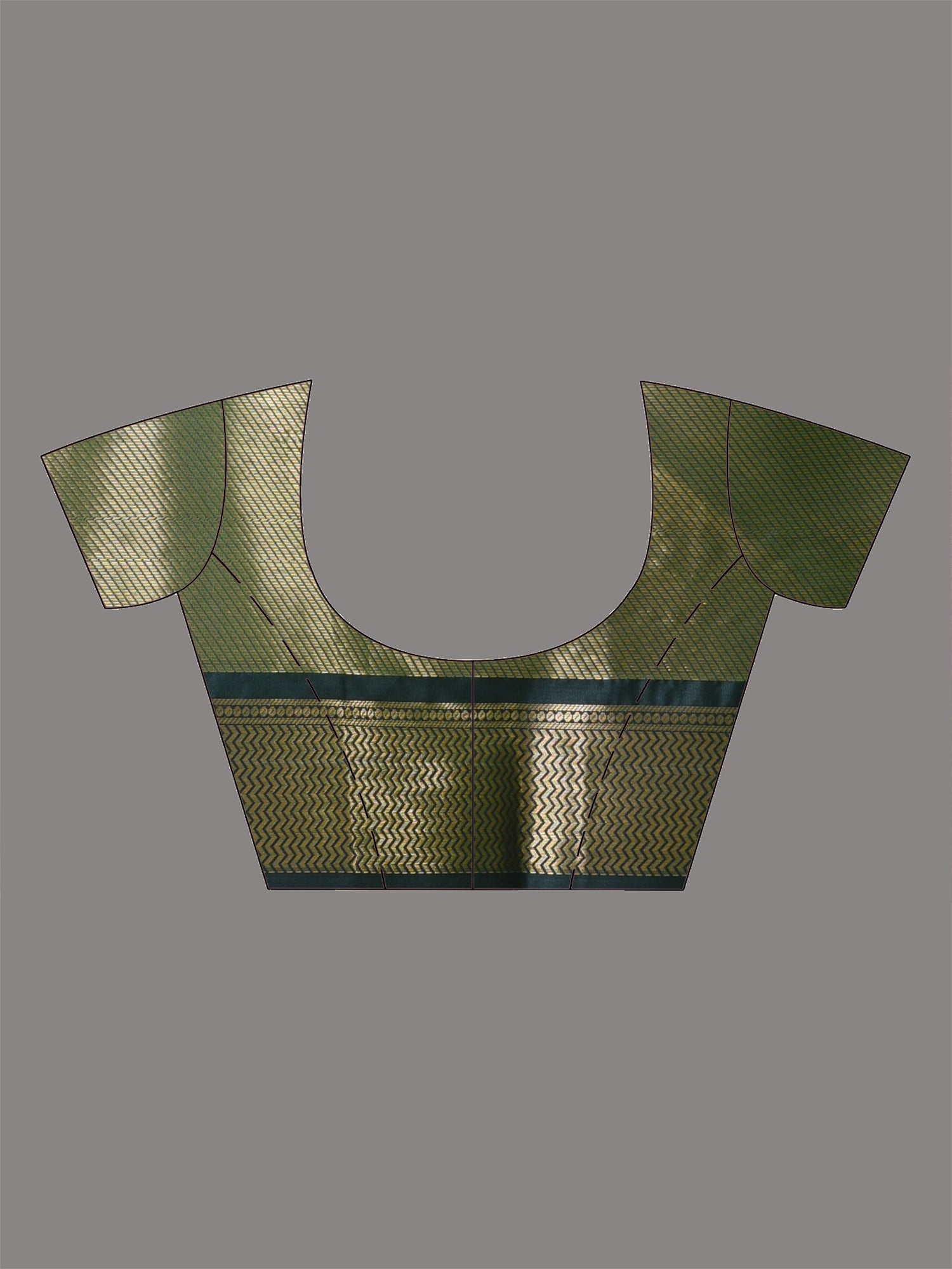 This elegant green brocade saree is a perfect blend of traditional craftsmanship and modern elegance. Featuring intricate gold patterns, it is beautifully complemented by a rich brocade fabric that exudes sophistication. The saree is ideal for weddings, festivals, or any special occasion. Paired with a matching blouse, this saree makes for a timeless addition to any wardrobe.