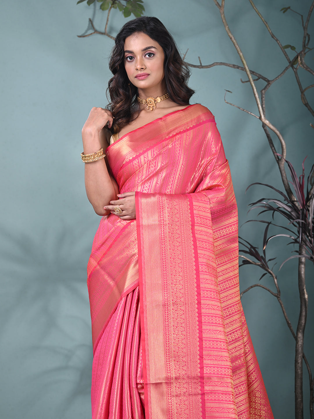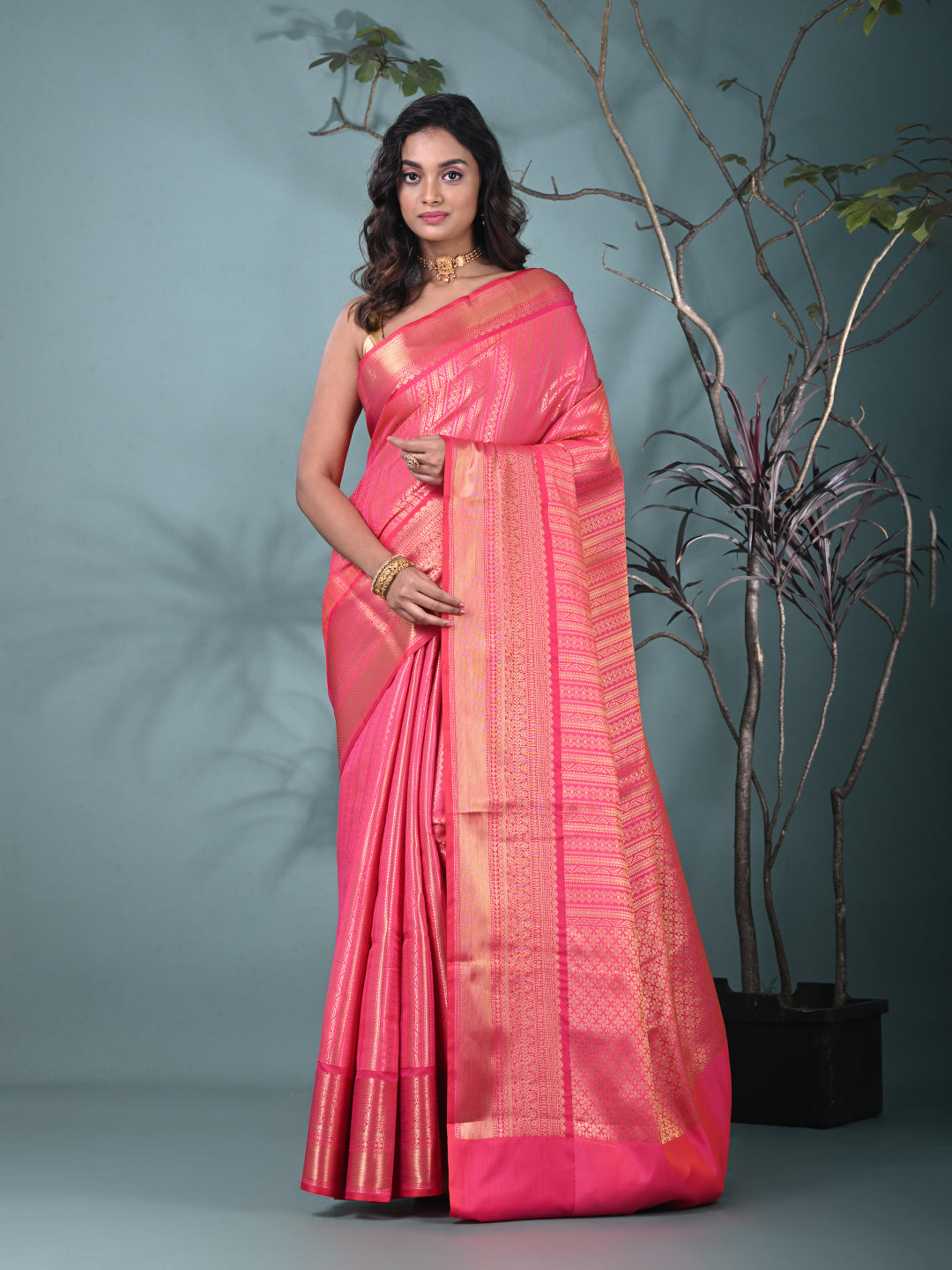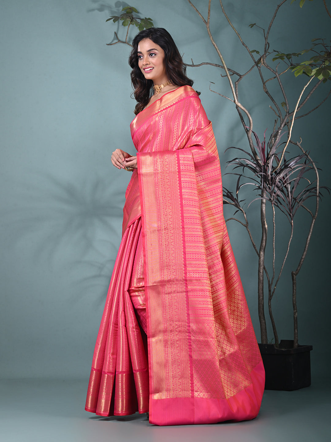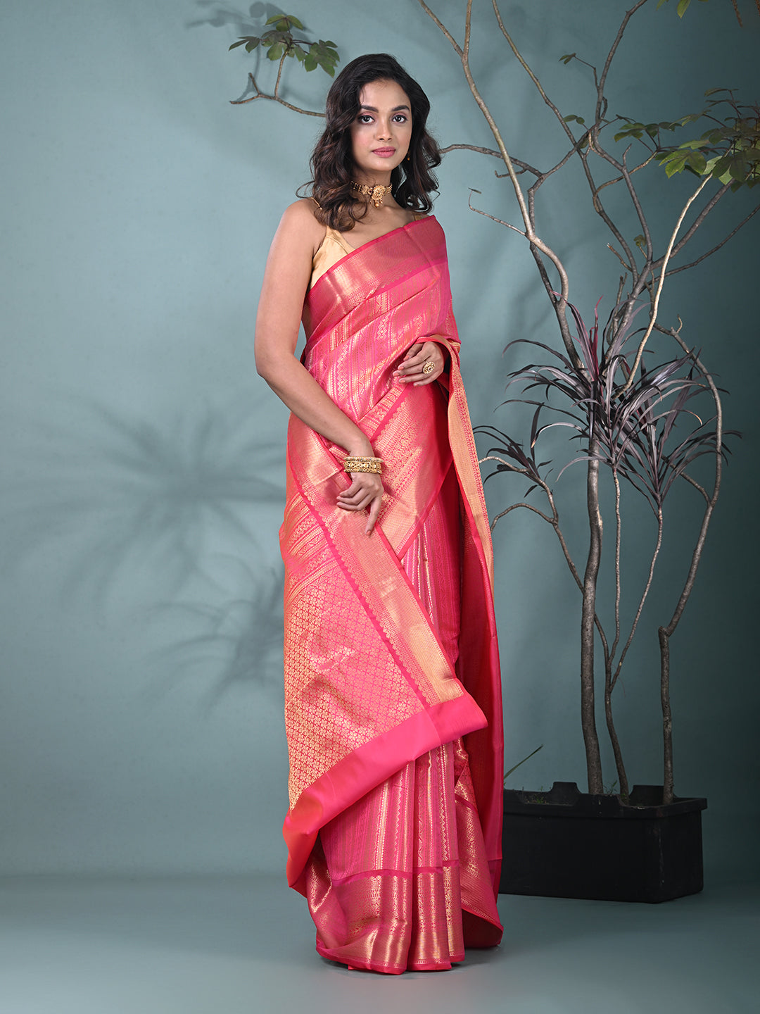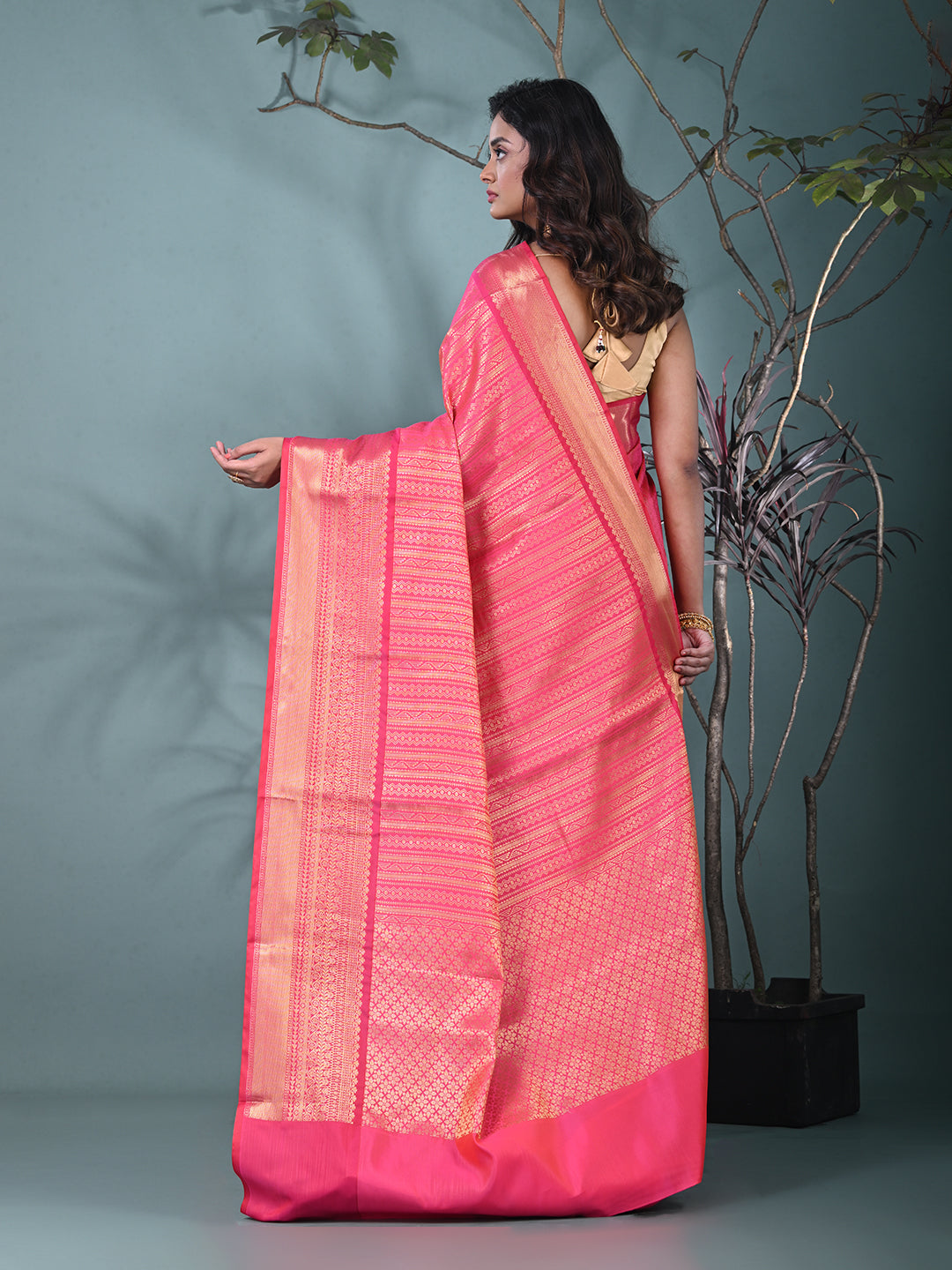 Hot Pink Brocade Saree with Intricate Borders