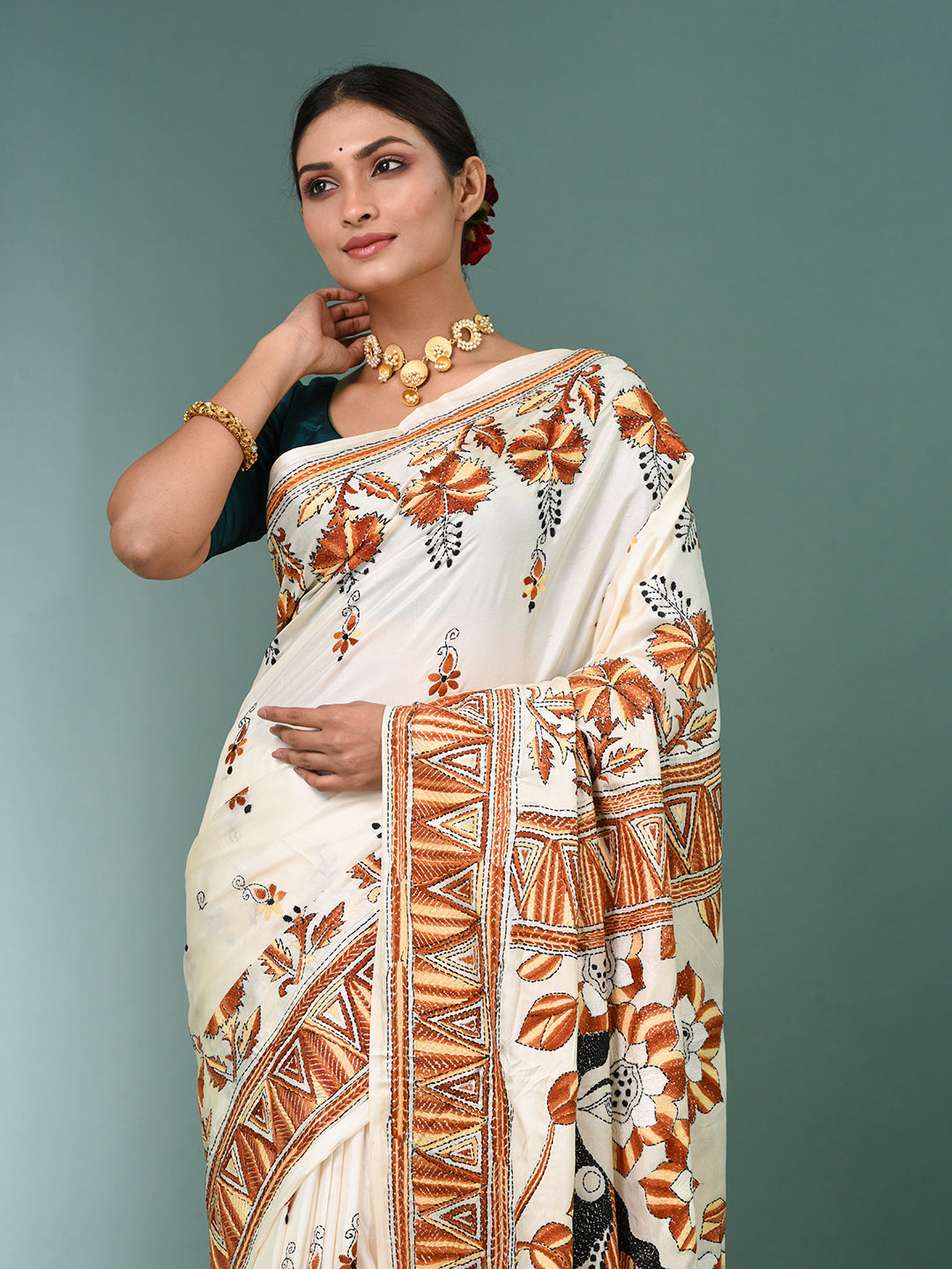 Embrace timeless craftsmanship with our Kantha Stitch sarees. Handcrafted with intricate, traditional embroidery, each piece showcases delicate motifs and vibrant patterns, bringing a touch of heritage to your wardrobe. Made from soft, comfortable fabric, these sarees are perfect for casual gatherings, festive occasions, and even daily wear. The unique Kantha stitch adds texture and depth, making every saree a work of art. Available in a variety of colors and designs, they offer a blend of tradition and modern elegance. Perfect for those who appreciate artisan craftsmanship and cultural artistry.