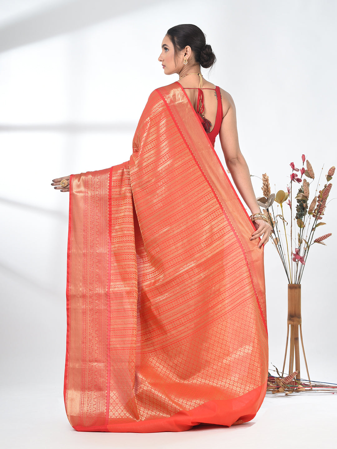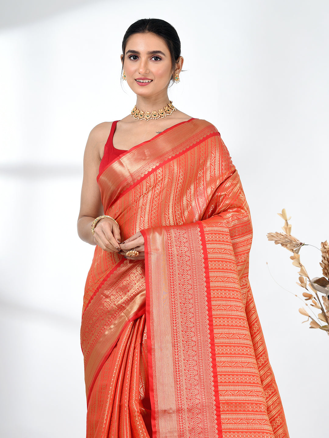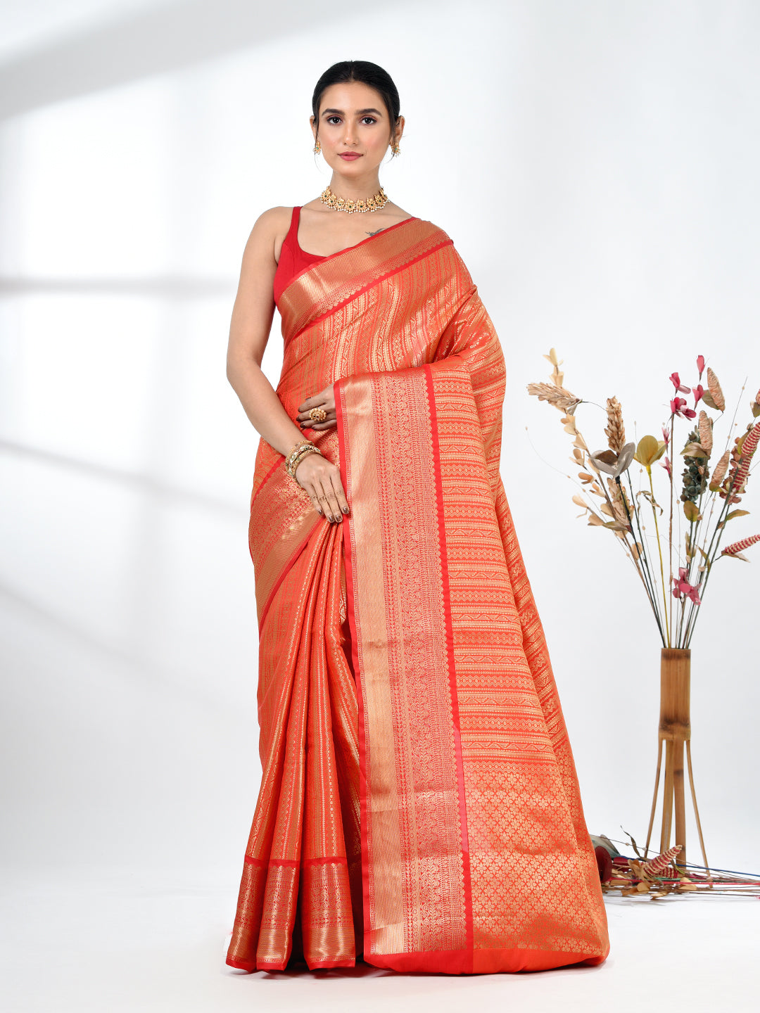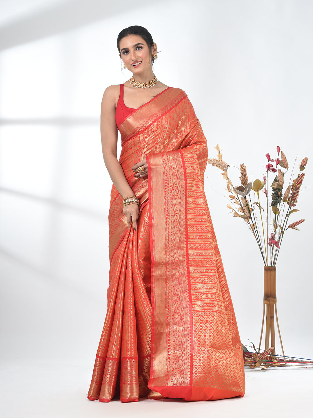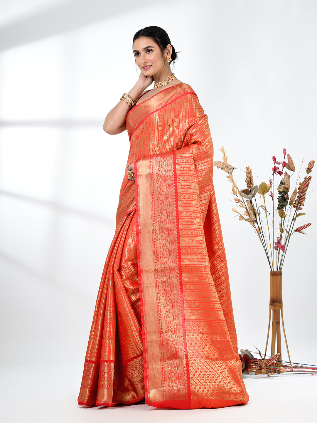 Orange Brocade Saree with Intricate Borders