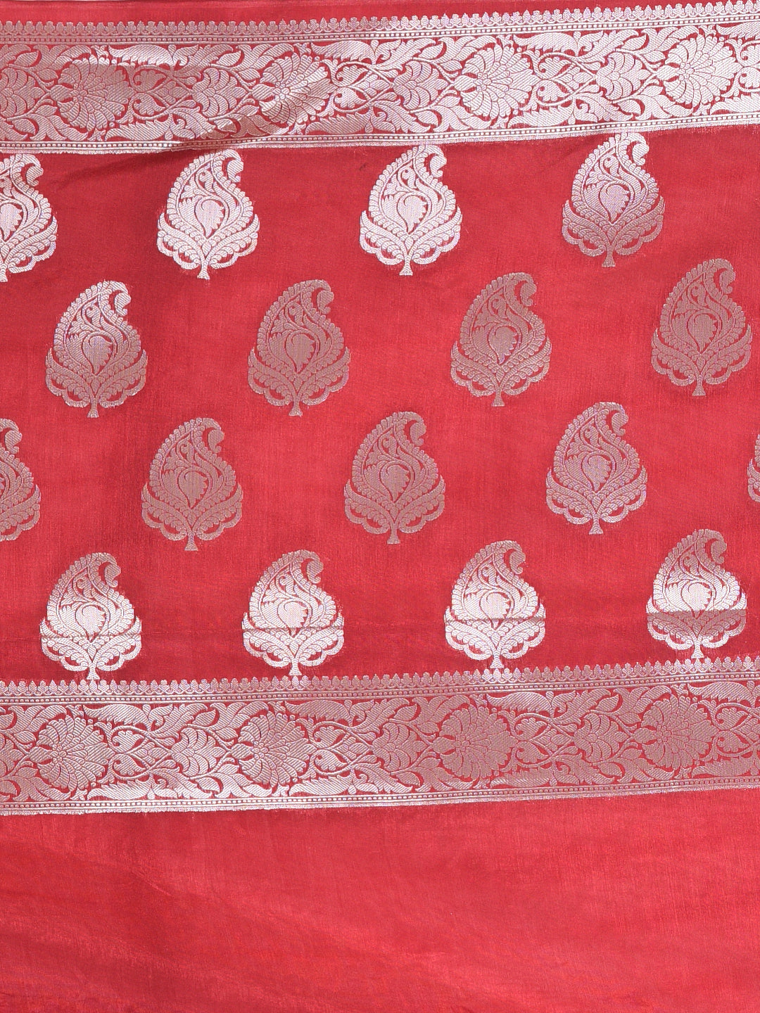 Red & White Silk Tie & Dye Saree with Intricate Border