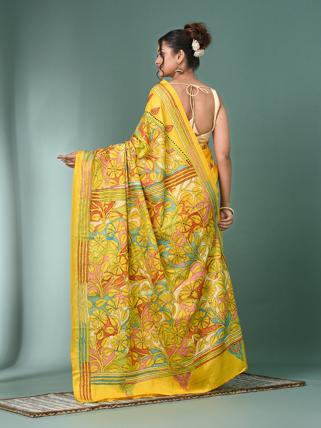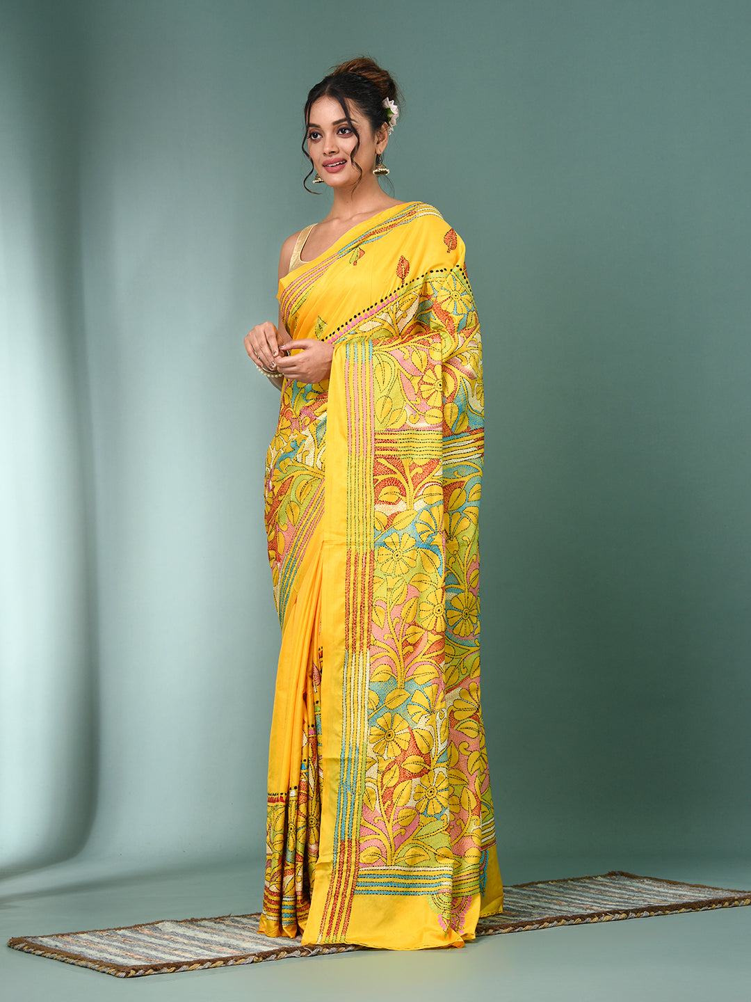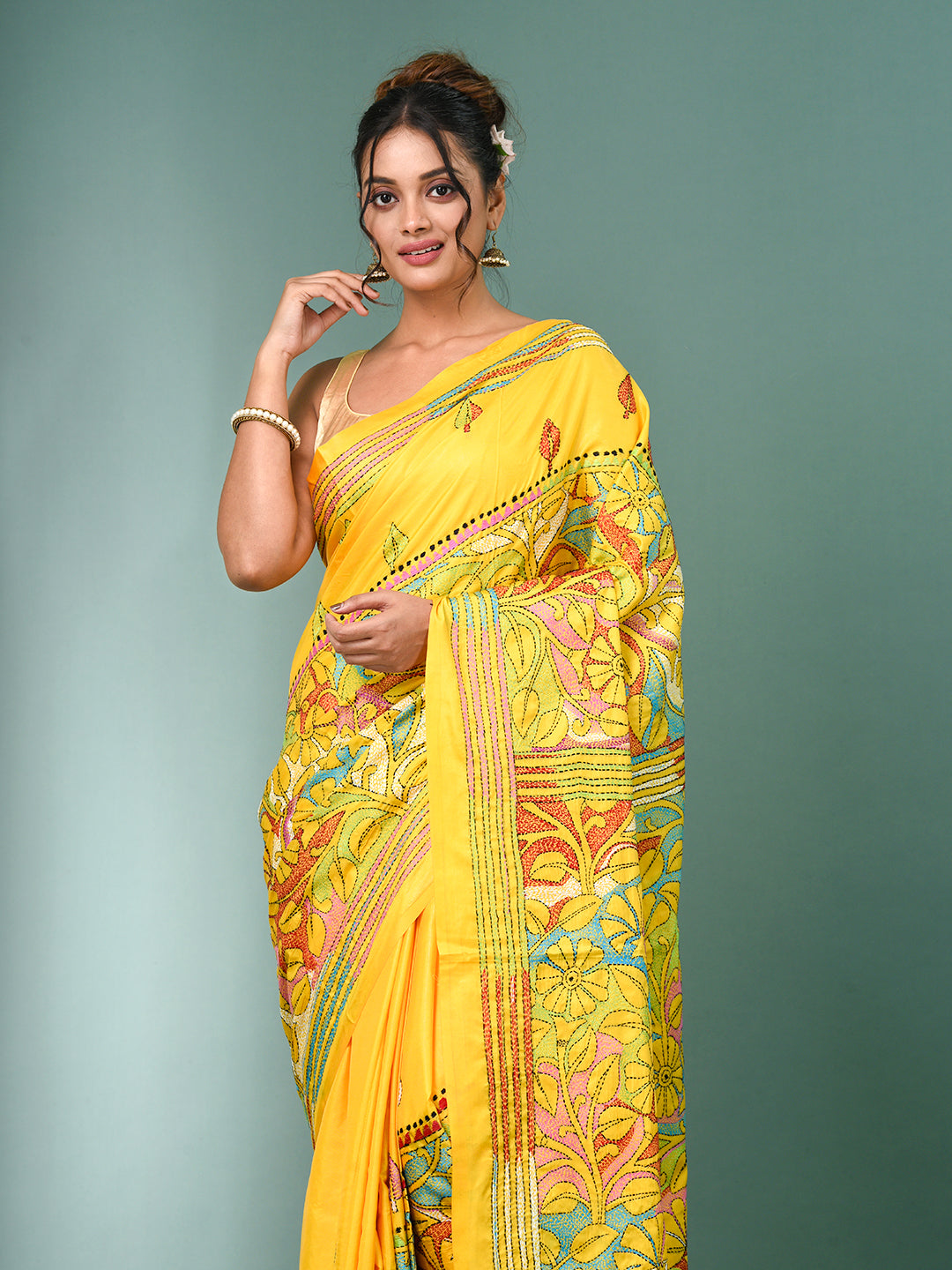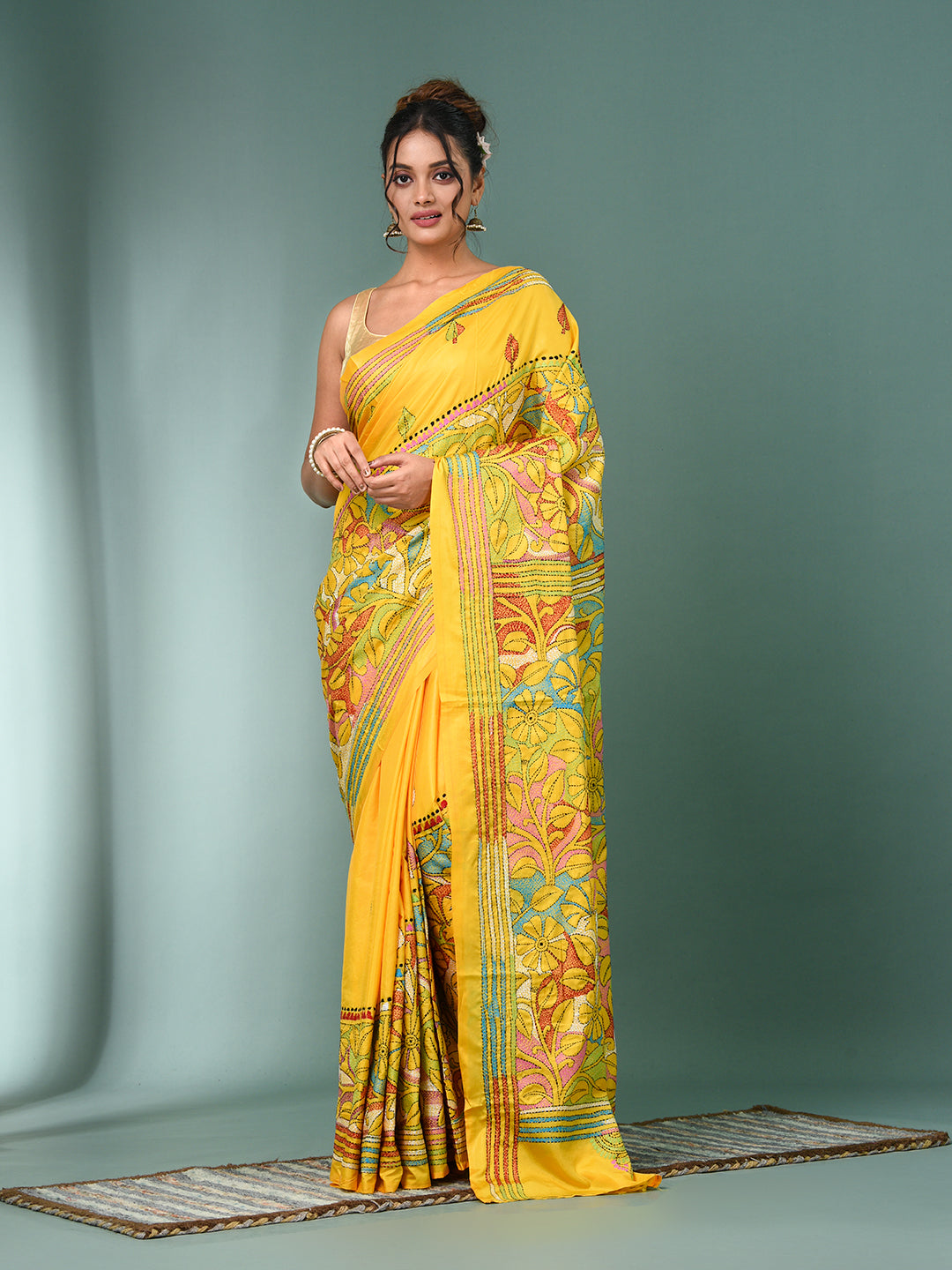 Embrace timeless craftsmanship with our Kantha Stitch sarees. Handcrafted with intricate, traditional embroidery, each piece showcases delicate motifs and vibrant patterns, bringing a touch of heritage to your wardrobe. Made from soft, comfortable fabric, these sarees are perfect for casual gatherings, festive occasions, and even daily wear. The unique Kantha stitch adds texture and depth, making every saree a work of art. Available in a variety of colors and designs, they offer a blend of tradition and modern elegance. Perfect for those who appreciate artisan craftsmanship and cultural artistry.
