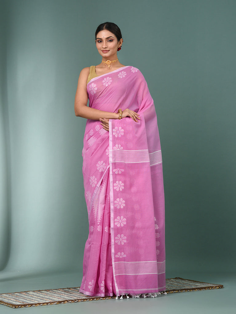 Pink Texture Pattern Cotton Handspun Soft Saree