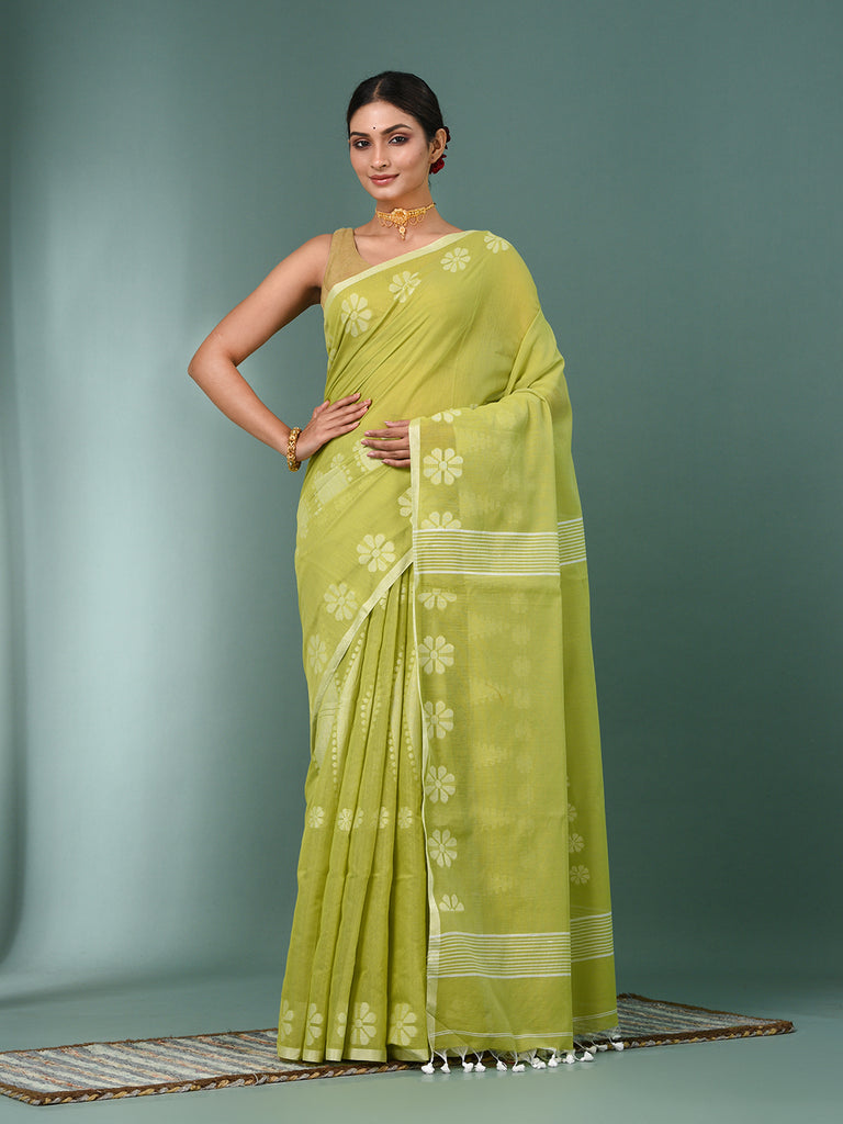 Pistachio Green Woven Cotton Handspun Soft Saree