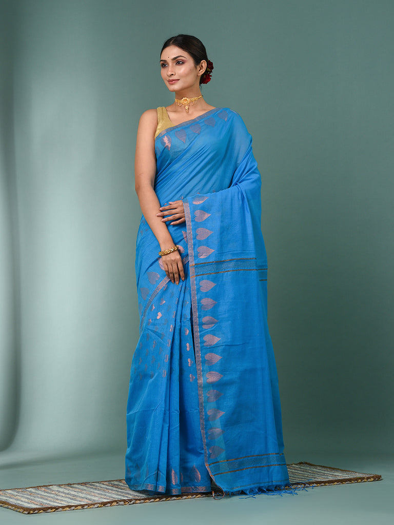 Sapphire Blue Heart Motifs Cotton Handspun Soft Saree