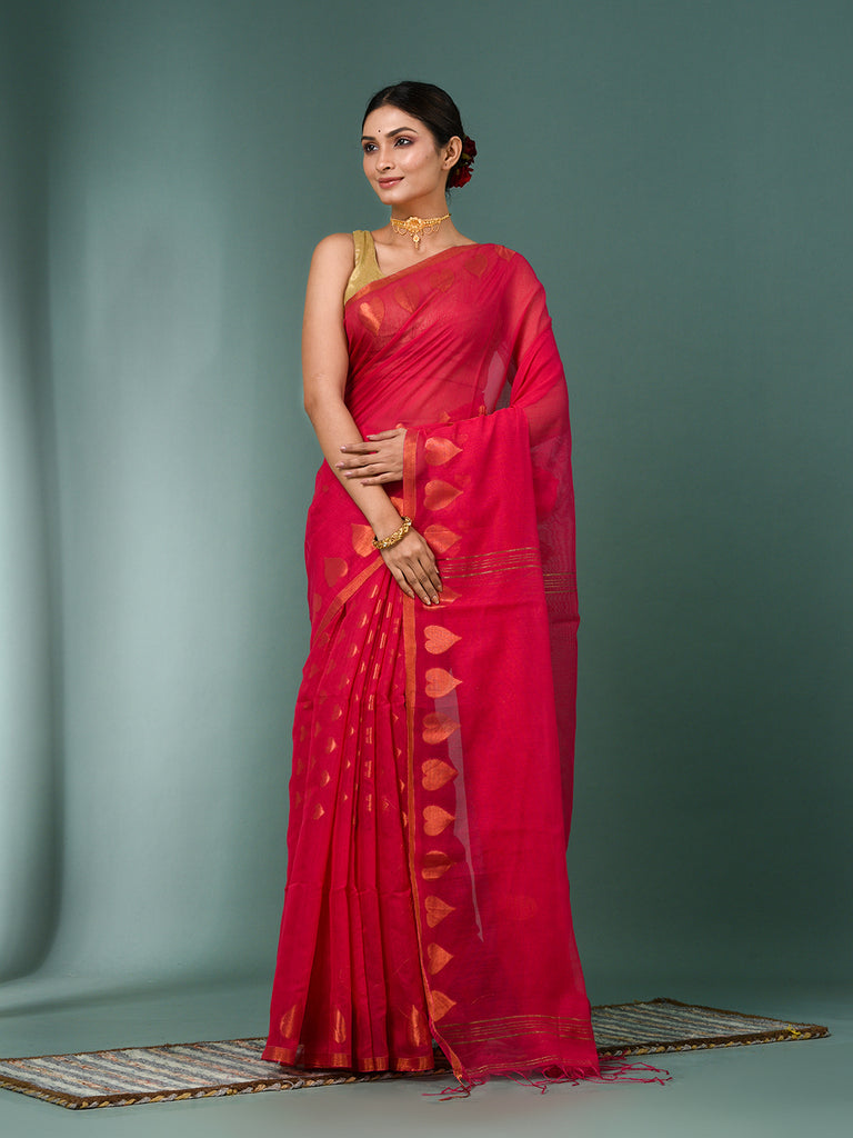 Coral Pink Heart Motifs Cotton Handspun Soft Saree