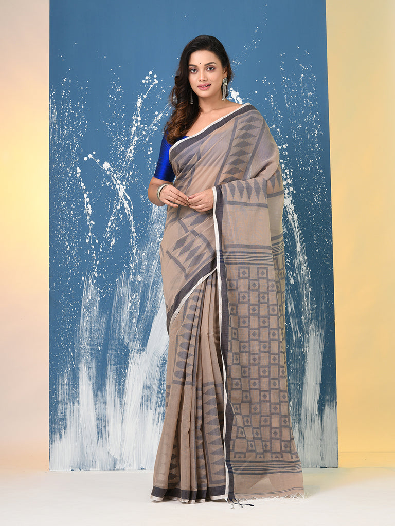 Ecru Texture Pattern Cotton Handspun Soft Saree