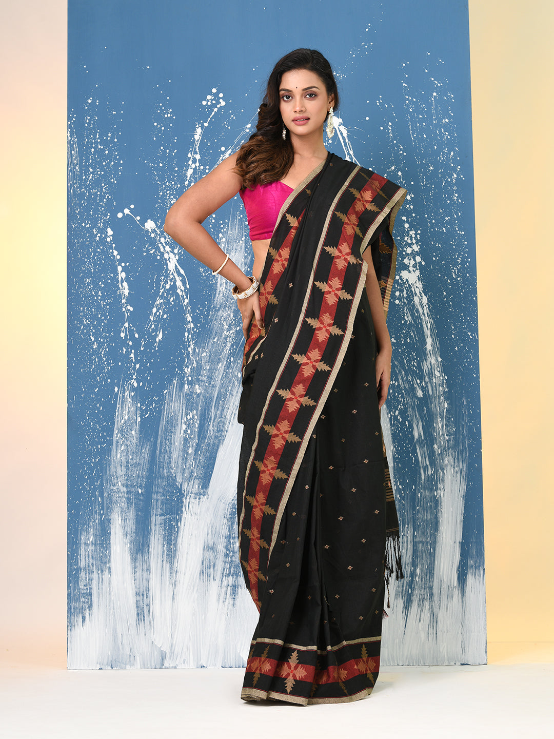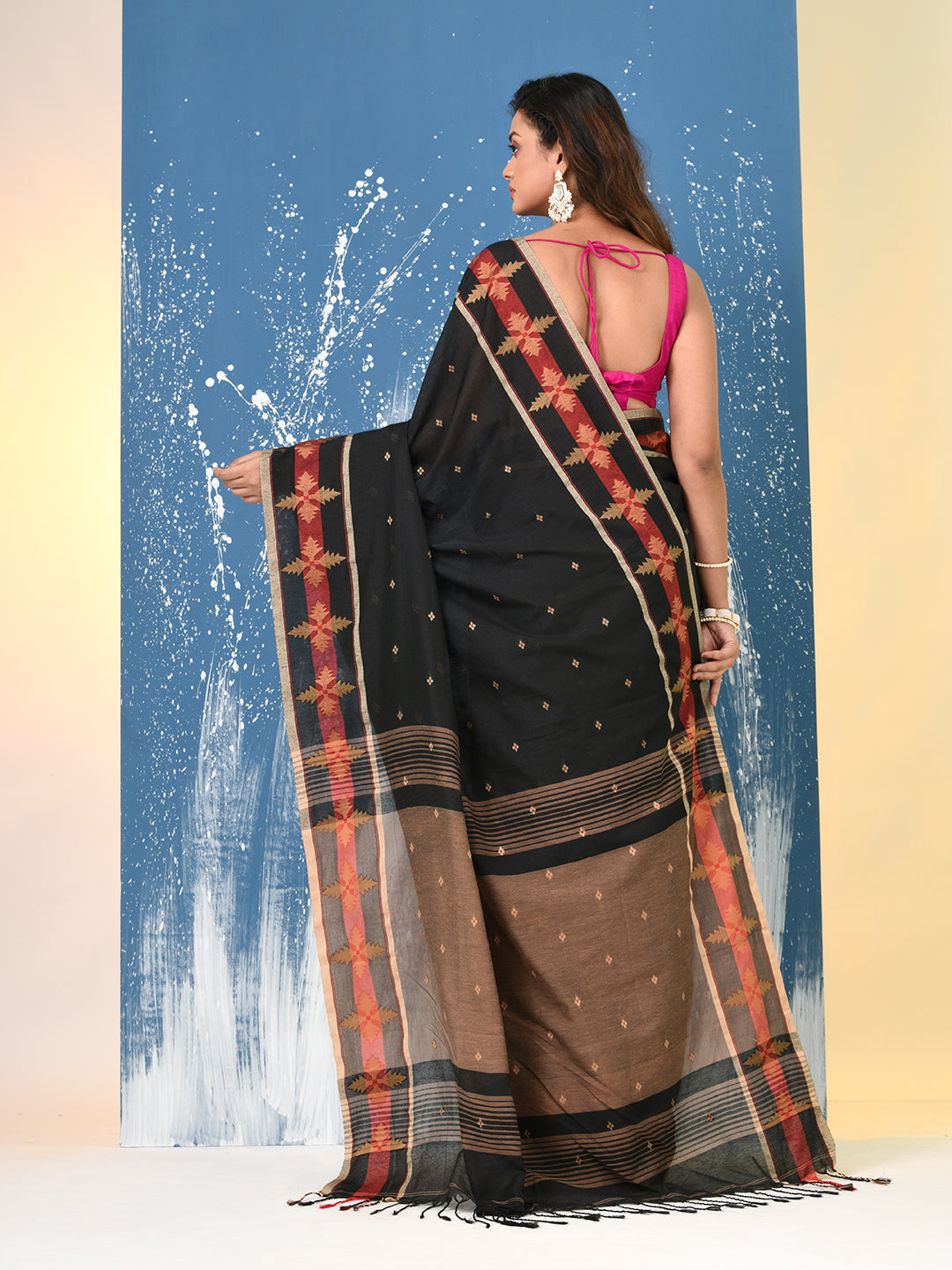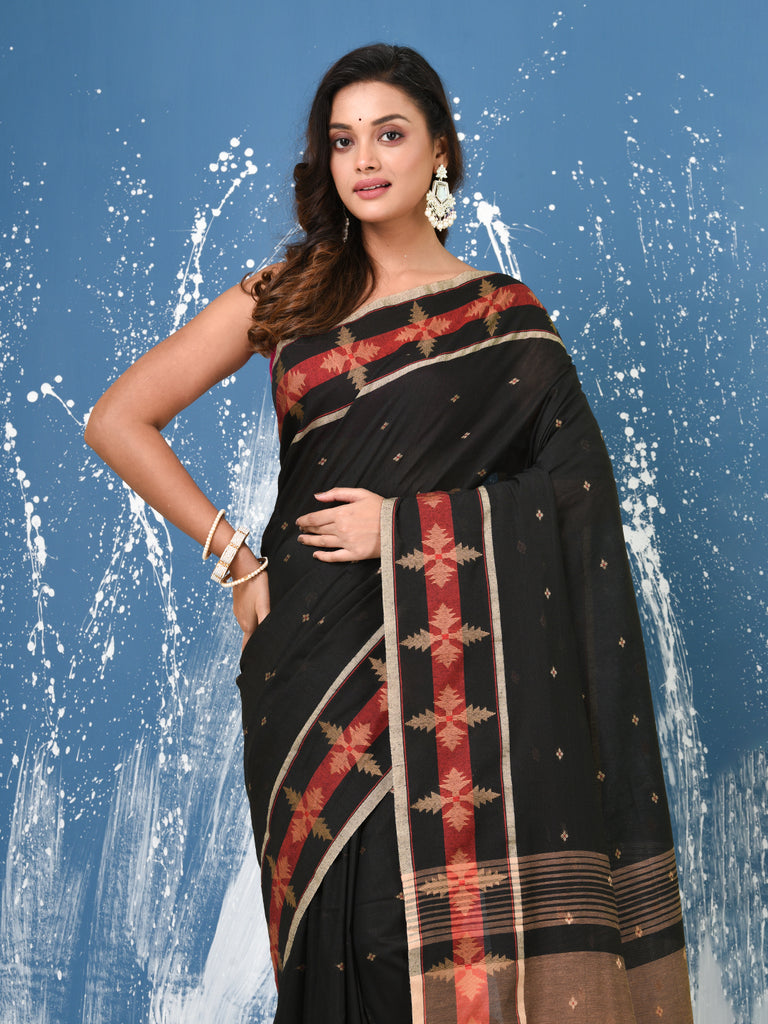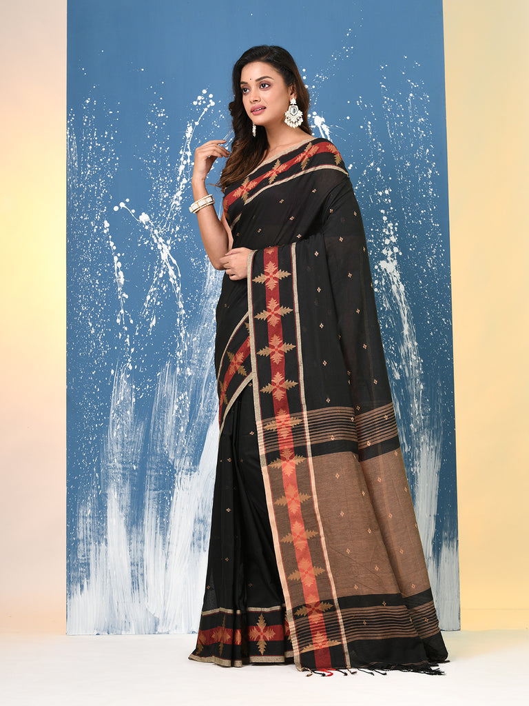 Black Ethnic Motifs Cotton Handspun Soft Saree
