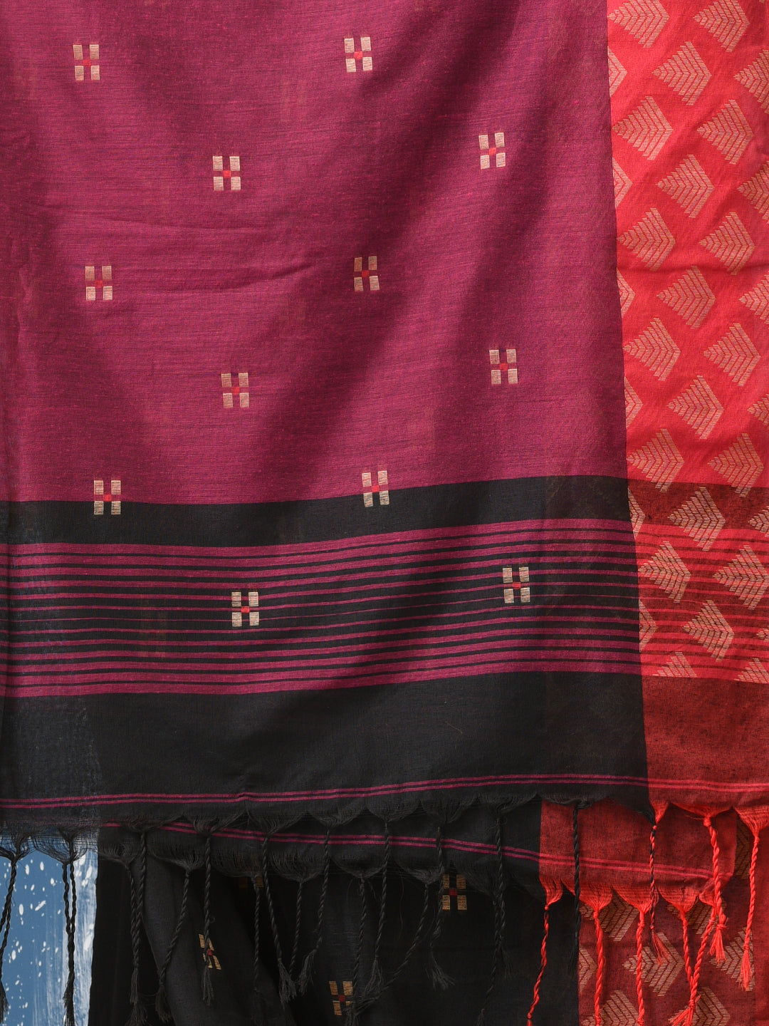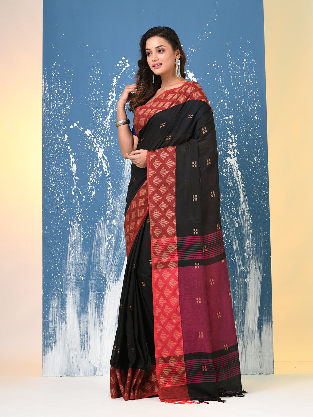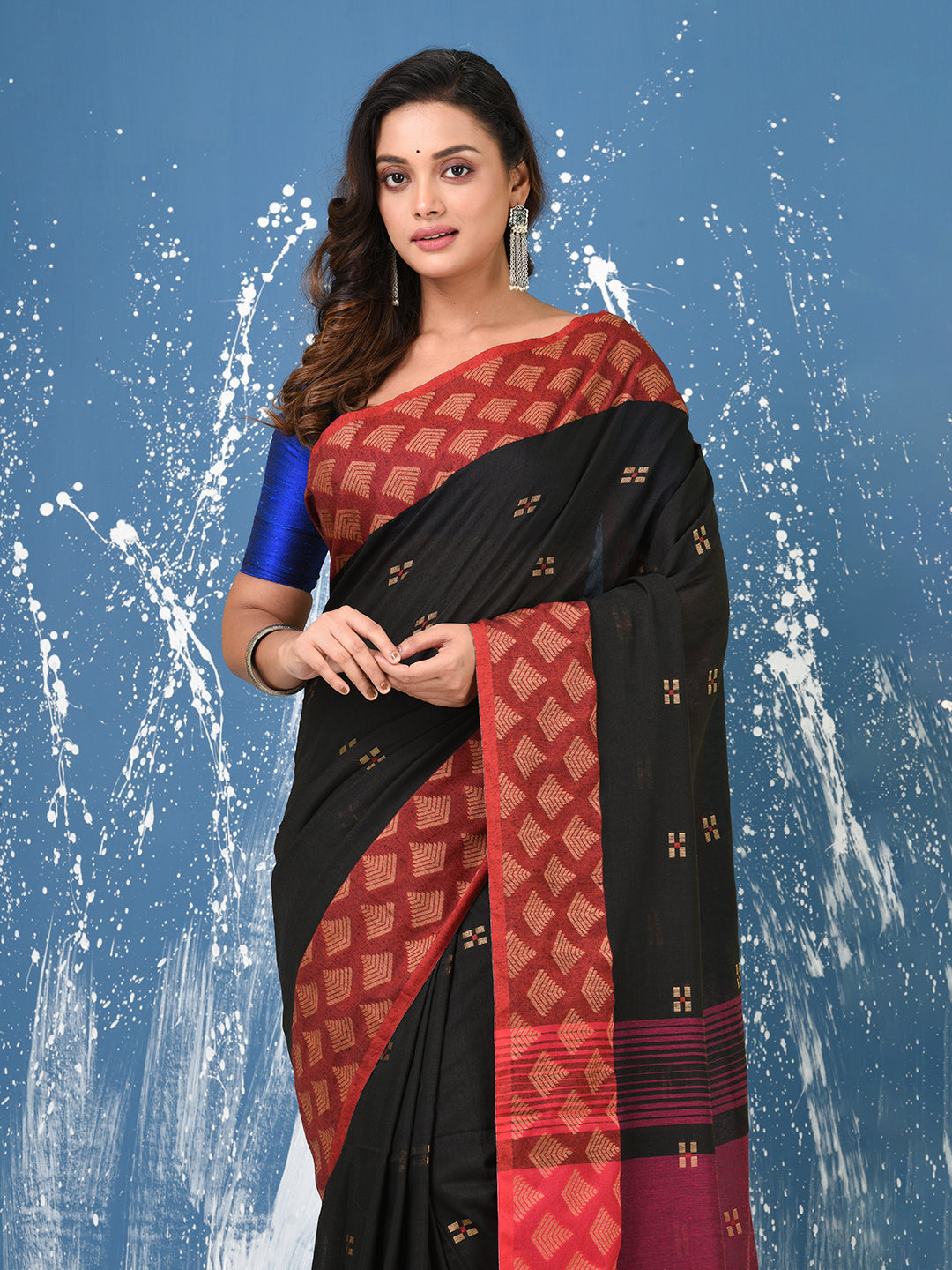 Black Geometric Motifs Cotton Handspun Soft Saree