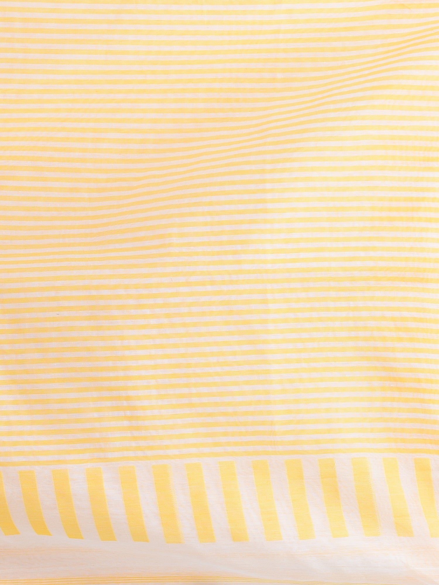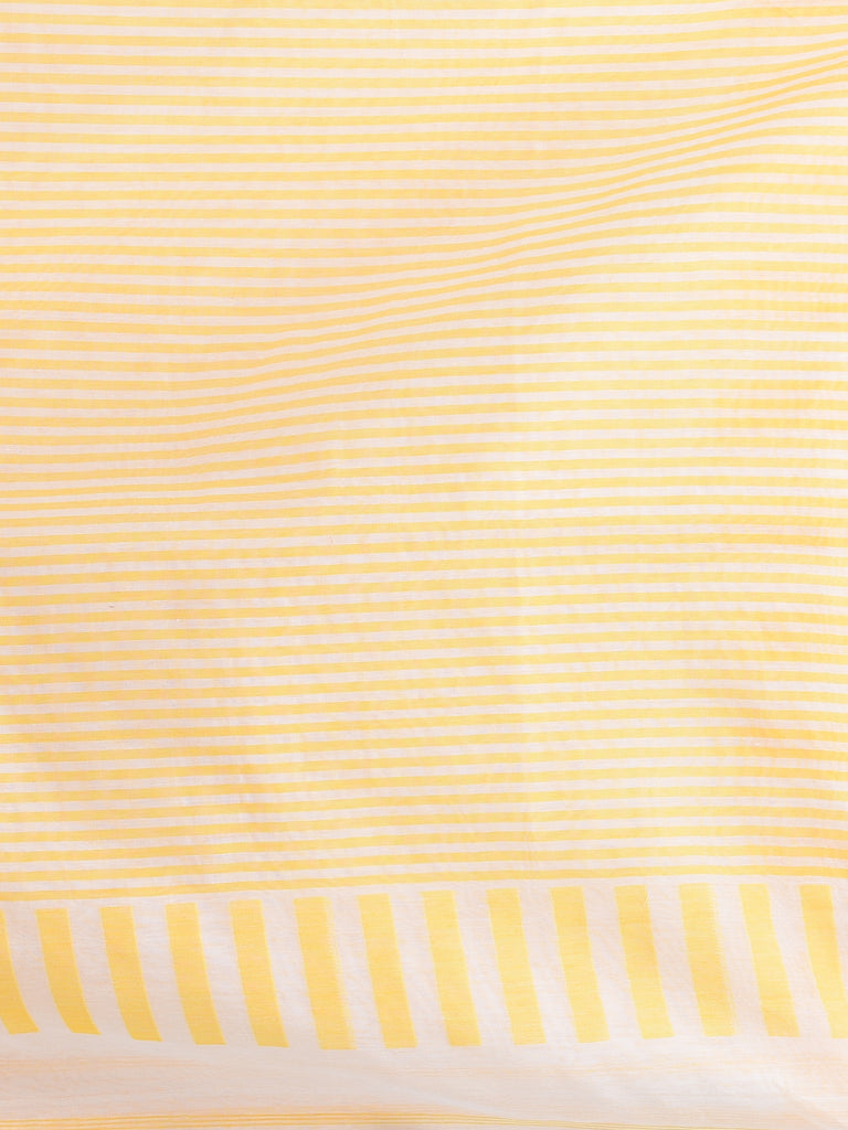 This exquisite handspun cotton saree features a timeless white and yellow striped design, offering a fresh and elegant look. The lightweight fabric ensures comfort while maintaining a stylish appearance for any occasion. The saree is adorned with a playful pom-pom pallu that adds a touch of charm and vibrancy. Ideal for both casual and festive wear, this saree combines traditional craftsmanship with a modern twist, making it a must-have addition to your wardrobe. Perfect for any season, this cotton saree brings sophistication with ease.