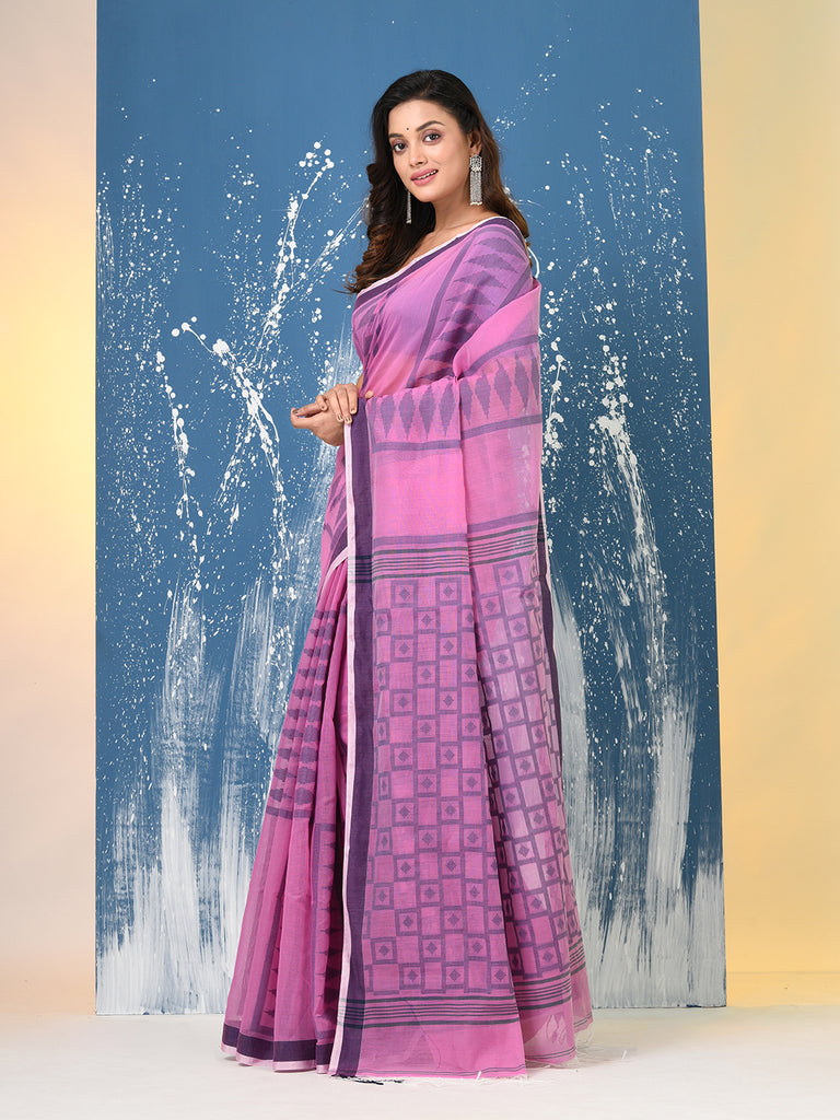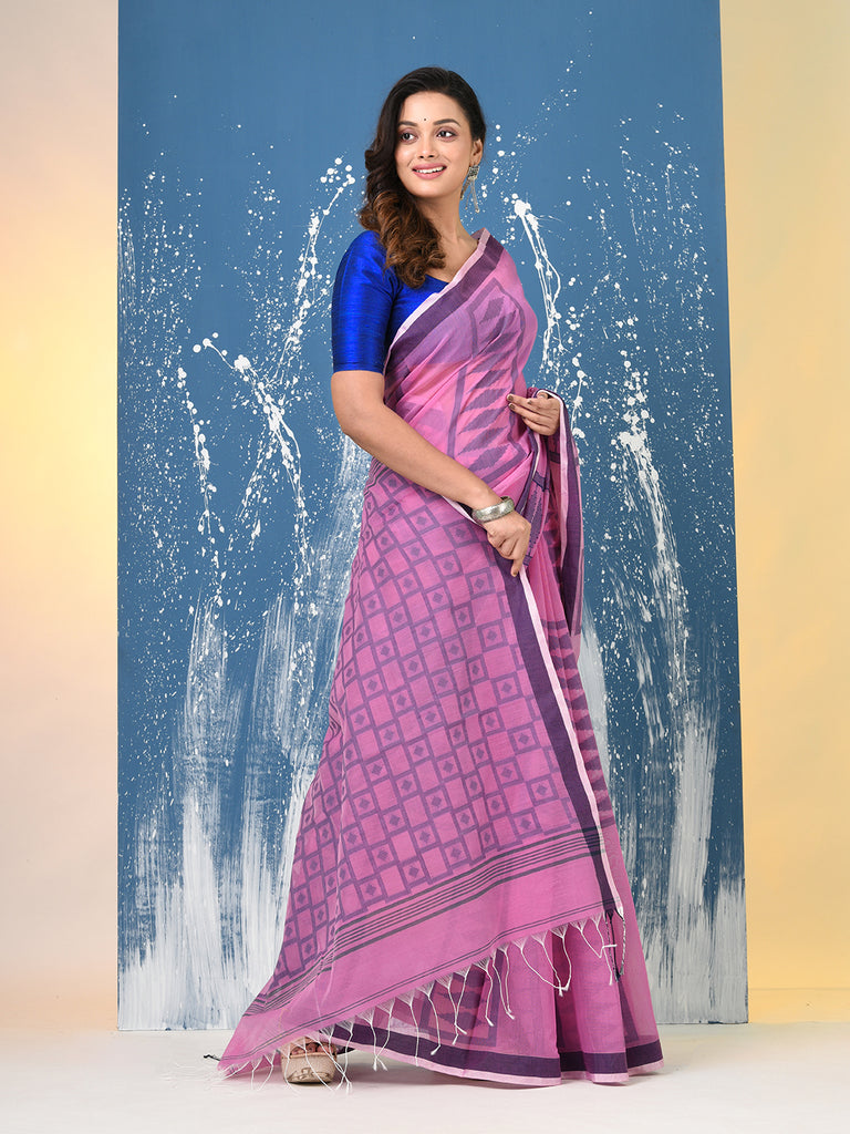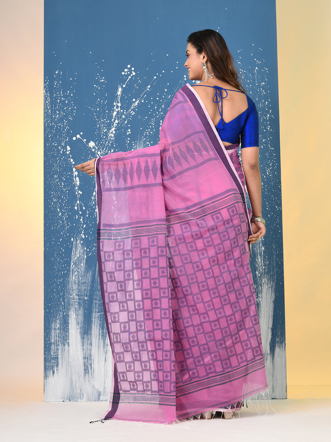 Pink Texture Pattern Cotton Handspun Soft Saree