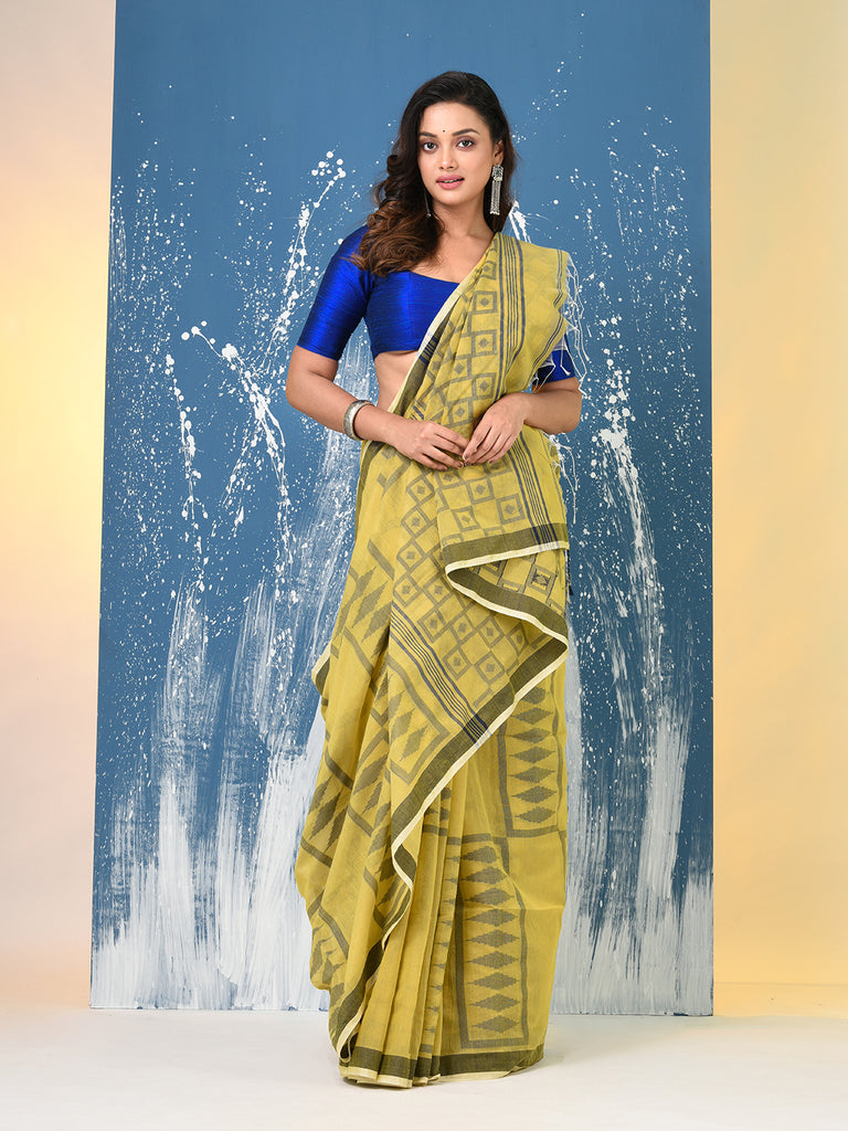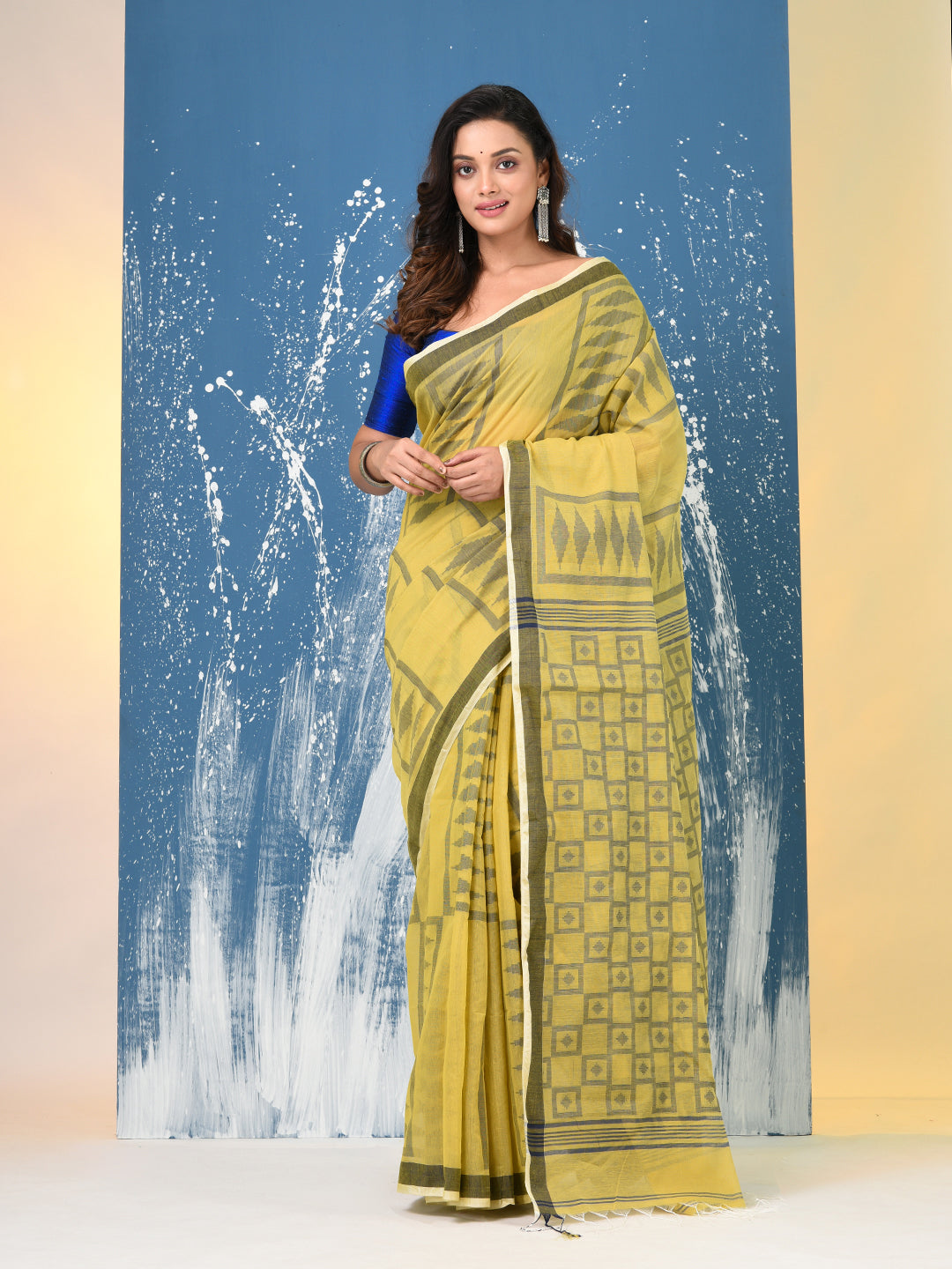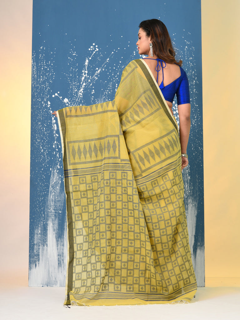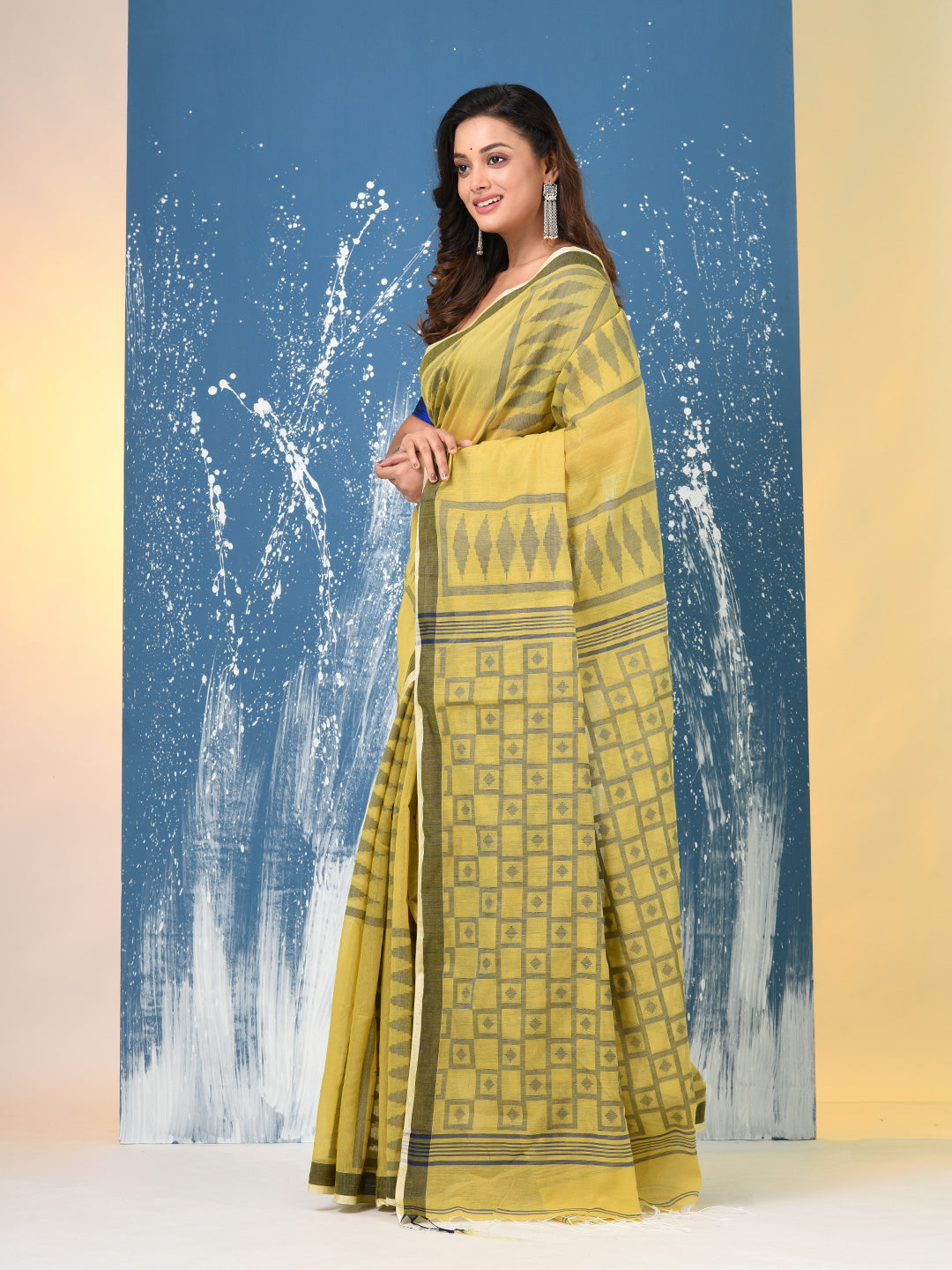 Yellow Texture Pattern Cotton Handspun Soft Saree